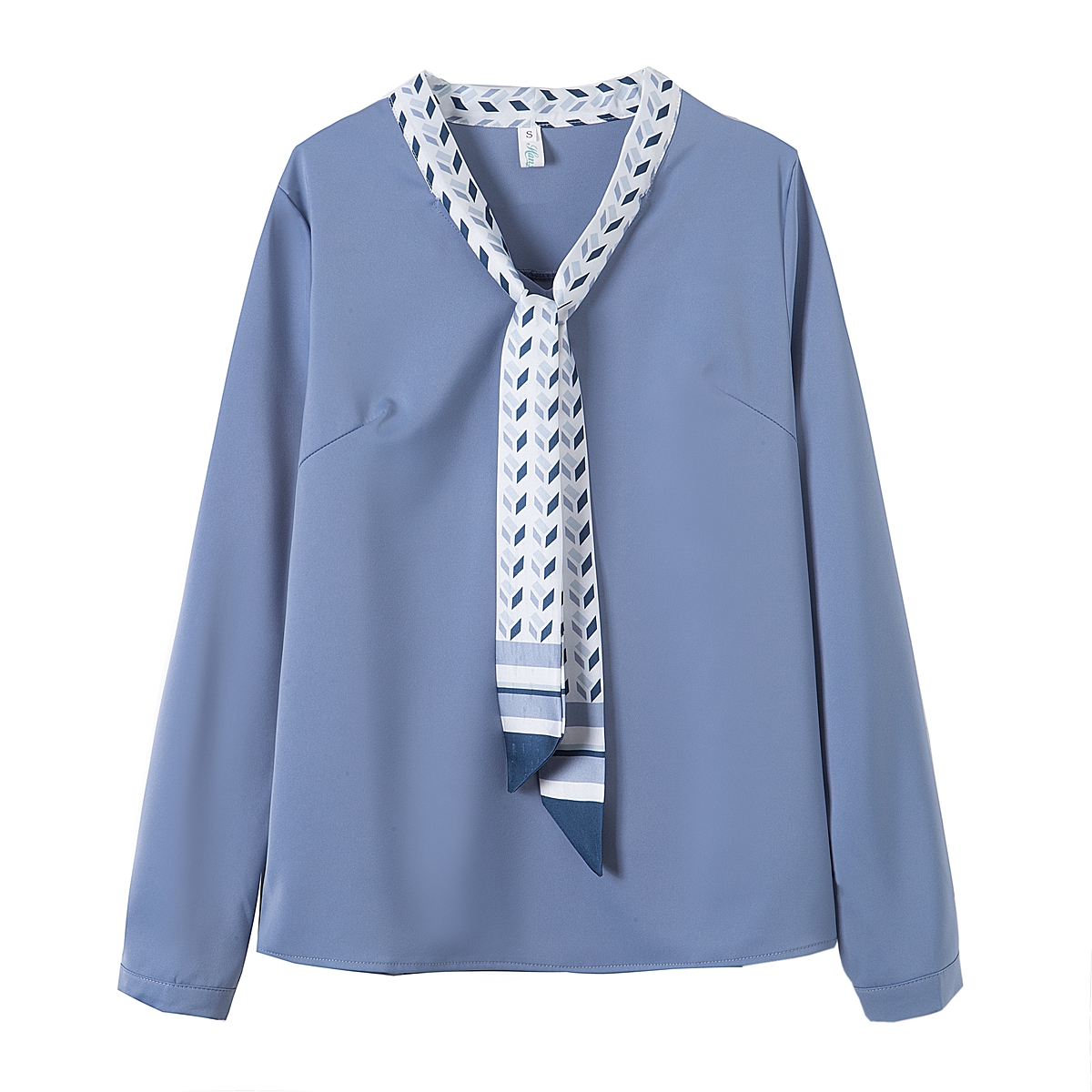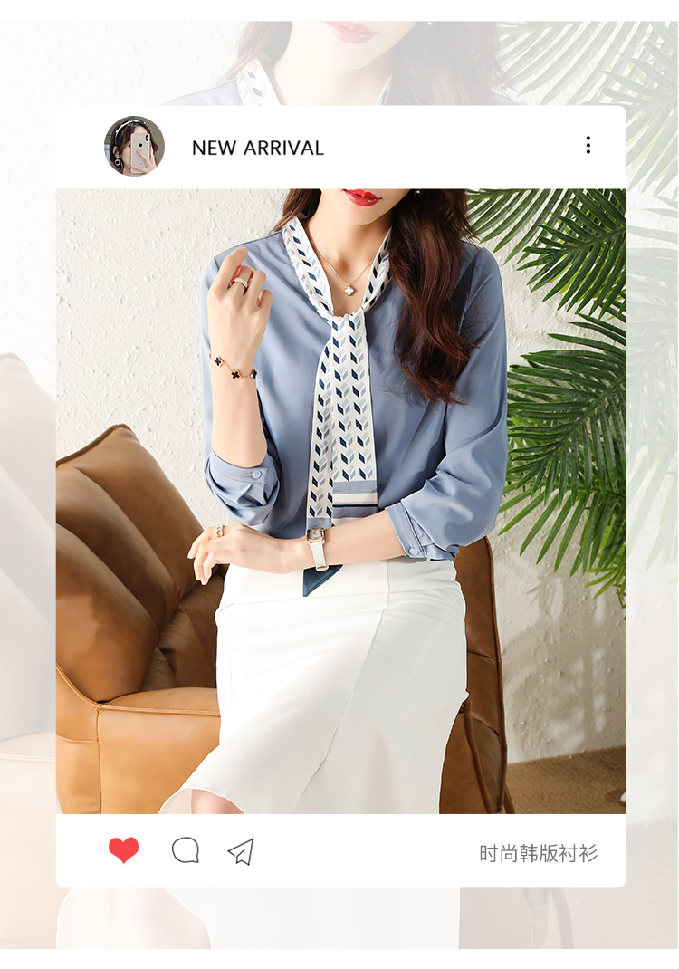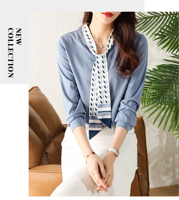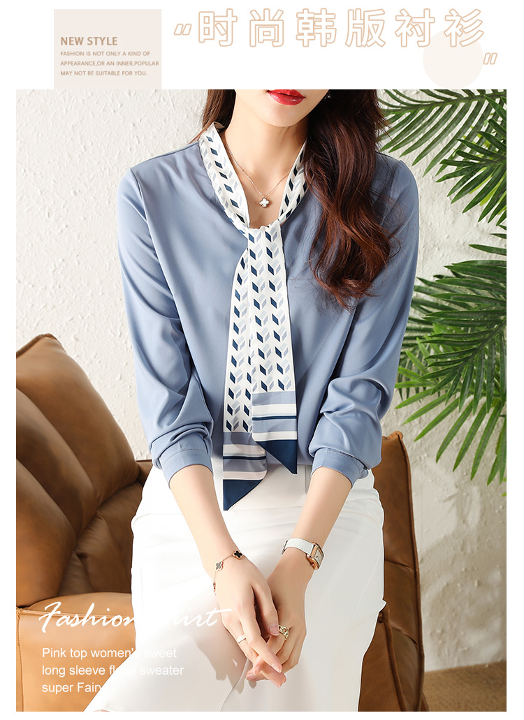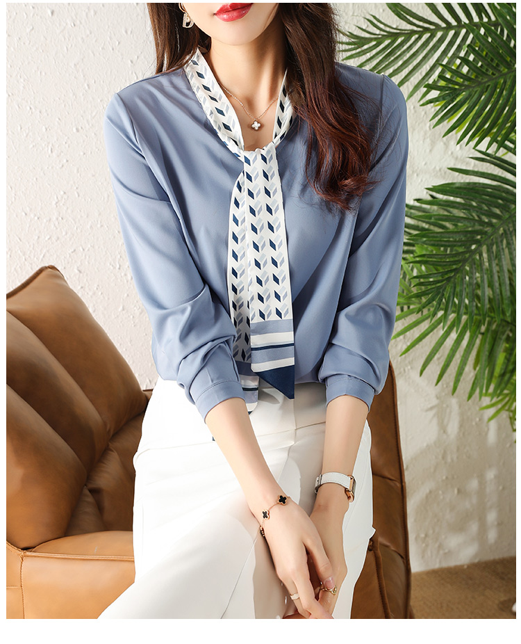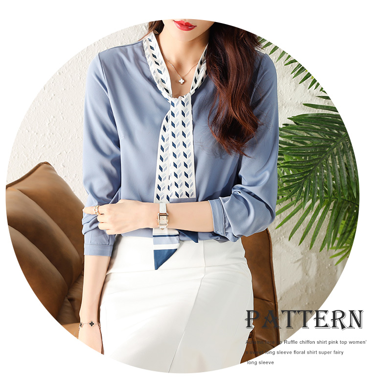 MY16167# 洋气时尚印花飘带V领雪纺衫女士新款今年流行漂亮上衣女裝貨源服裝批發