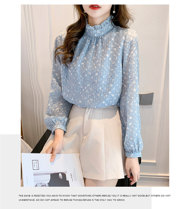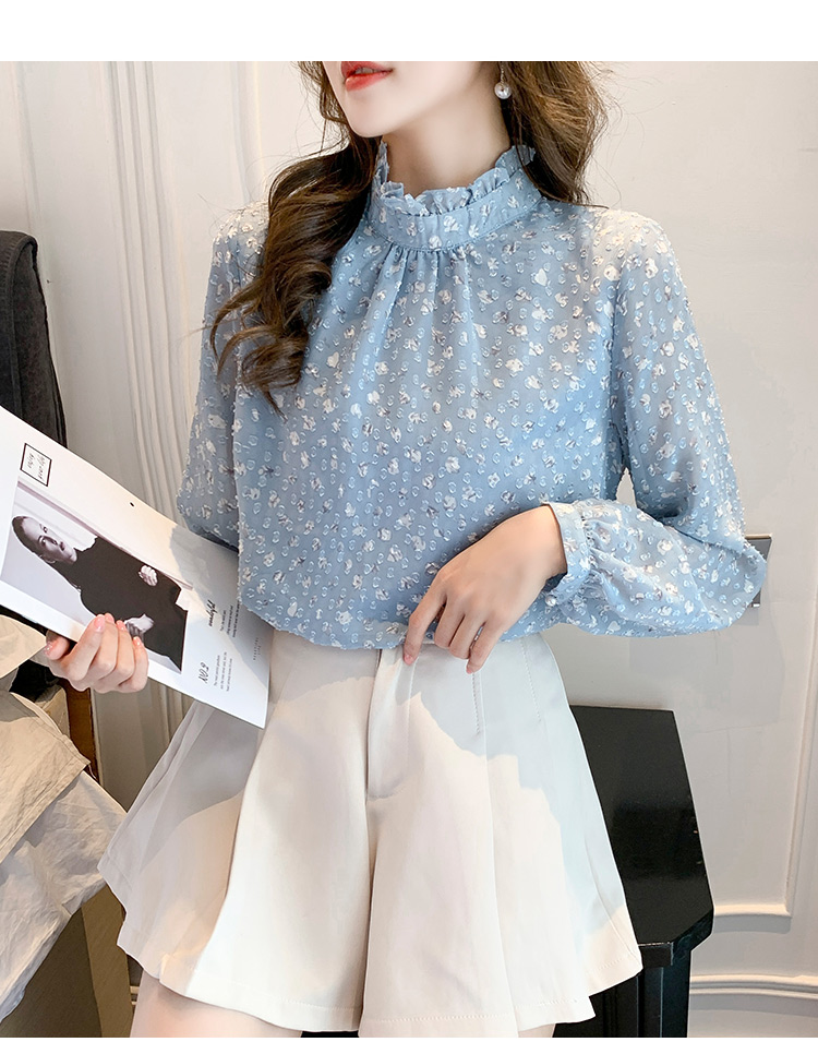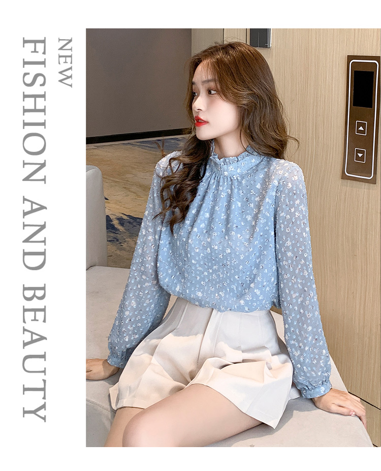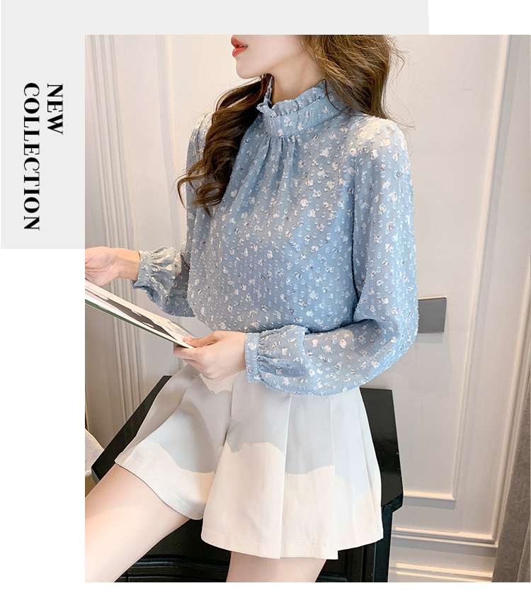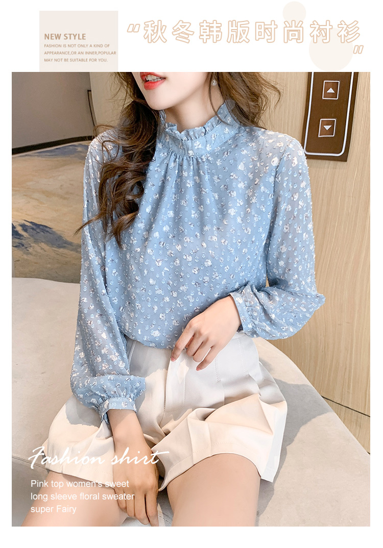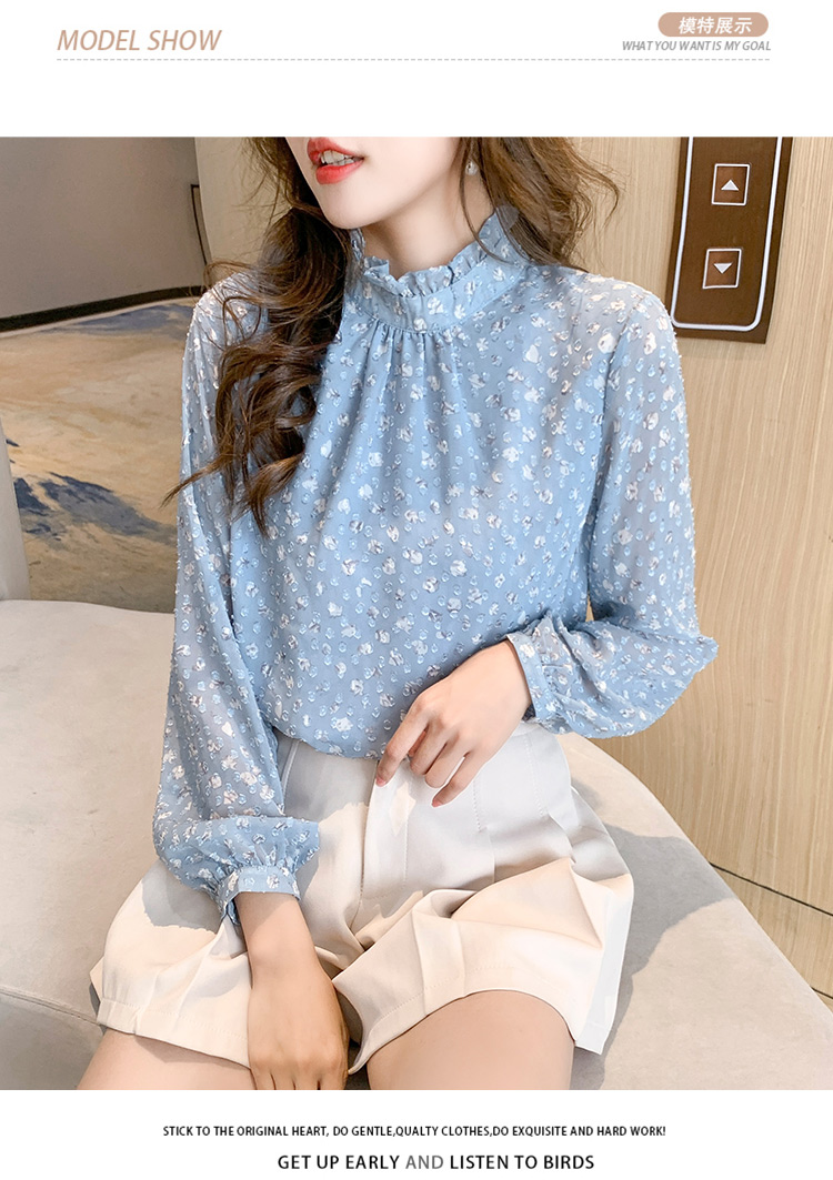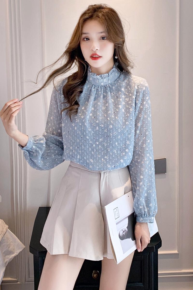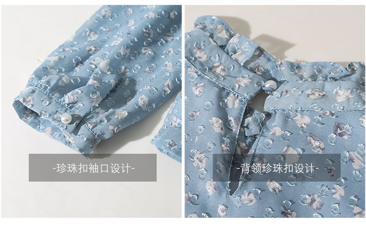 MY16168# 新款法式文艺高雅雪纺衫而神秘蹄花立体质感长袖小衫上衣女裝貨源服裝批發