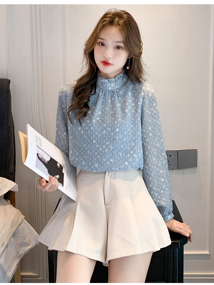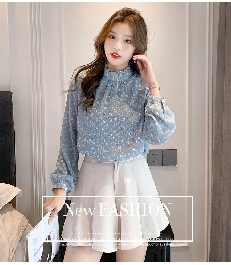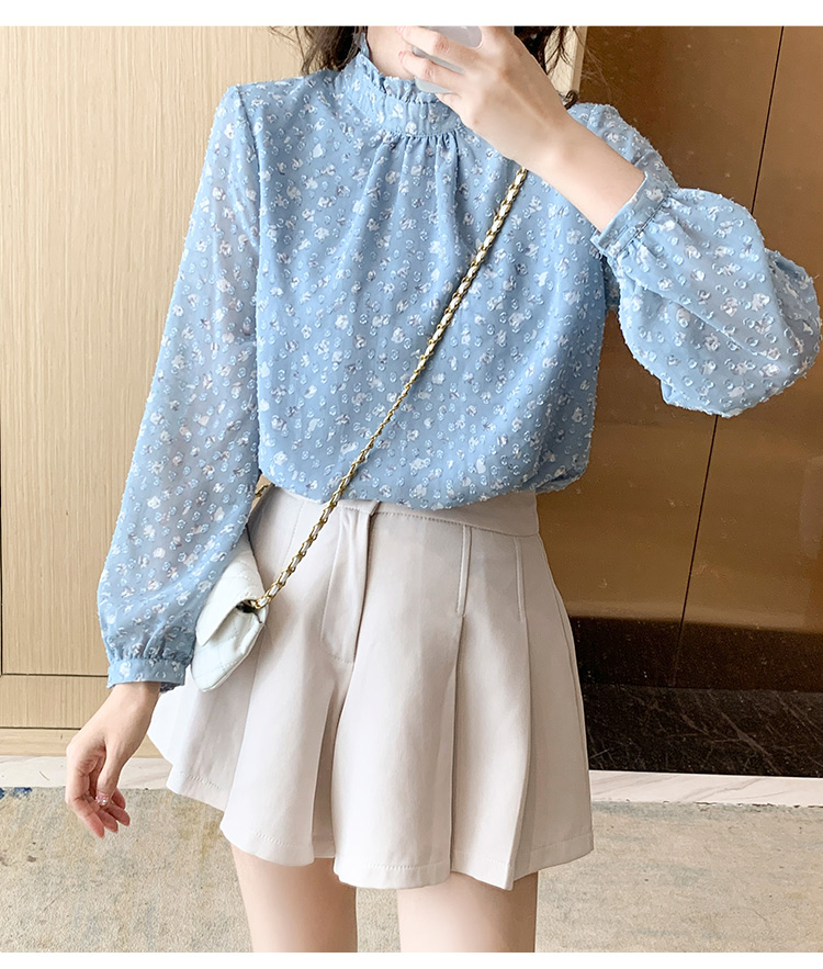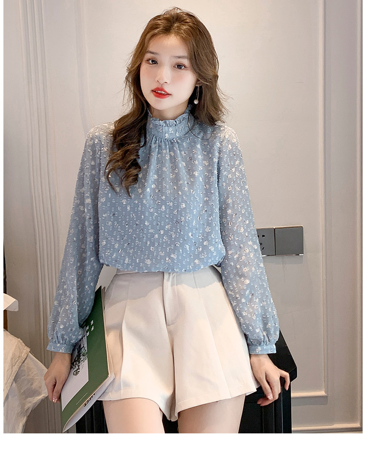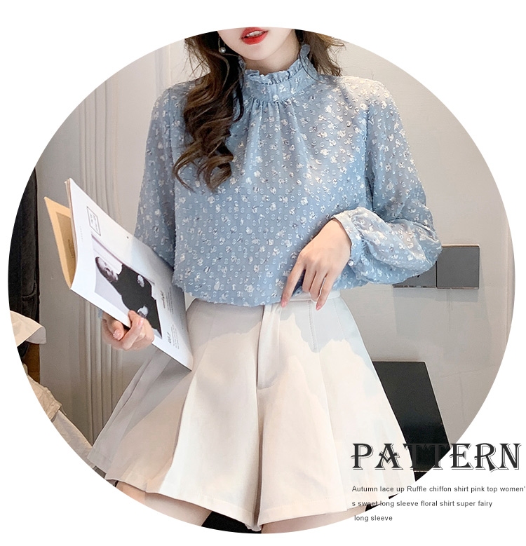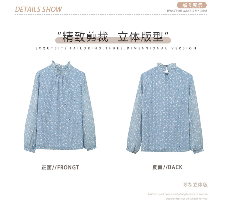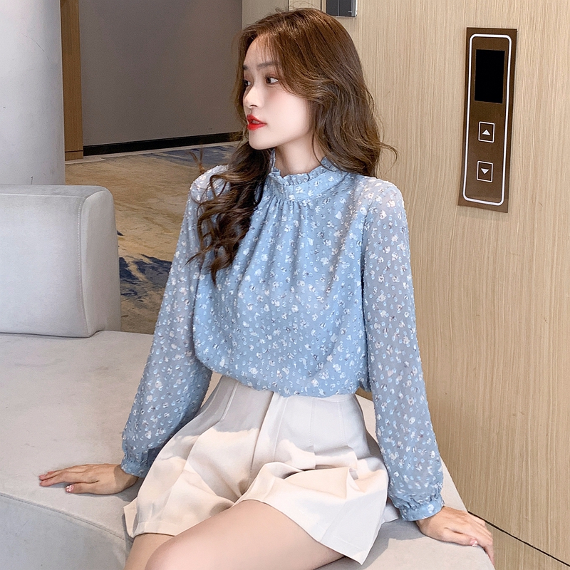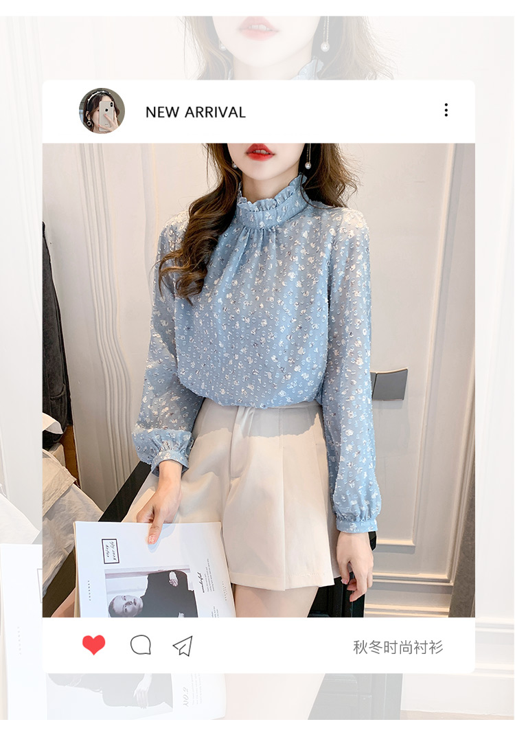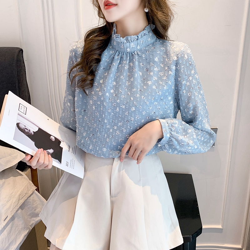 MY16168# 新款法式文艺高雅雪纺衫而神秘蹄花立体质感长袖小衫上衣女裝貨源服裝批發