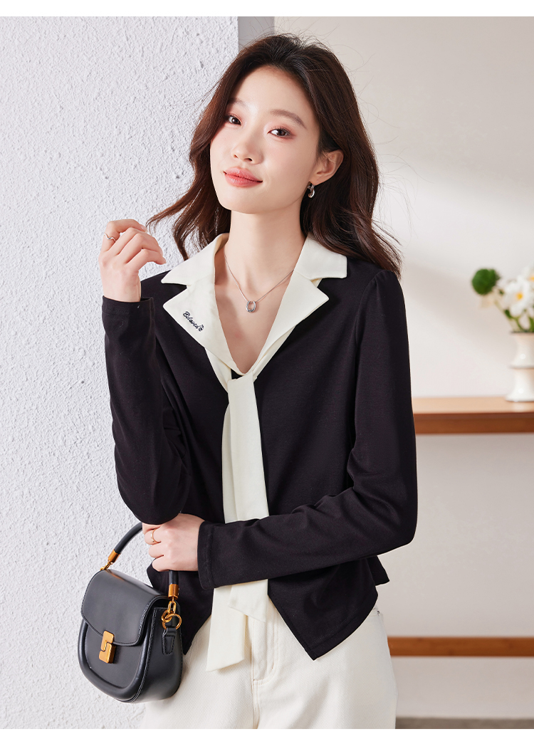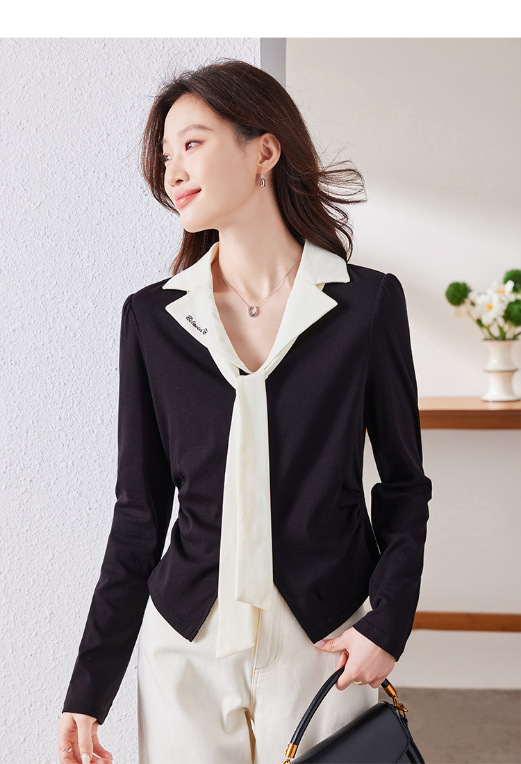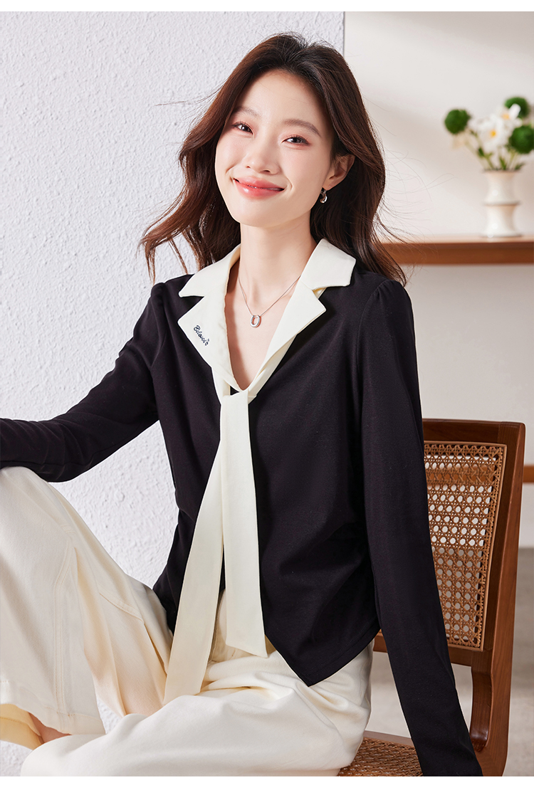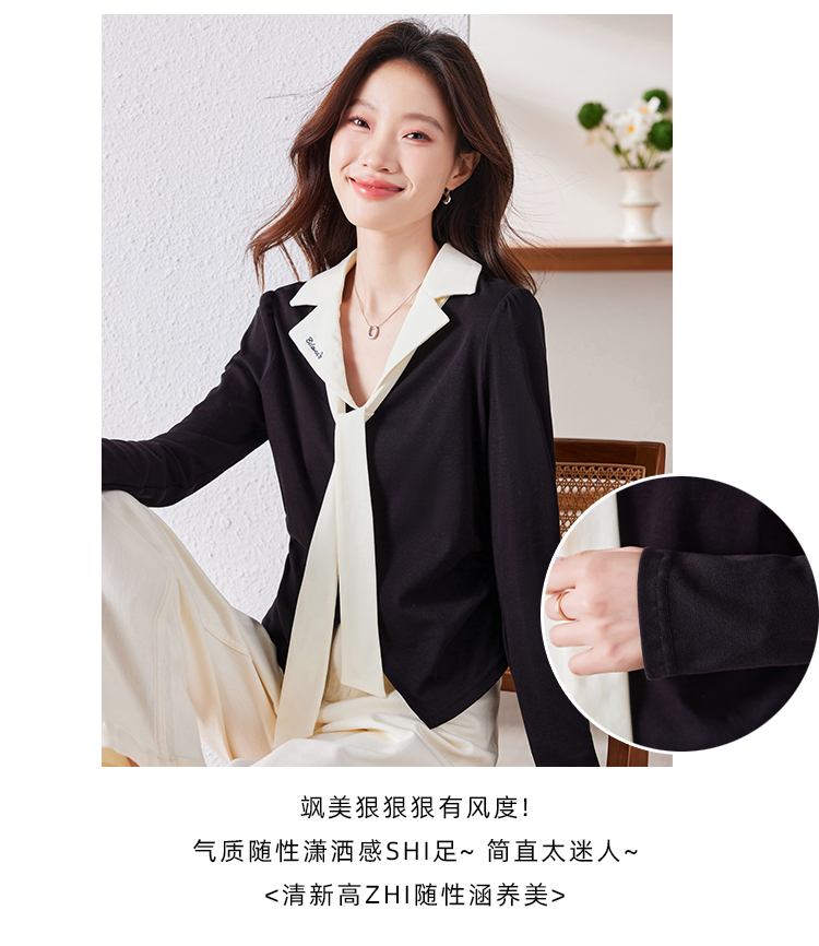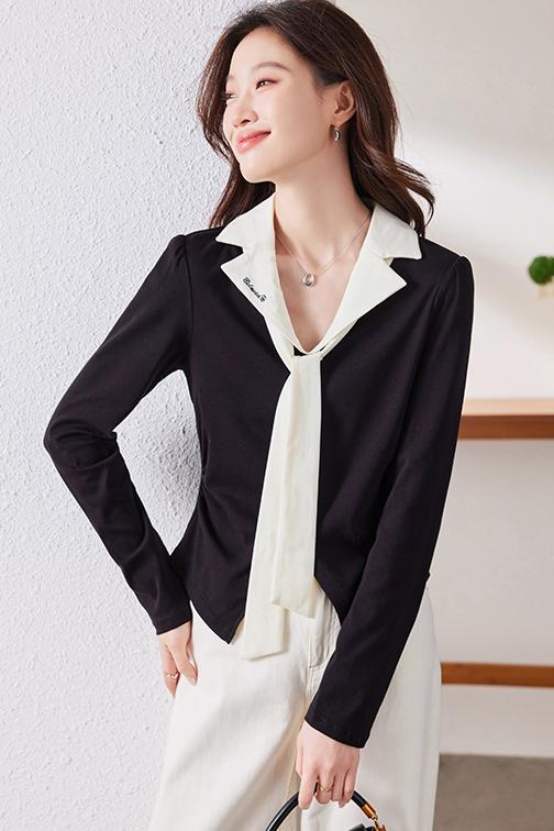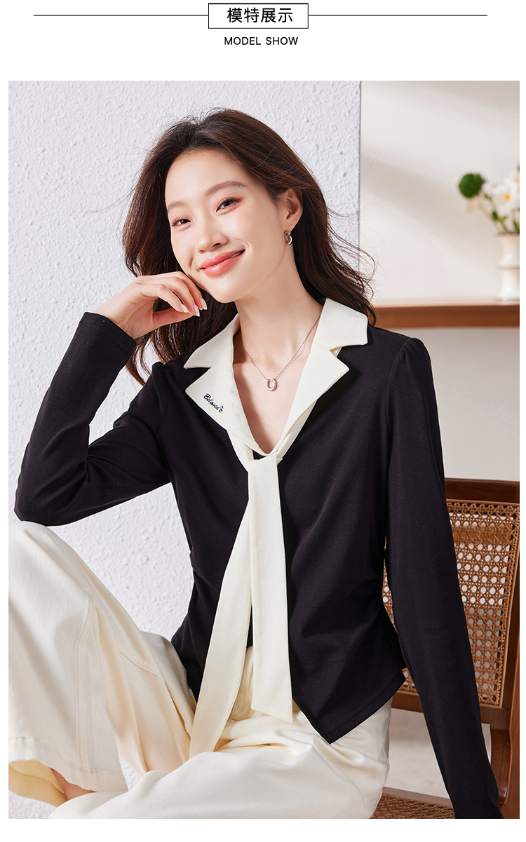 MY16188# 大码女装胖mm法式优雅v领黑色上衣显瘦百搭减龄长袖T恤女裝貨源服裝批發