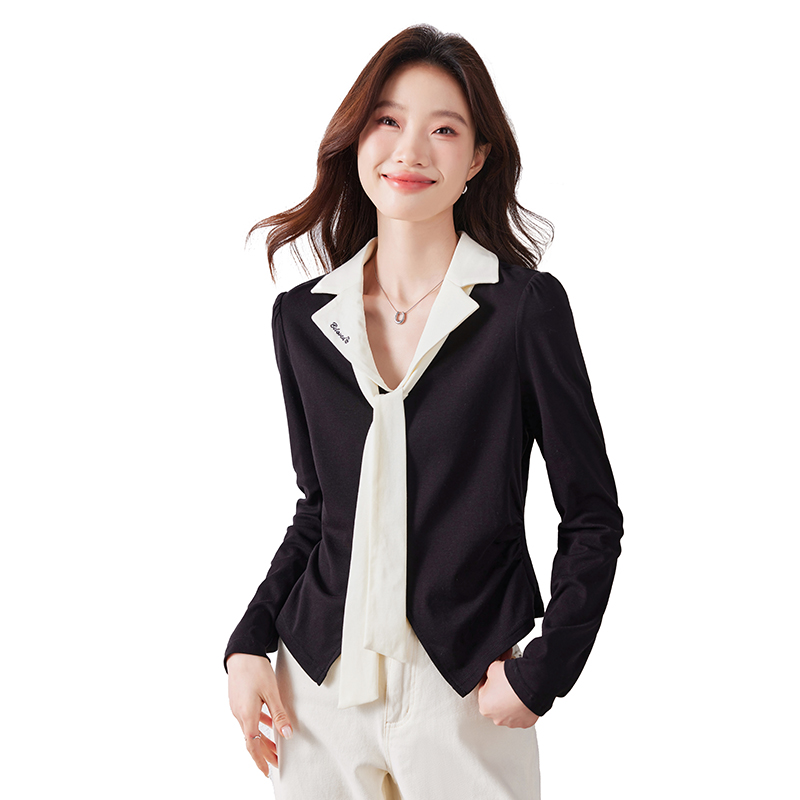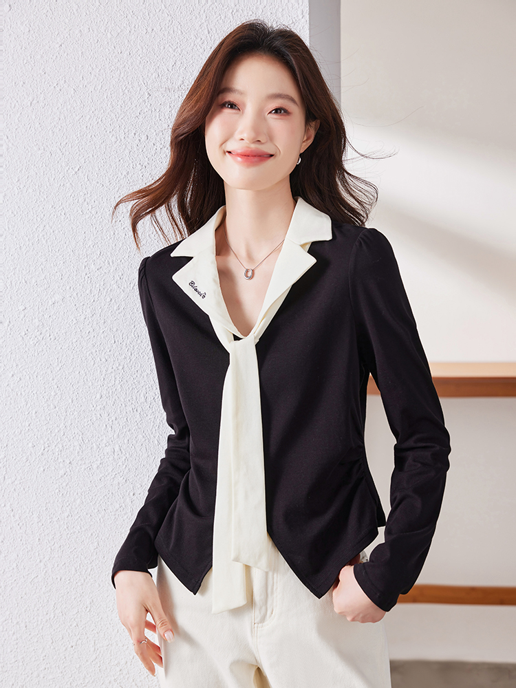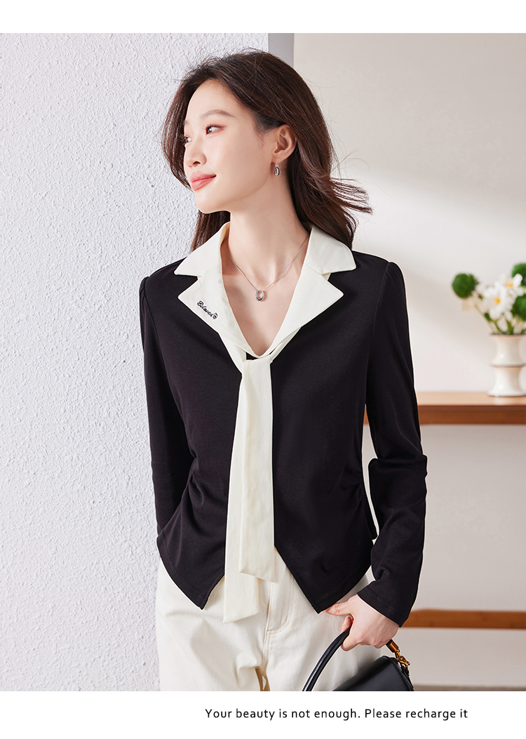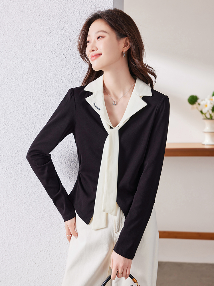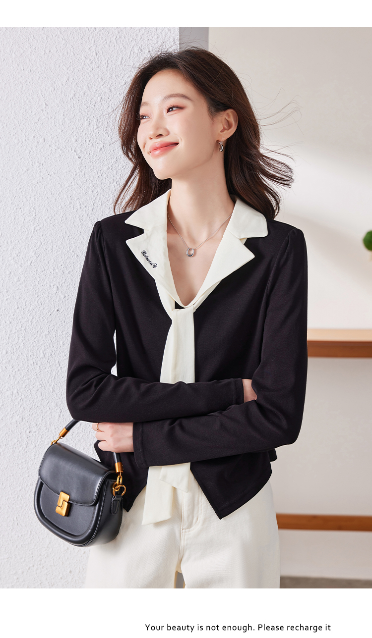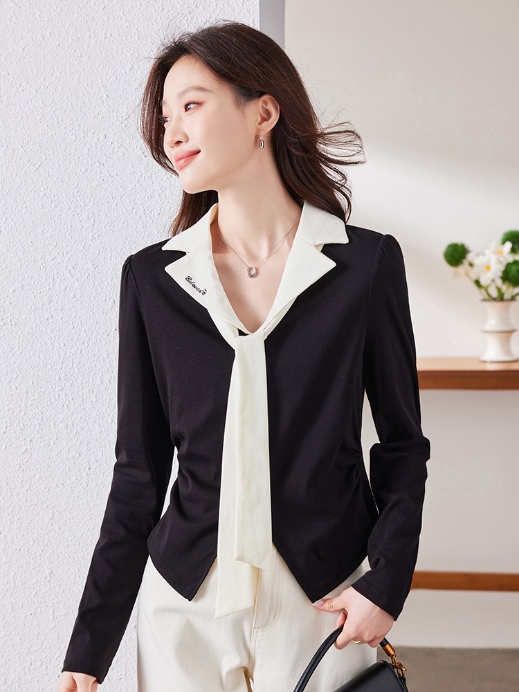 MY16188# 大码女装胖mm法式优雅v领黑色上衣显瘦百搭减龄长袖T恤女裝貨源服裝批發
