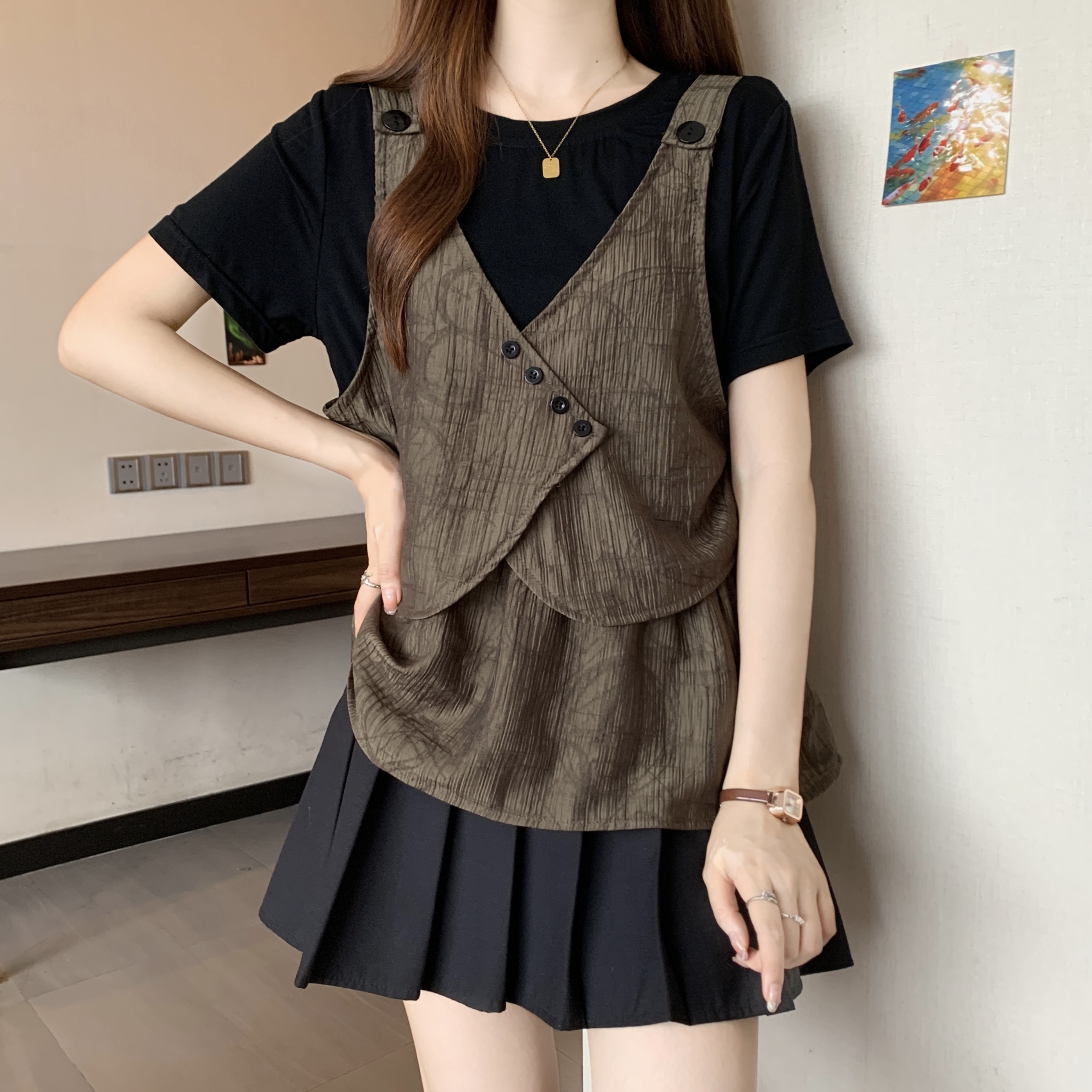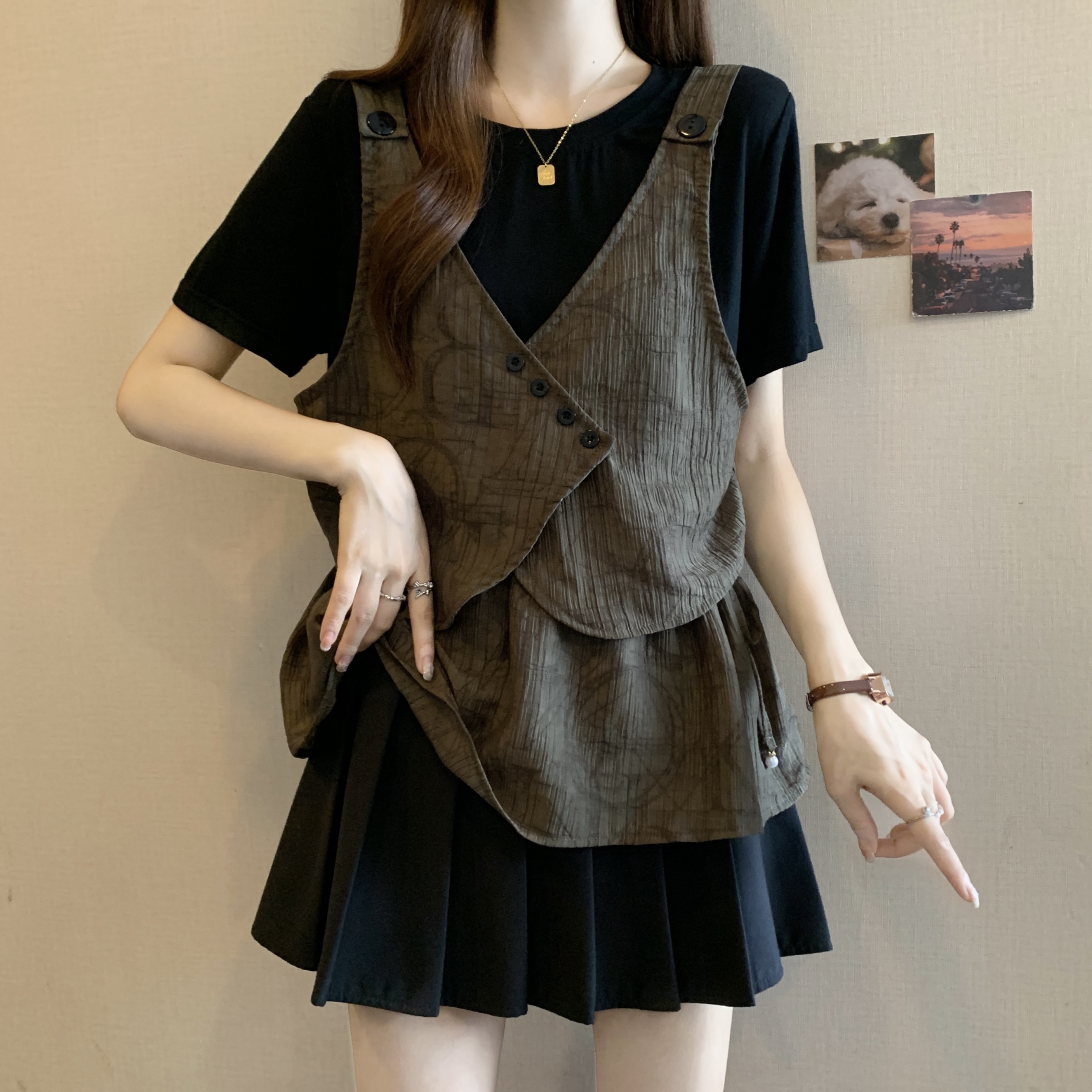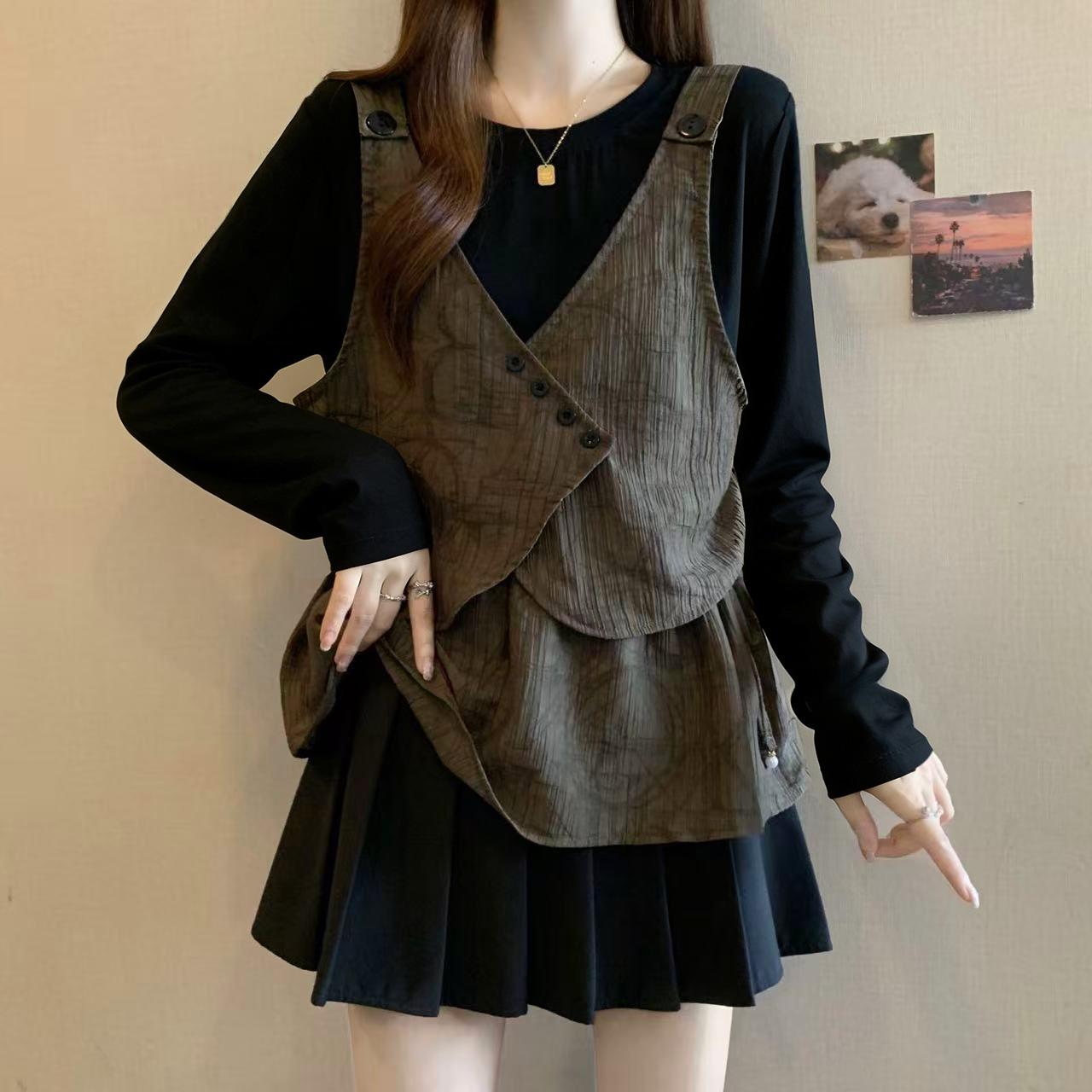 MY16203# 大码胖MM2026新款设计感假两件长袖T恤女显瘦不规则上衣女裝貨源服裝批發