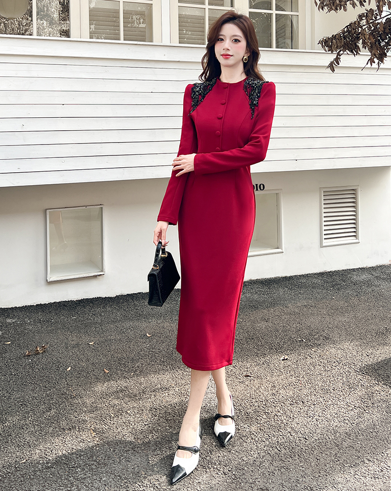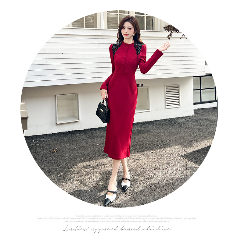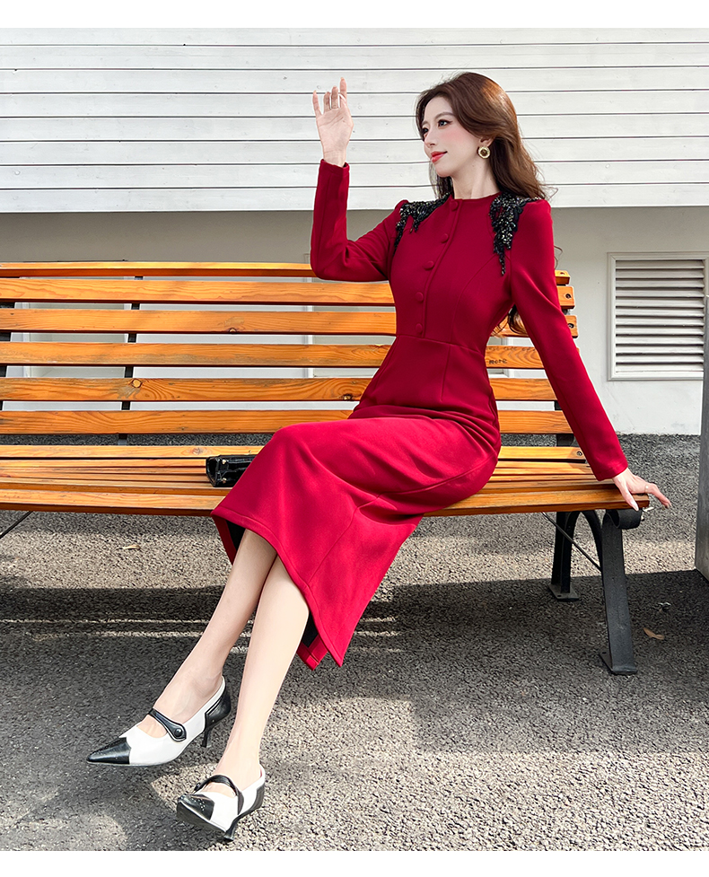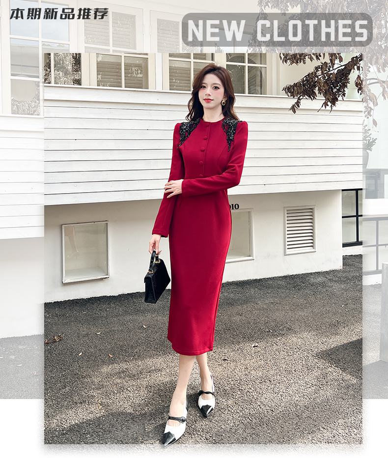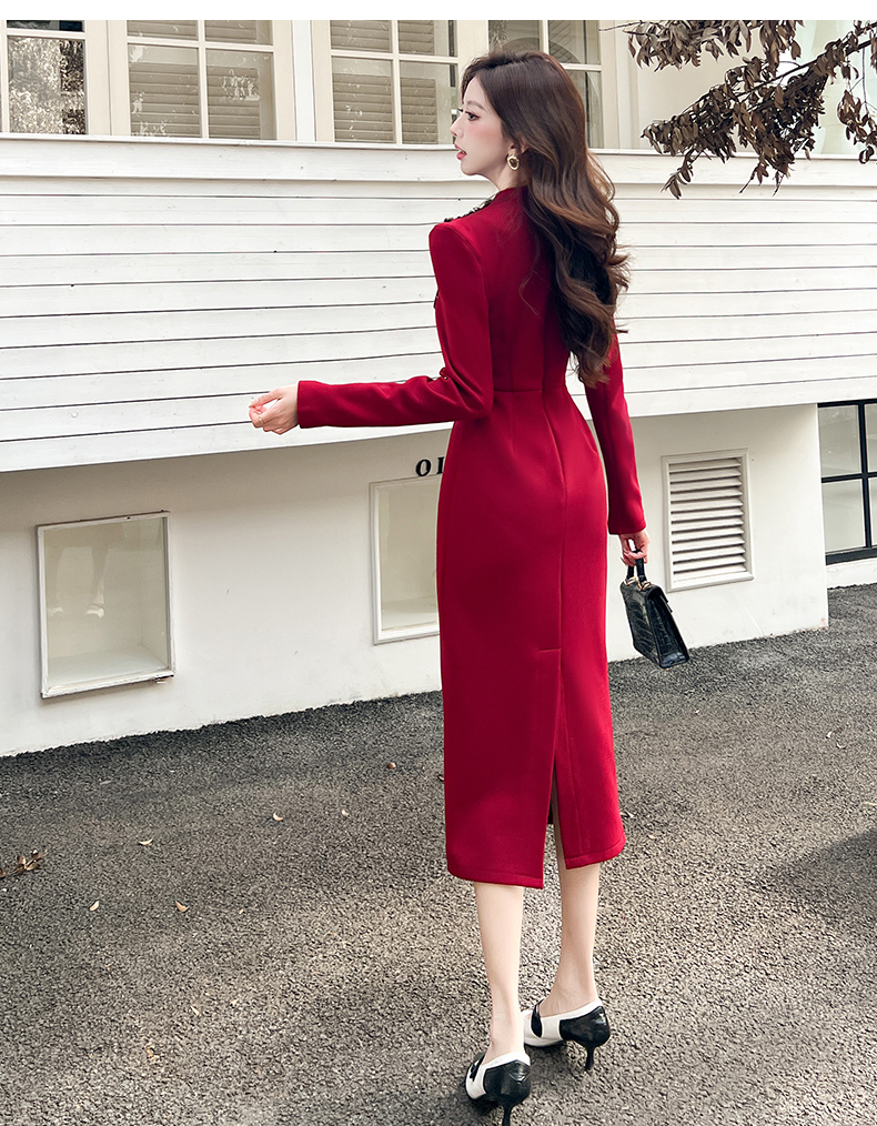 MY16216# 时尚气质单排扣长裙包臀连衣裙女裝貨源服裝批發