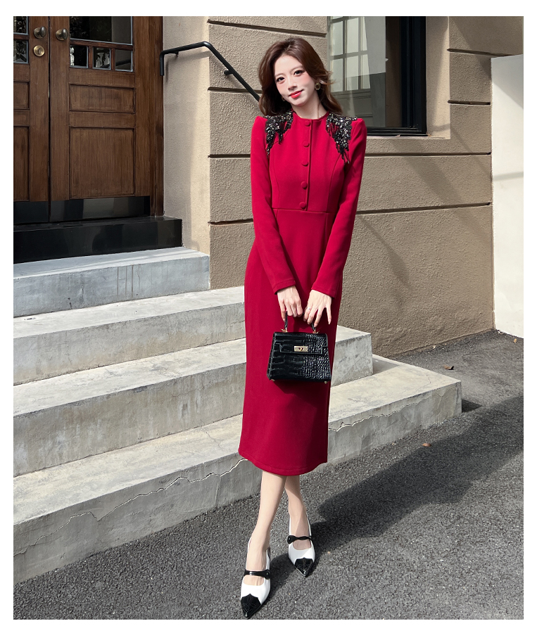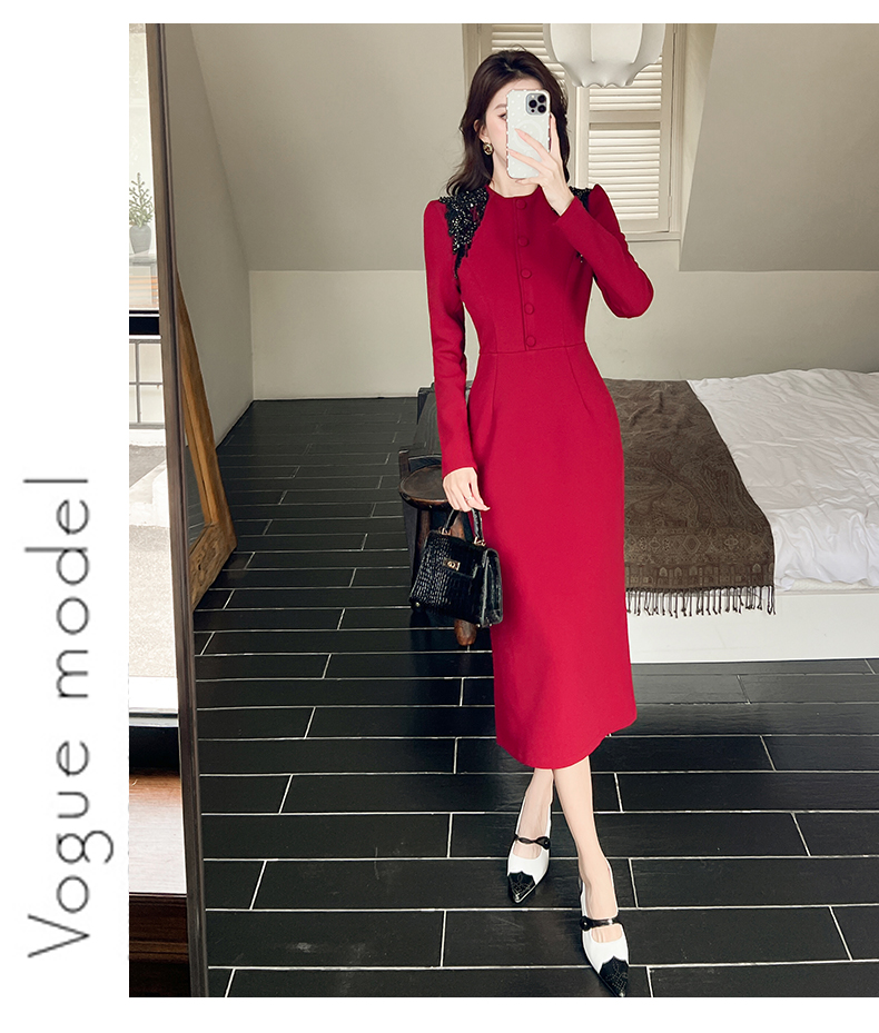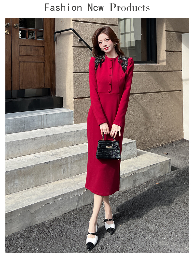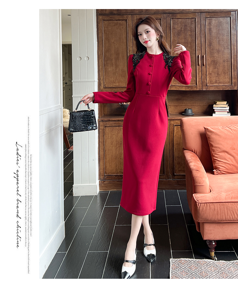 MY16216# 时尚气质单排扣长裙包臀连衣裙女裝貨源服裝批發