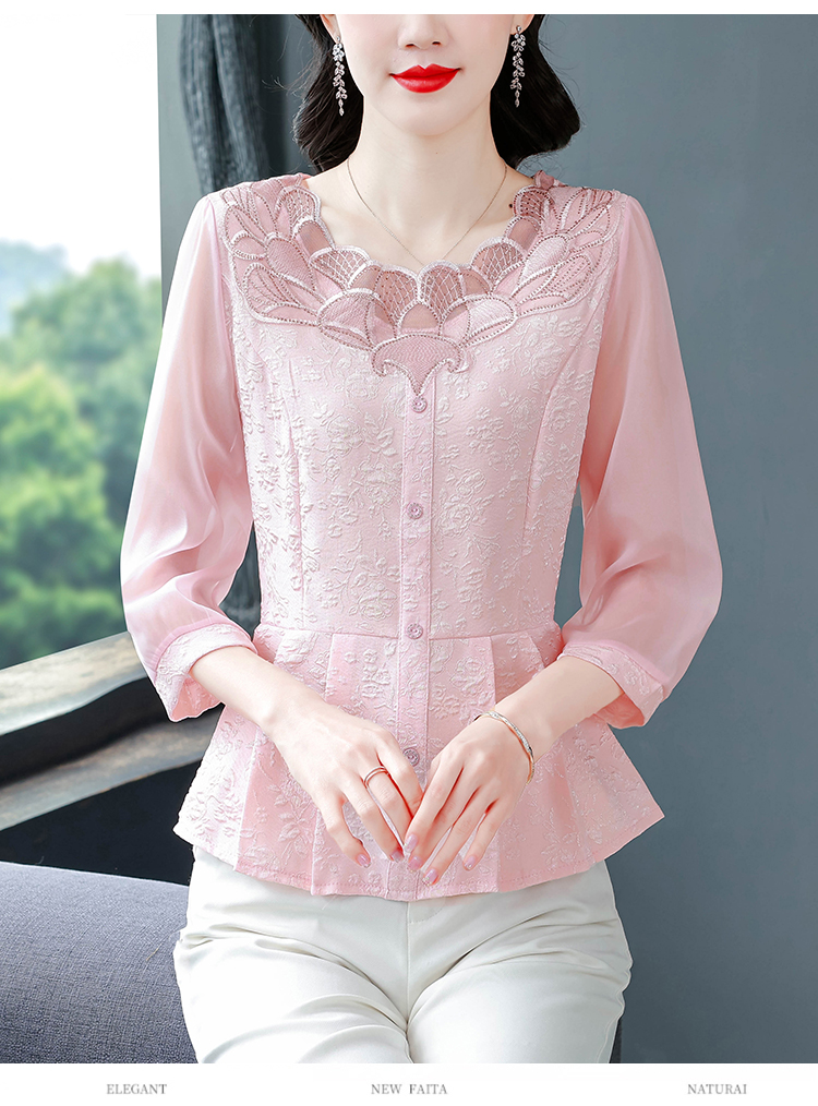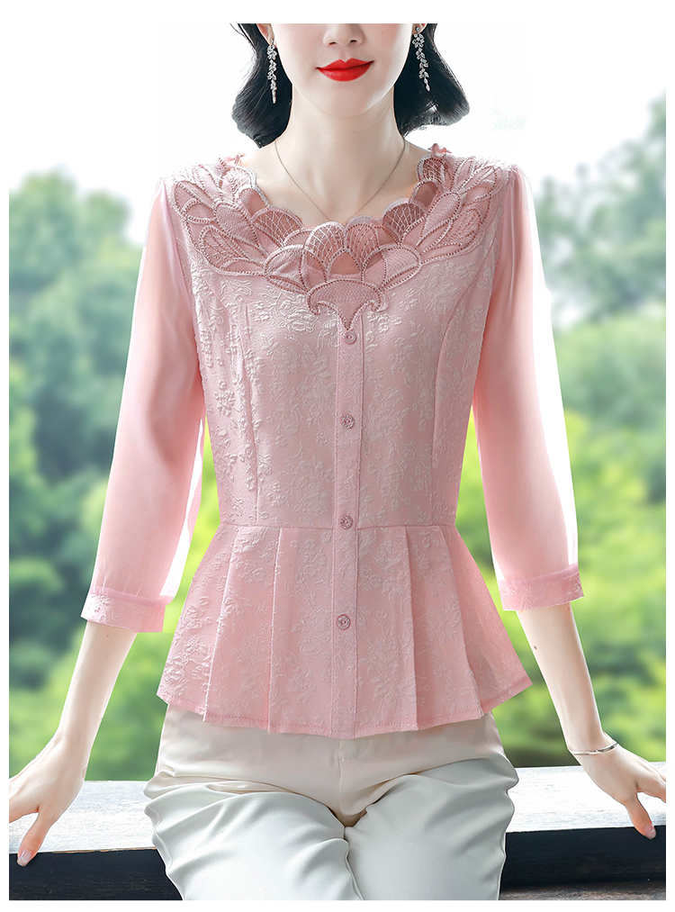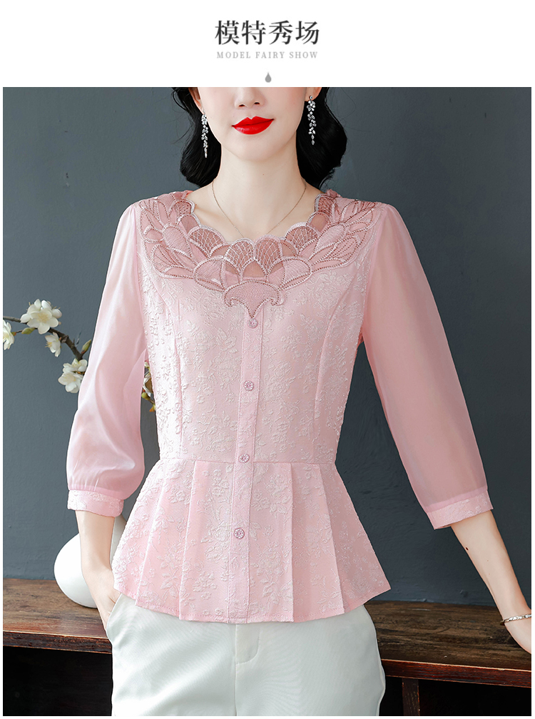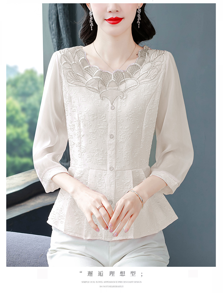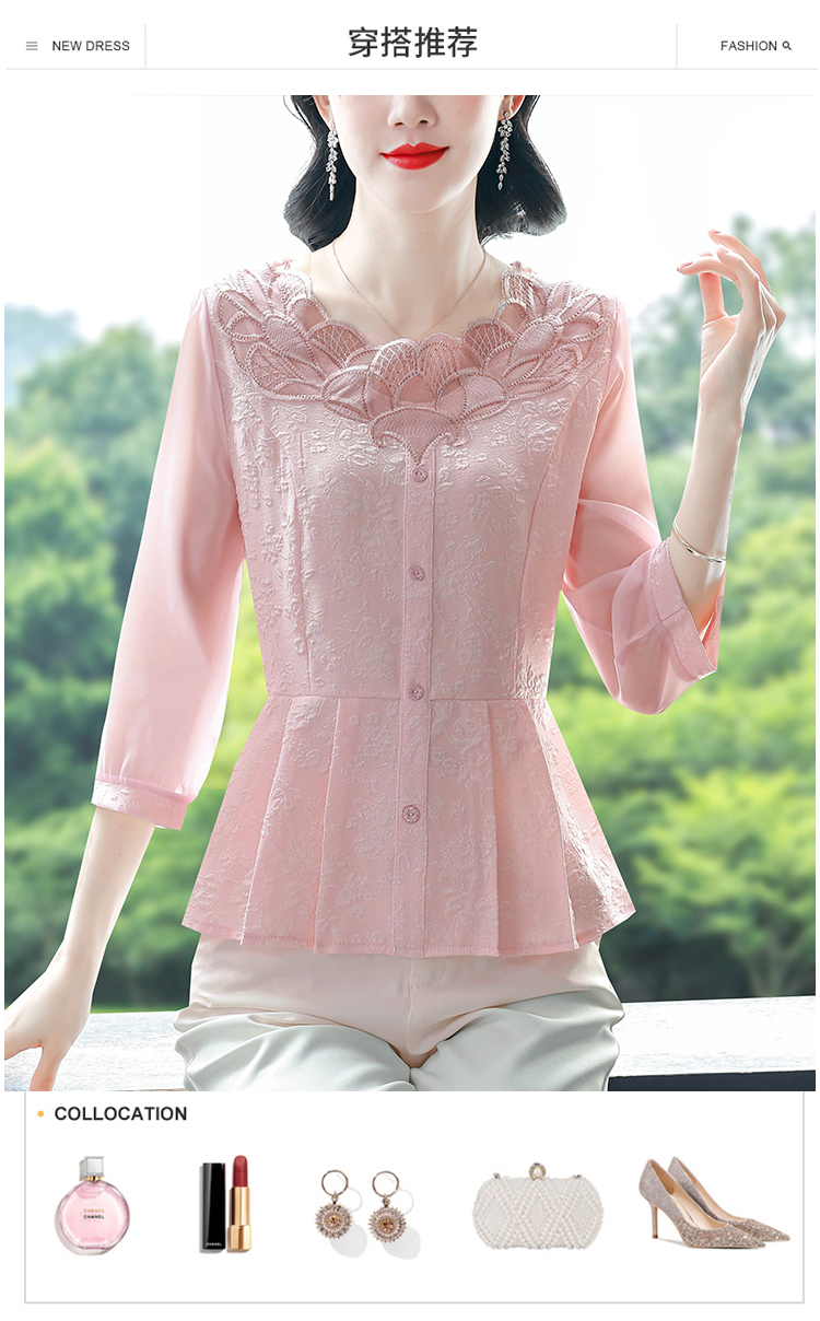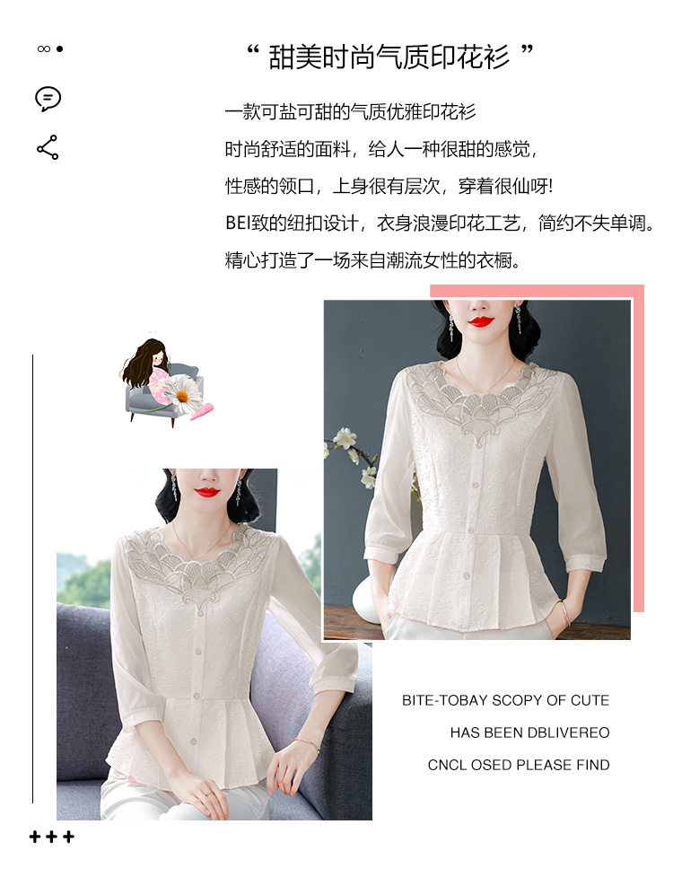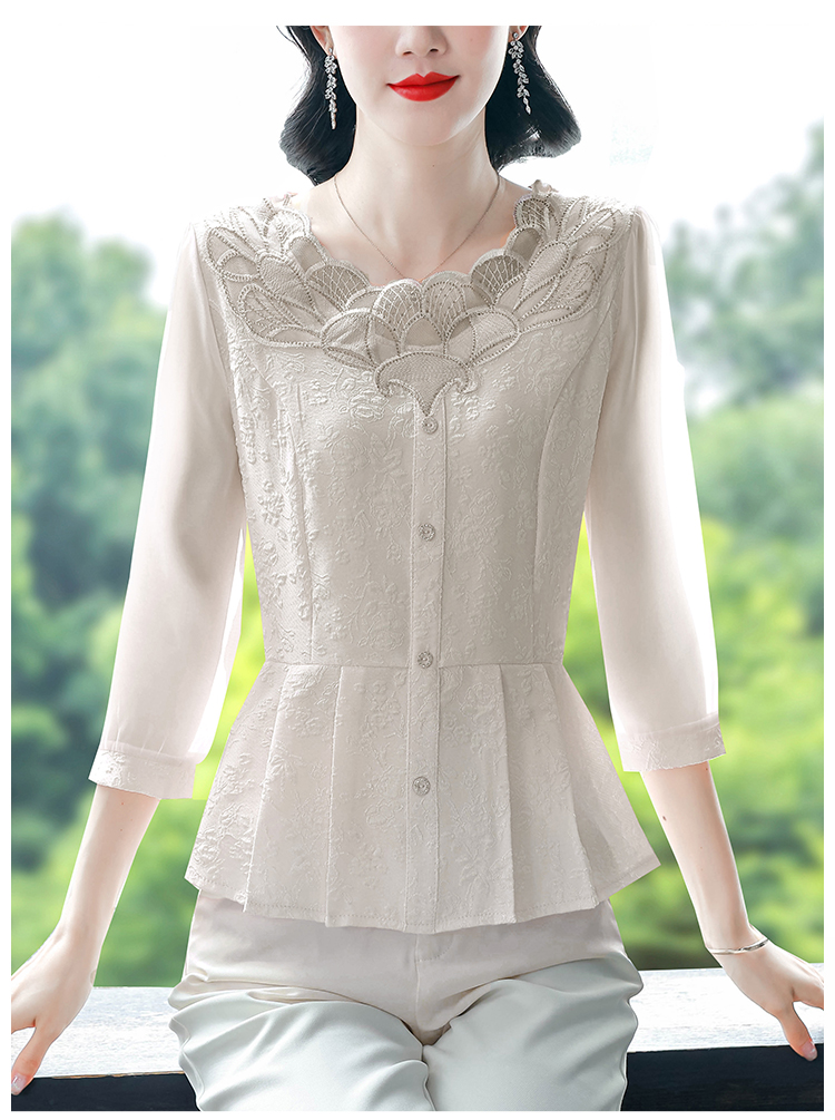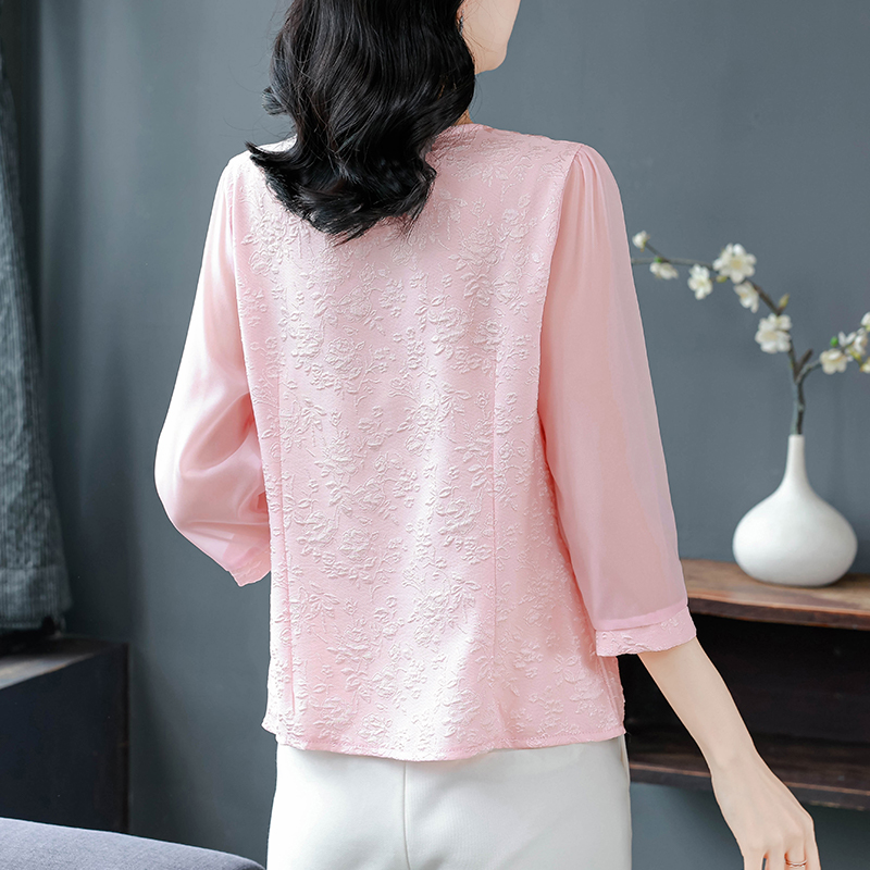 MY16247# 新款七分袖提花雪纺衫女花瓣领漂亮小衫洋气减龄遮肚子上衣女裝貨源服裝批發