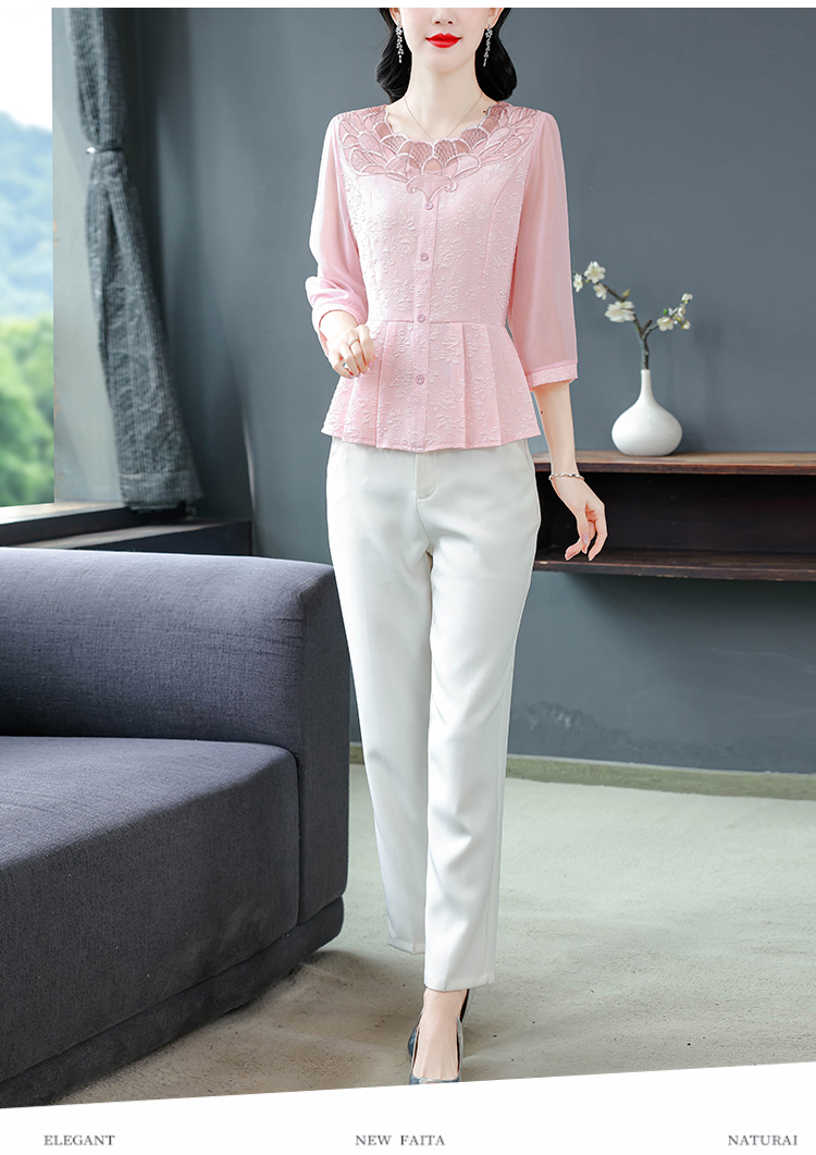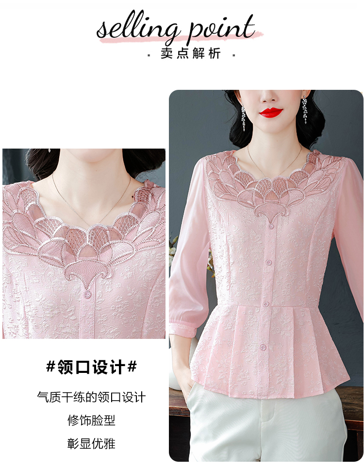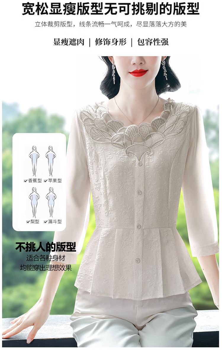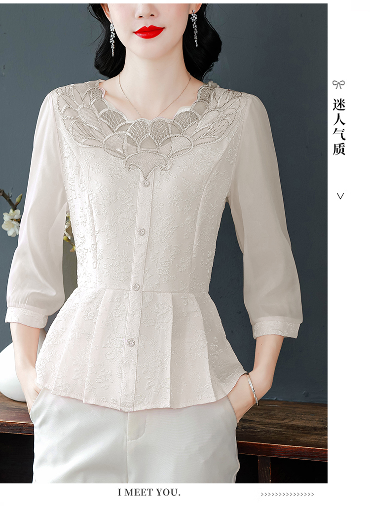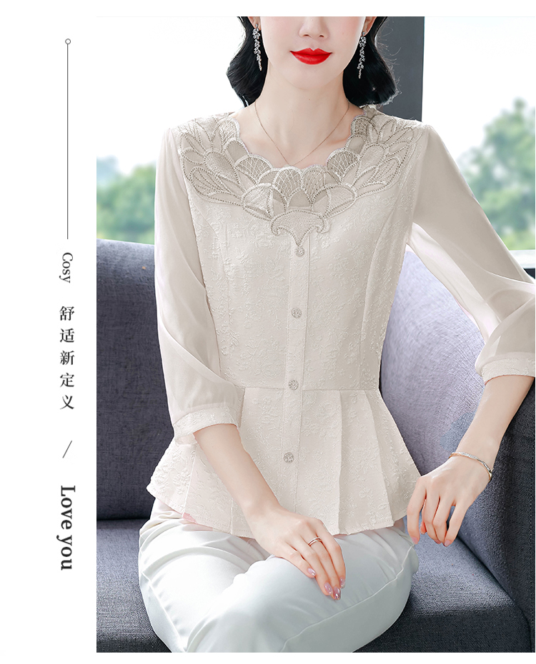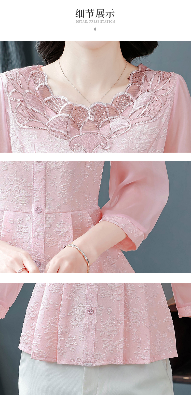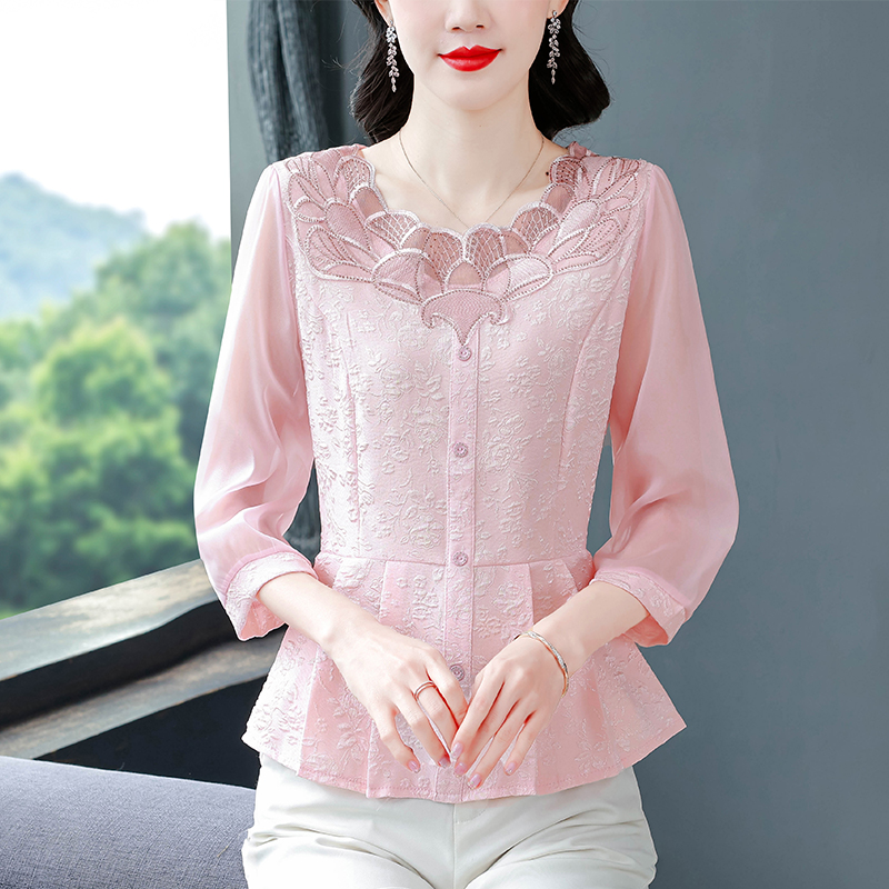 MY16247# 新款七分袖提花雪纺衫女花瓣领漂亮小衫洋气减龄遮肚子上衣女裝貨源服裝批發