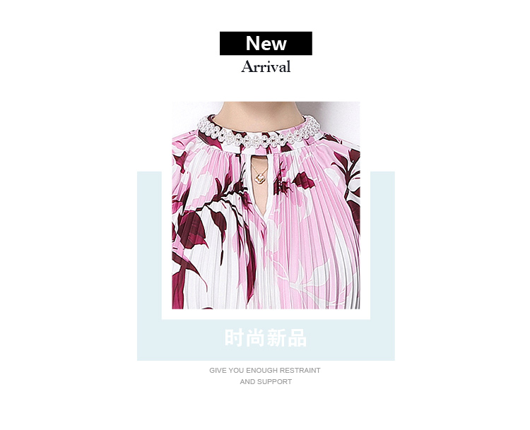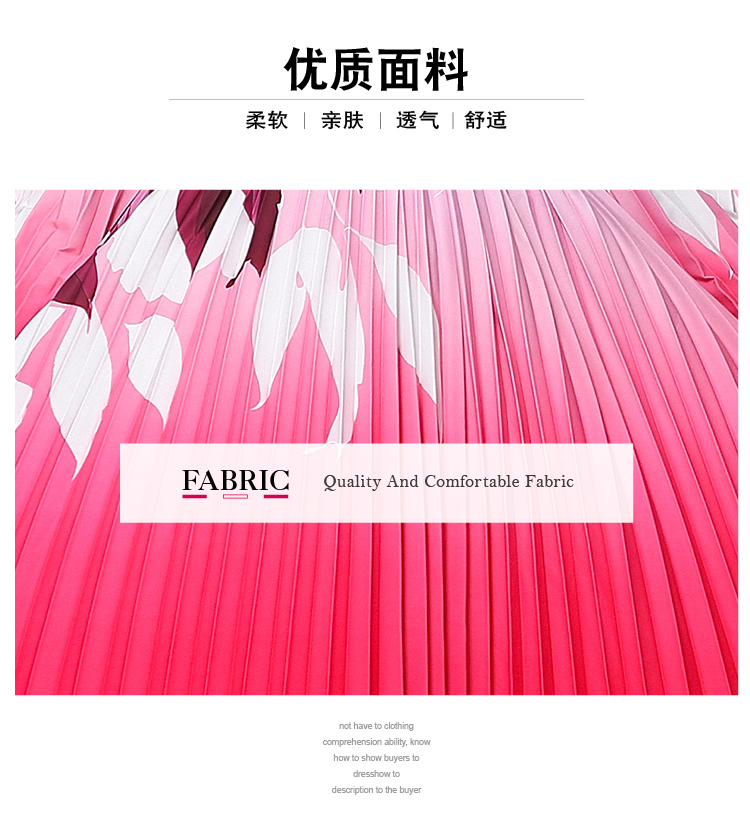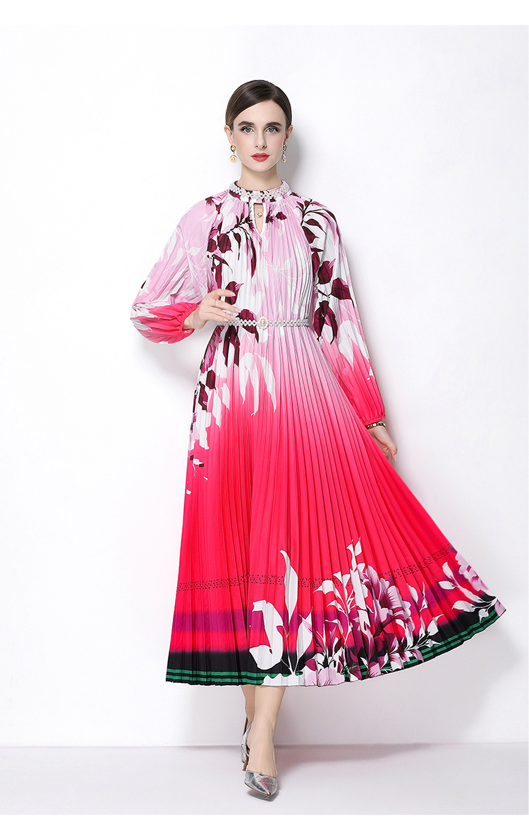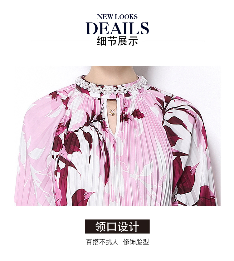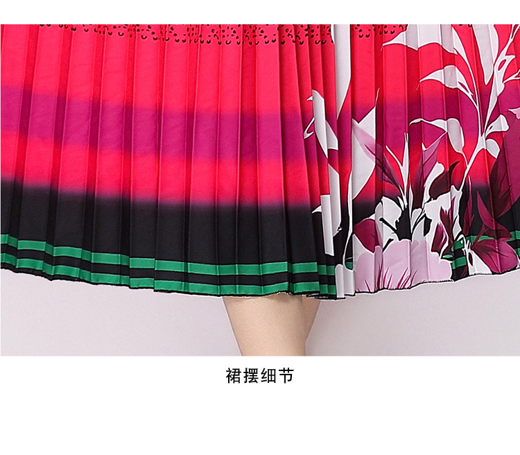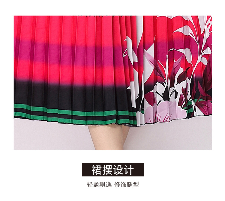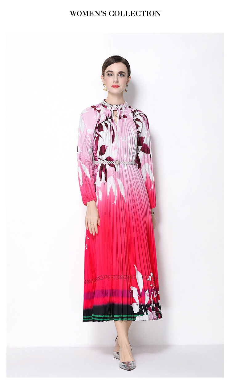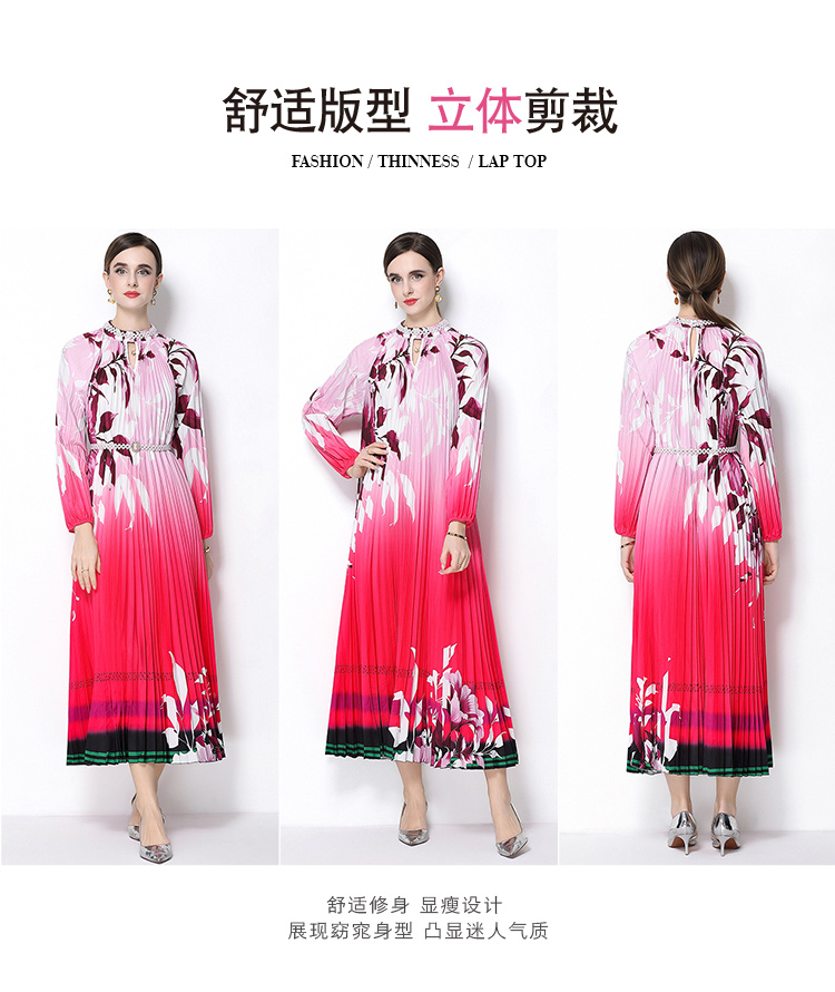 MY16257# 高端钉珠定位印花压褶珍珠扣百褶长裙女裝貨源服裝批發