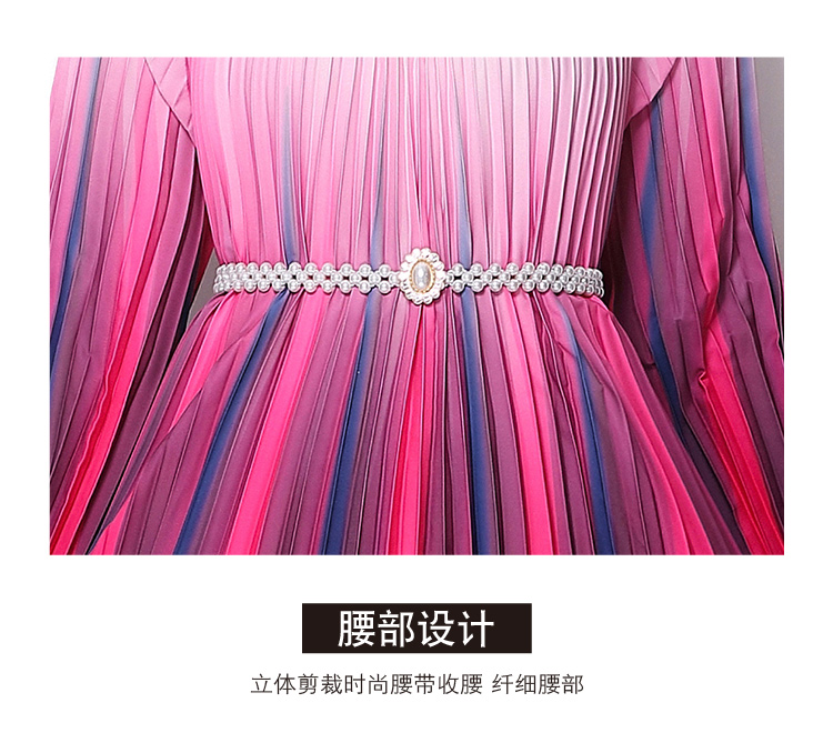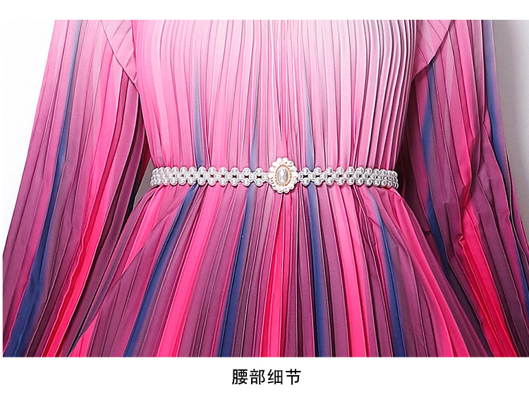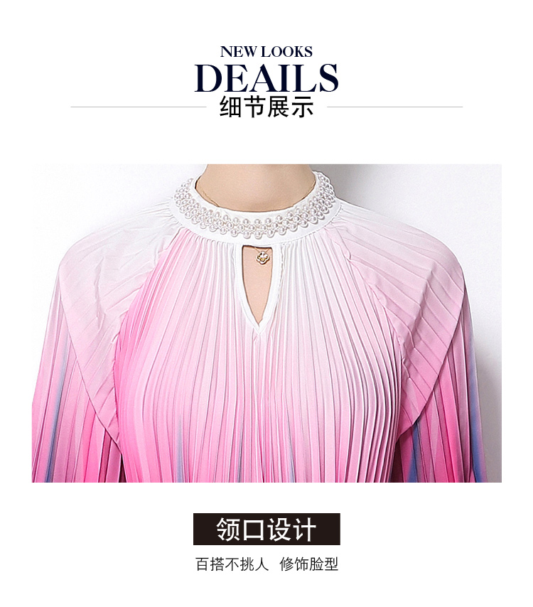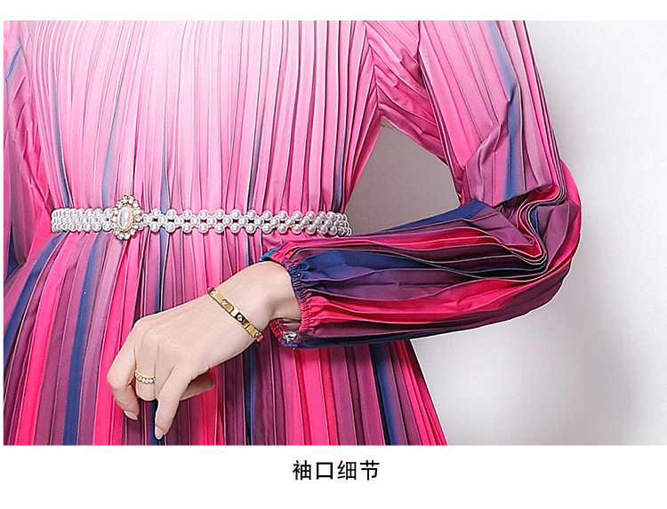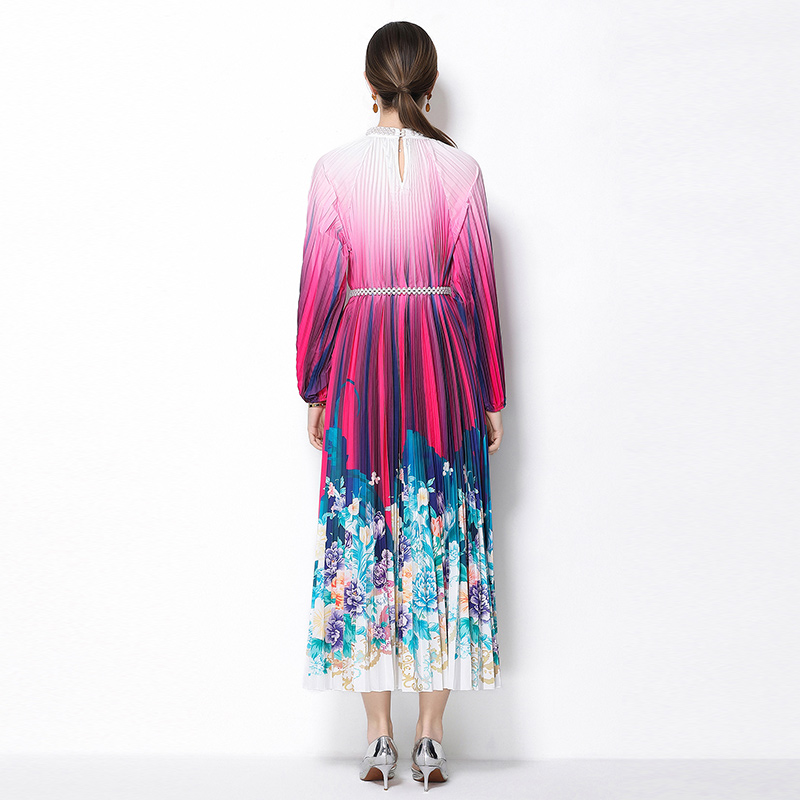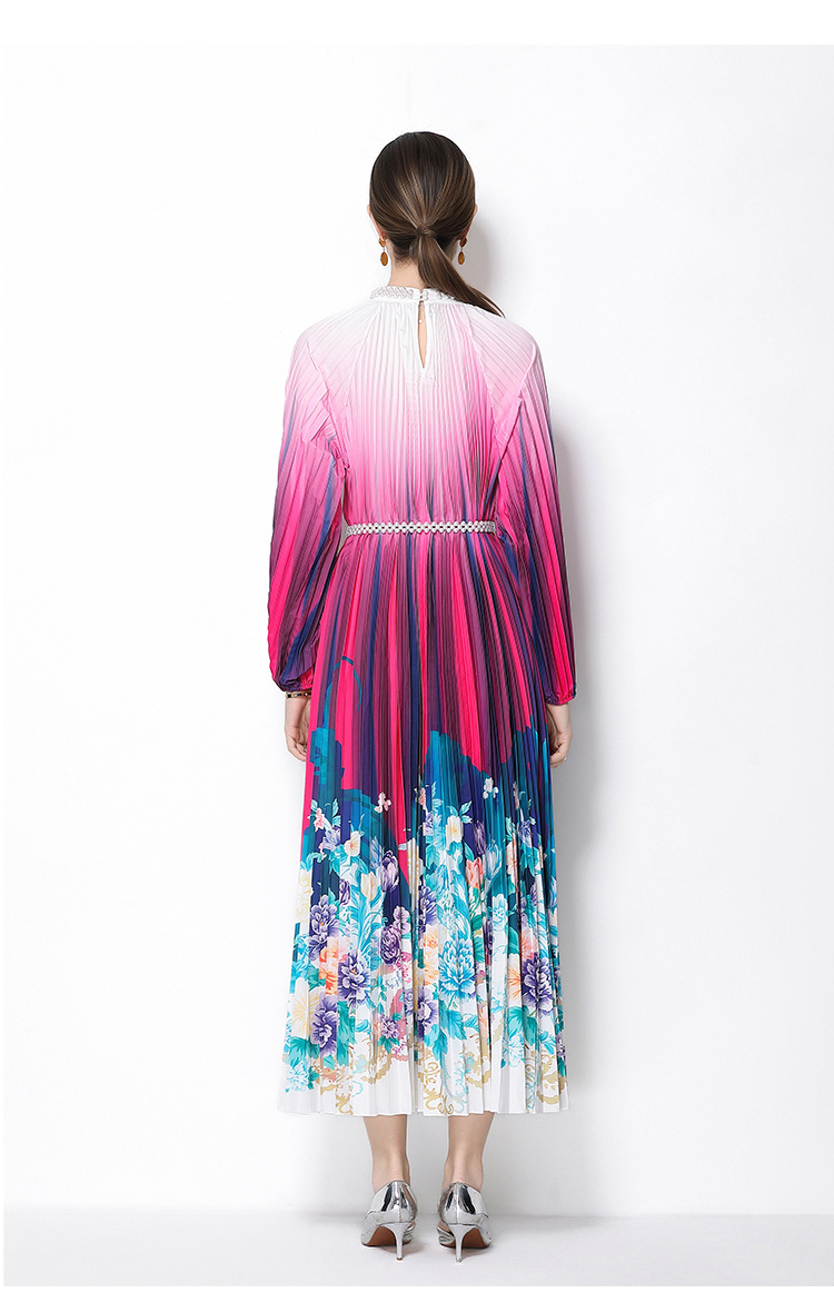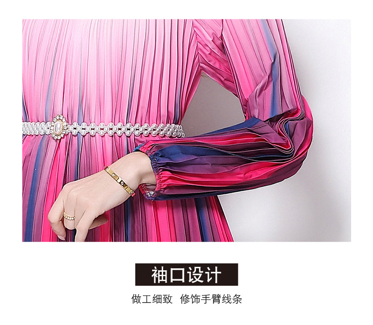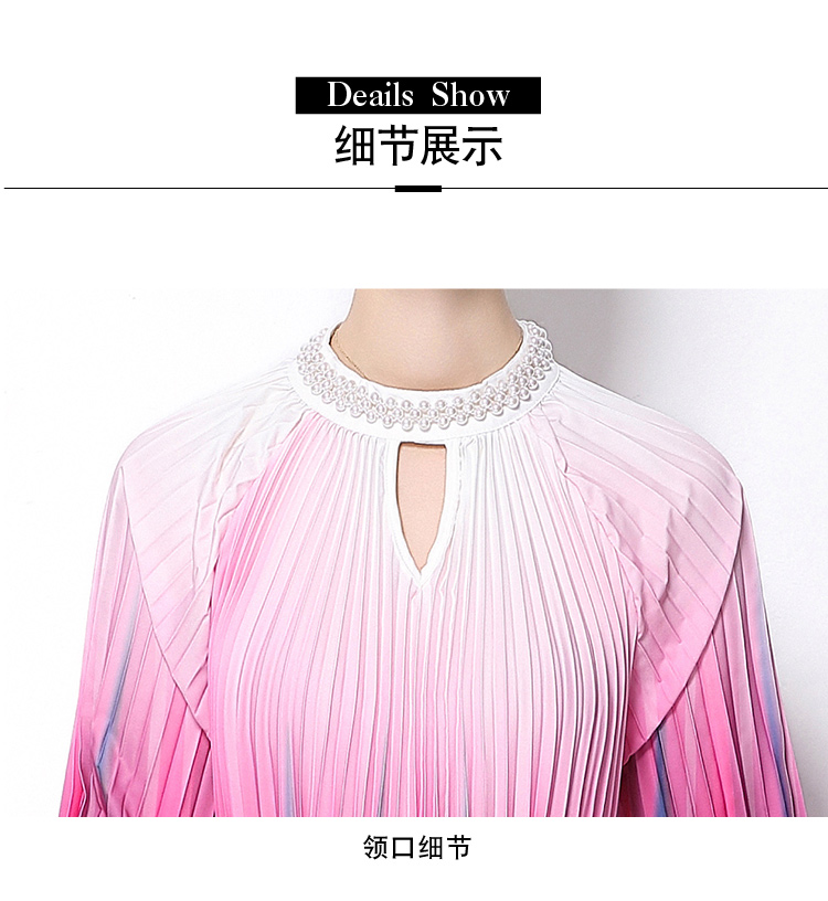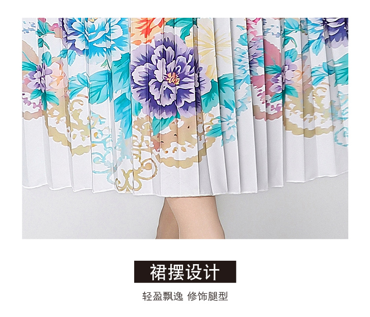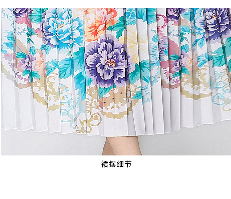 MY16258# 高端钉珠定位印花压褶珍珠扣百褶长裙女裝貨源服裝批發