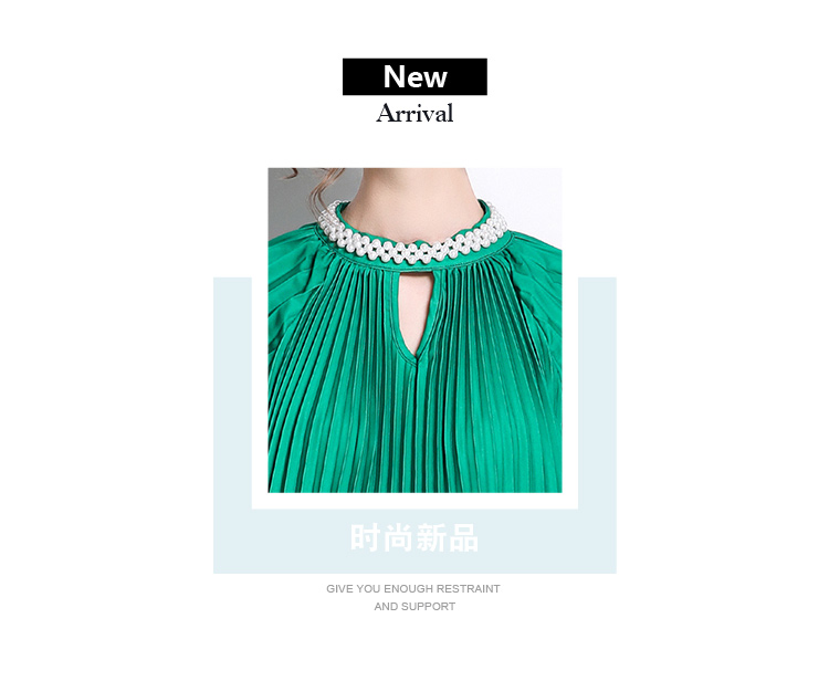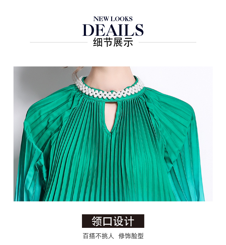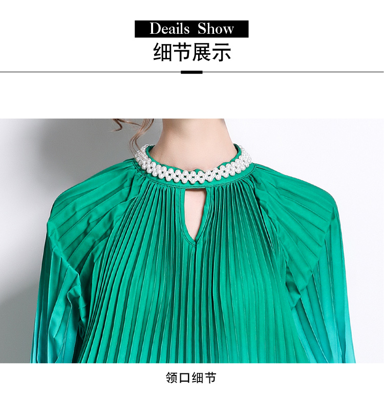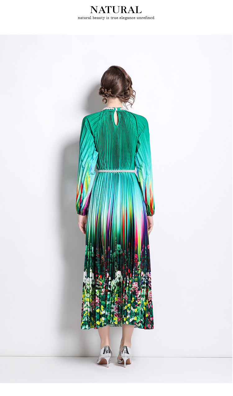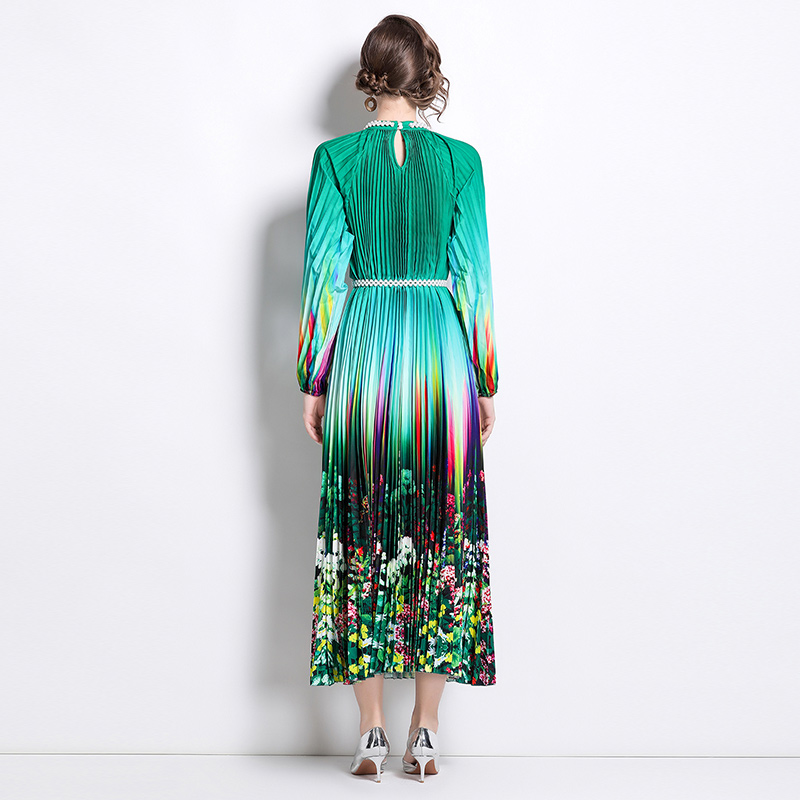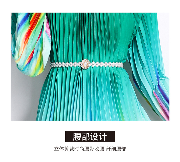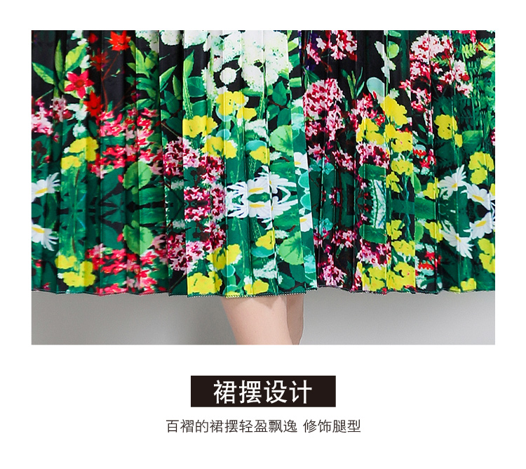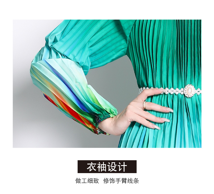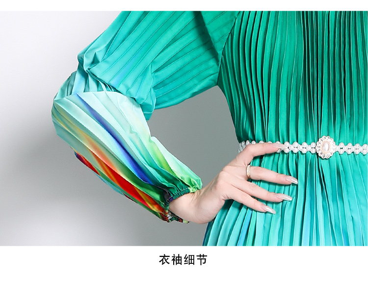 MY16260# 高端钉珠定位印花压褶珍珠扣百褶长裙女裝貨源服裝批發