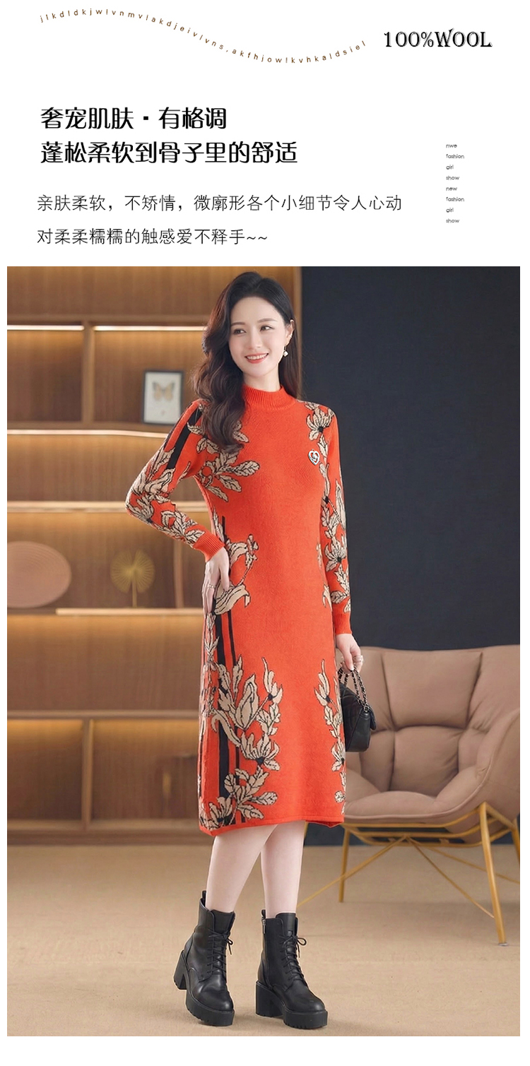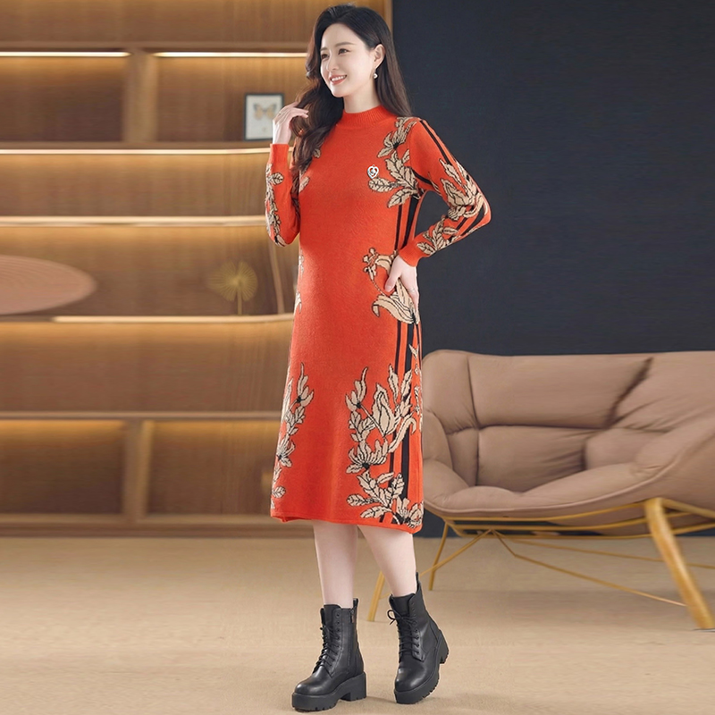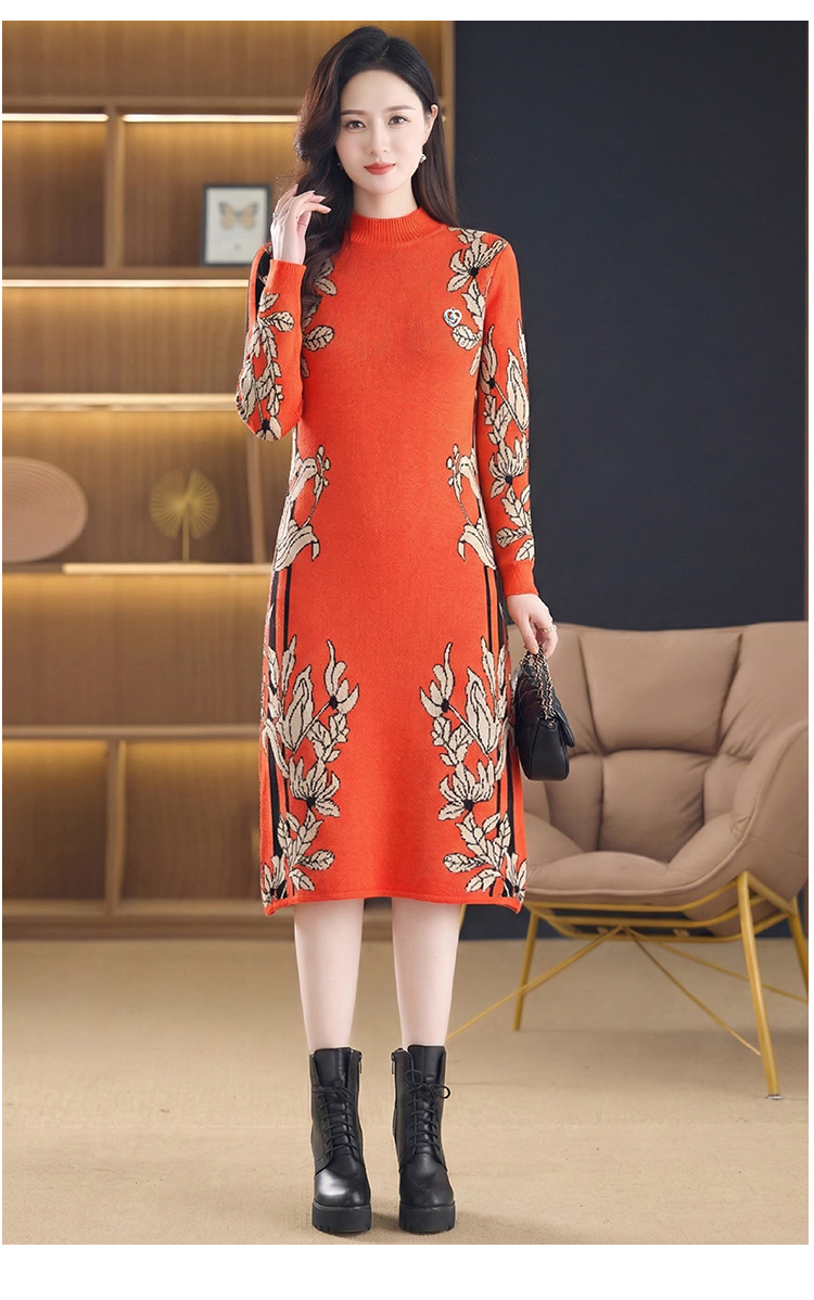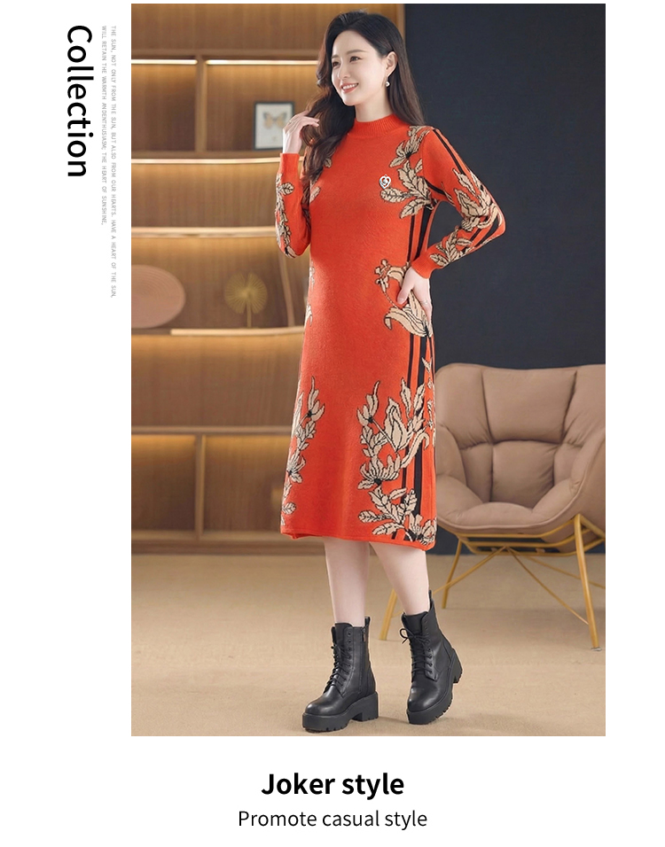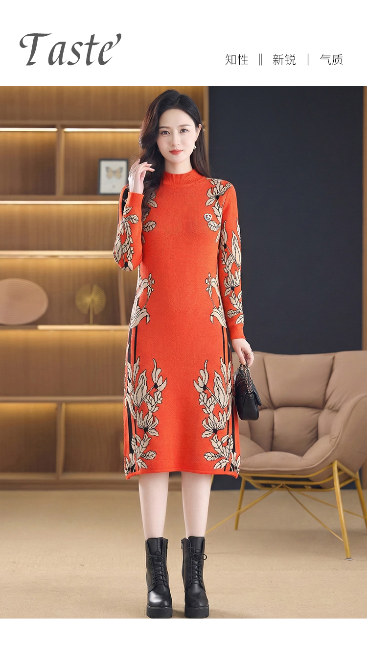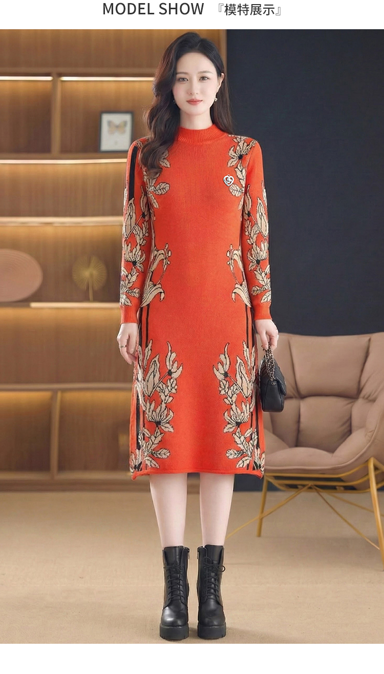 MY16277# 时尚洋气提花高端气质中长款针织宽松遮肚连衣裙女裝貨源服裝批發