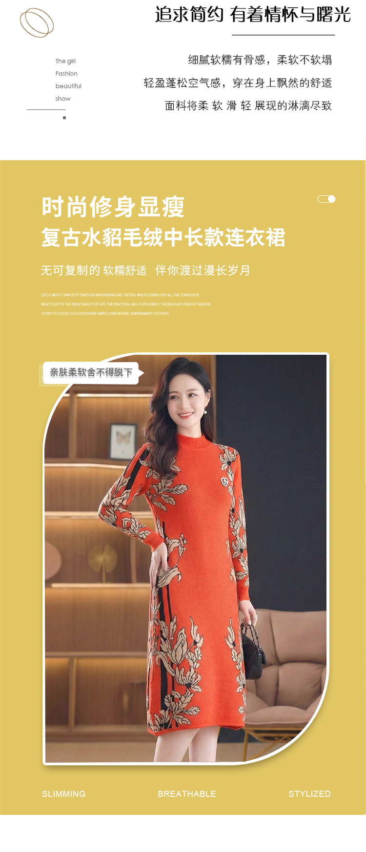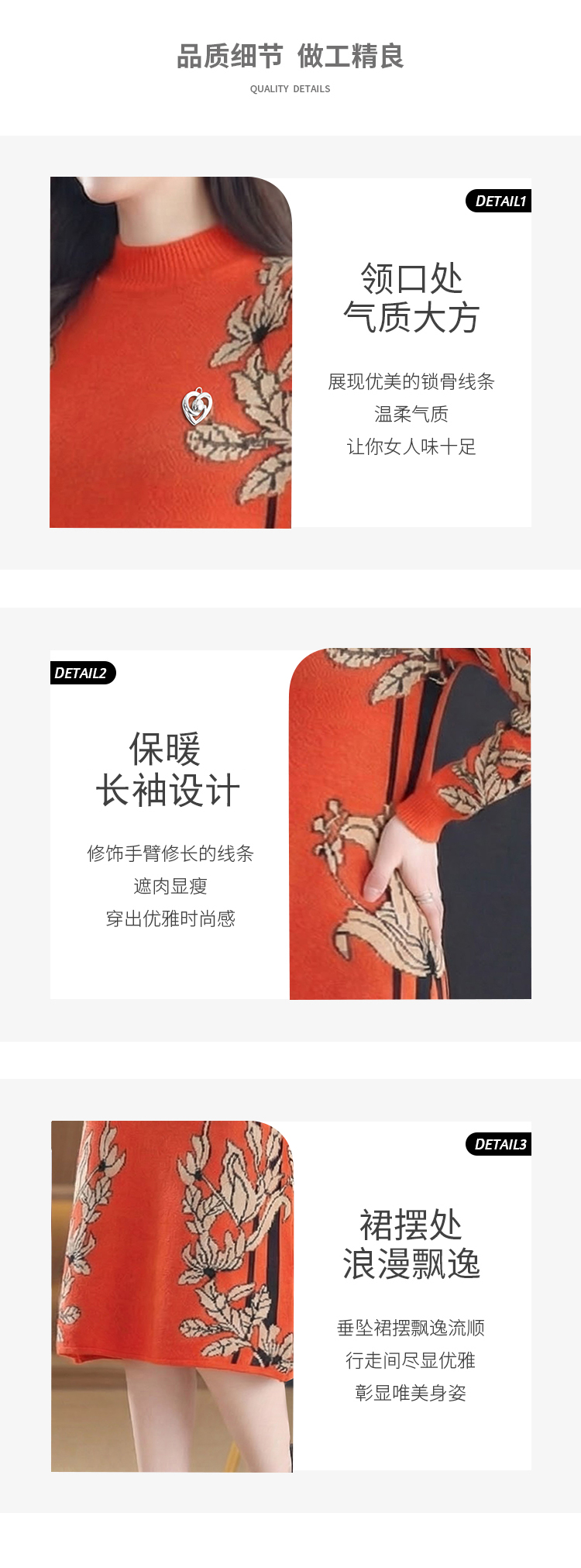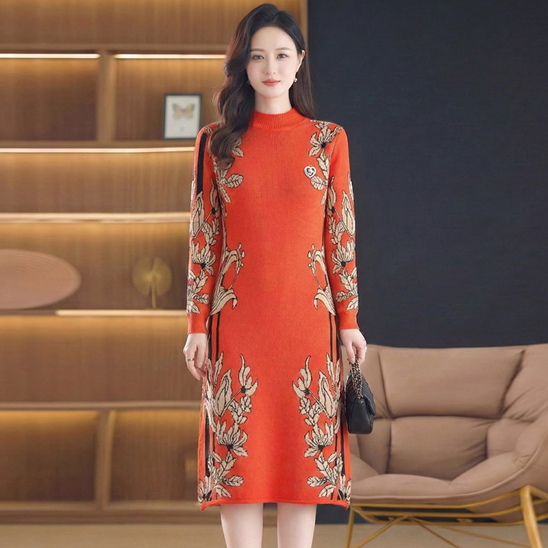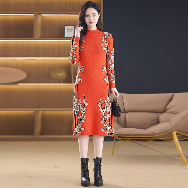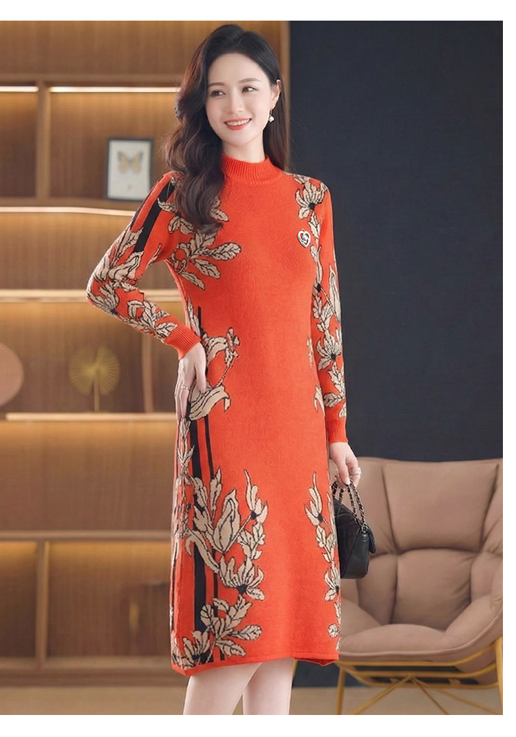 MY16277# 时尚洋气提花高端气质中长款针织宽松遮肚连衣裙女裝貨源服裝批發