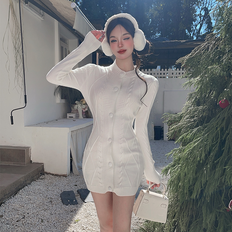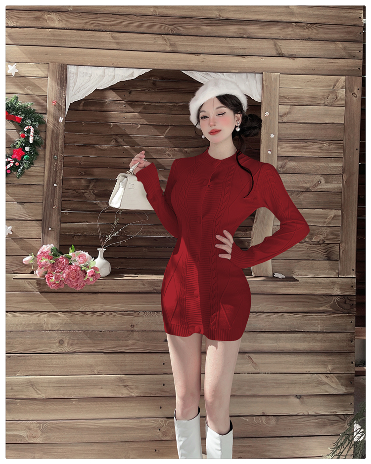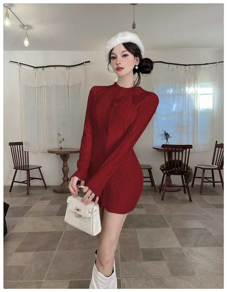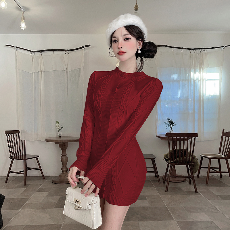 MY16284# 巨好看的红色针织毛衣连衣裙穿搭战袍包臀短裙女裝貨源服裝批發