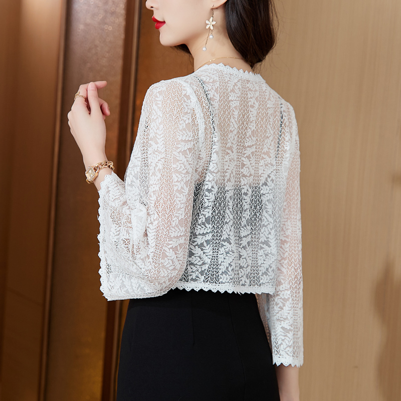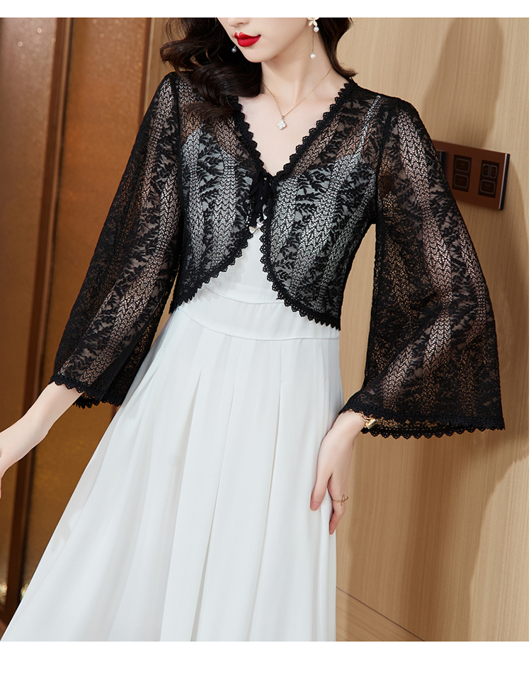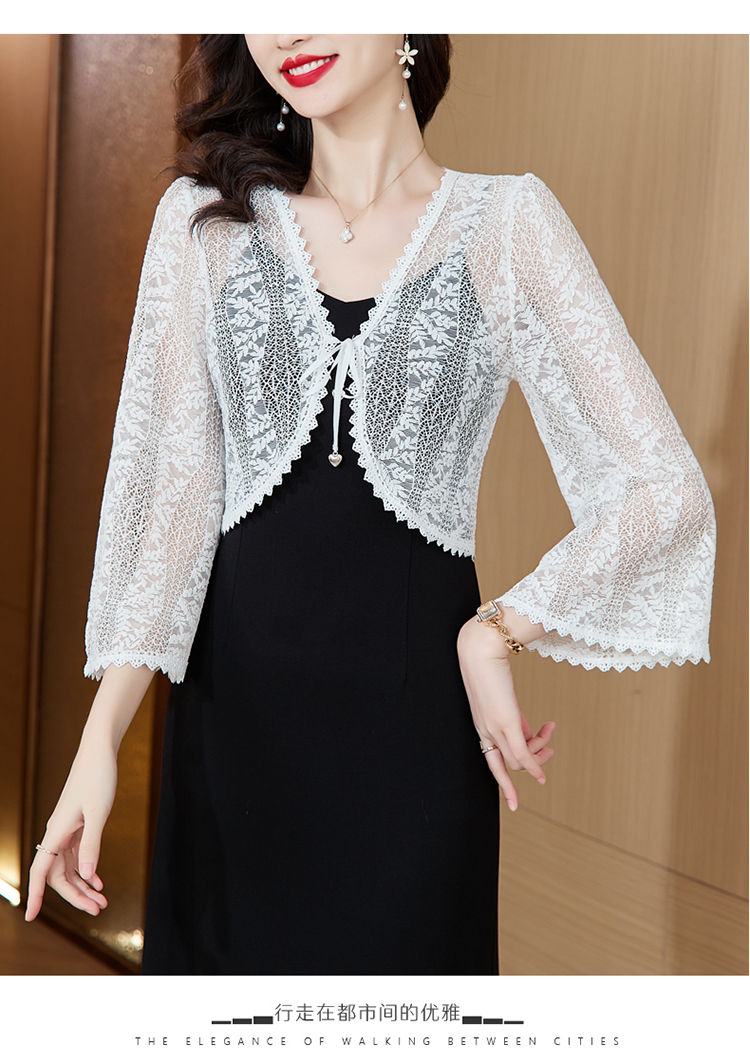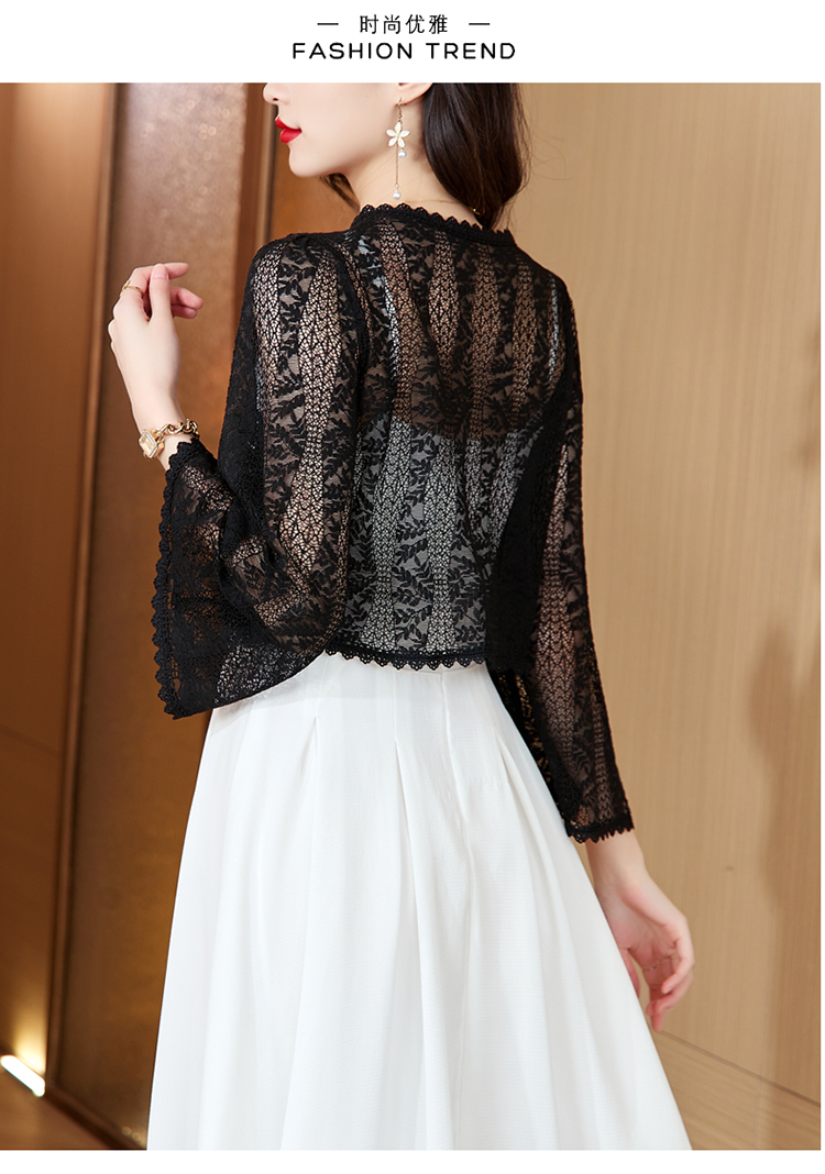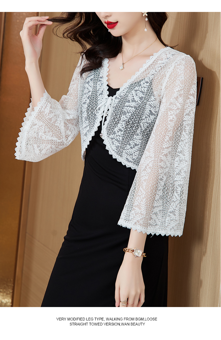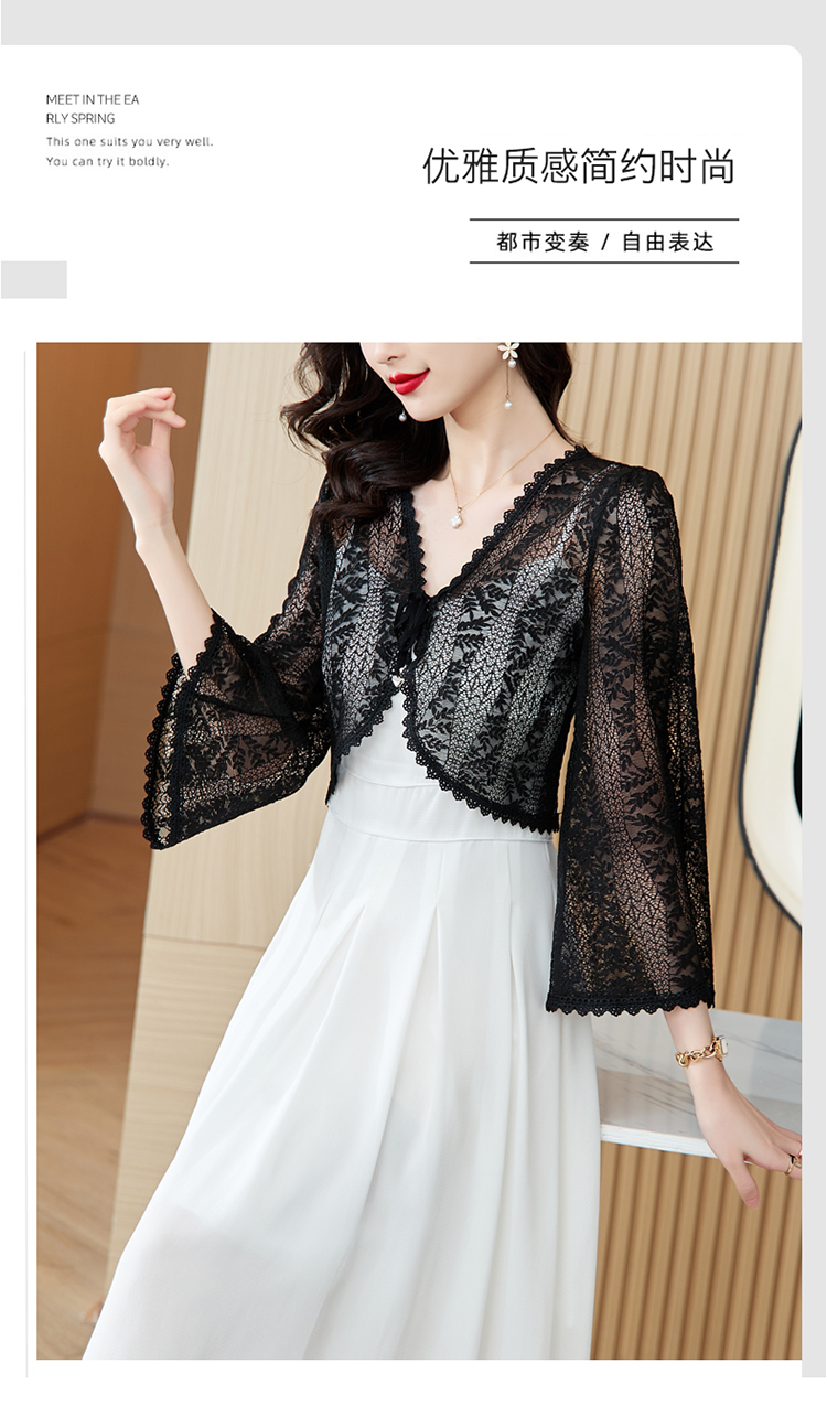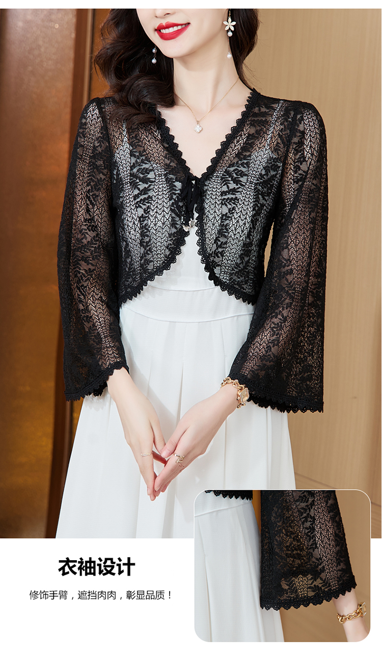 MY16484# 开衫防晒衣配喇叭袖蕾丝小开衫女裝貨源服裝批發
