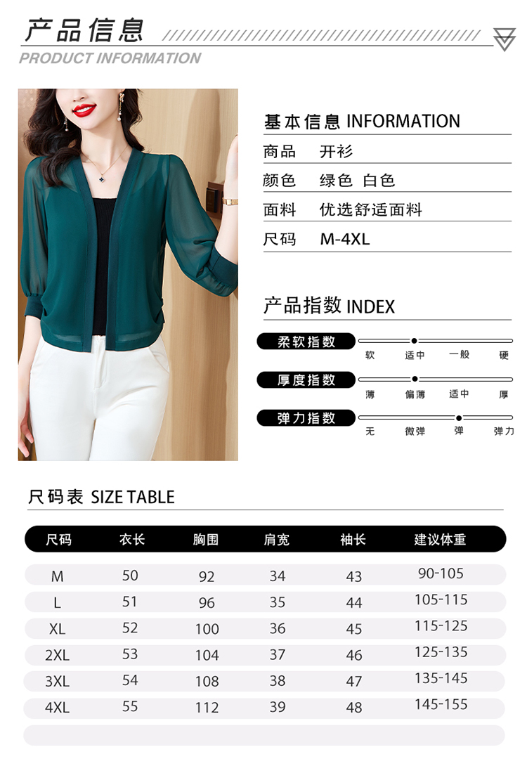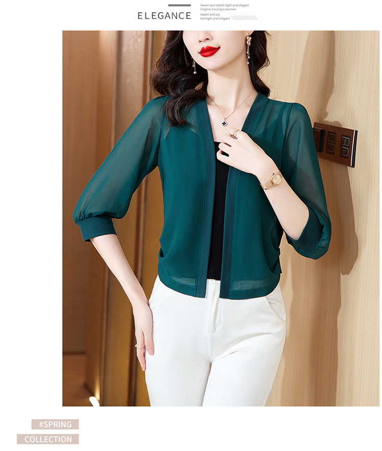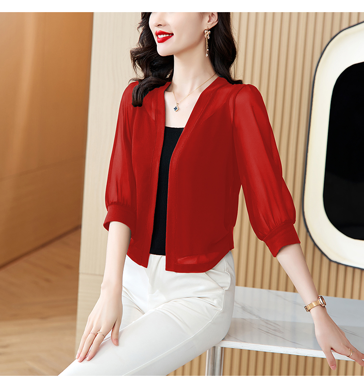 MY16485# 开衫雪纺衫中袖小外套防晒衣空调室小外搭女裝貨源服裝批發