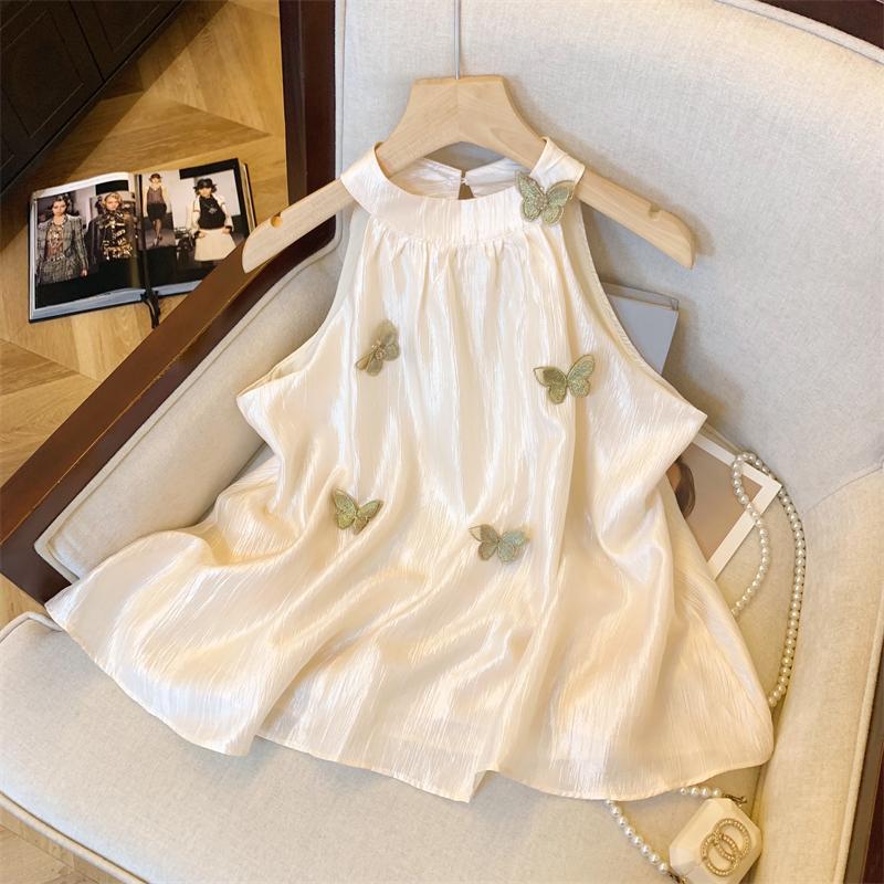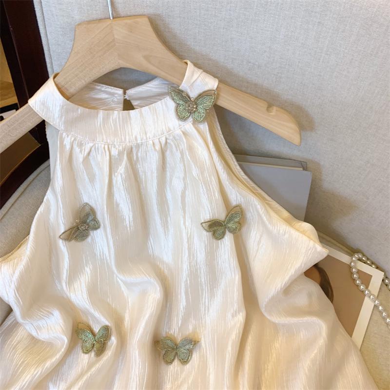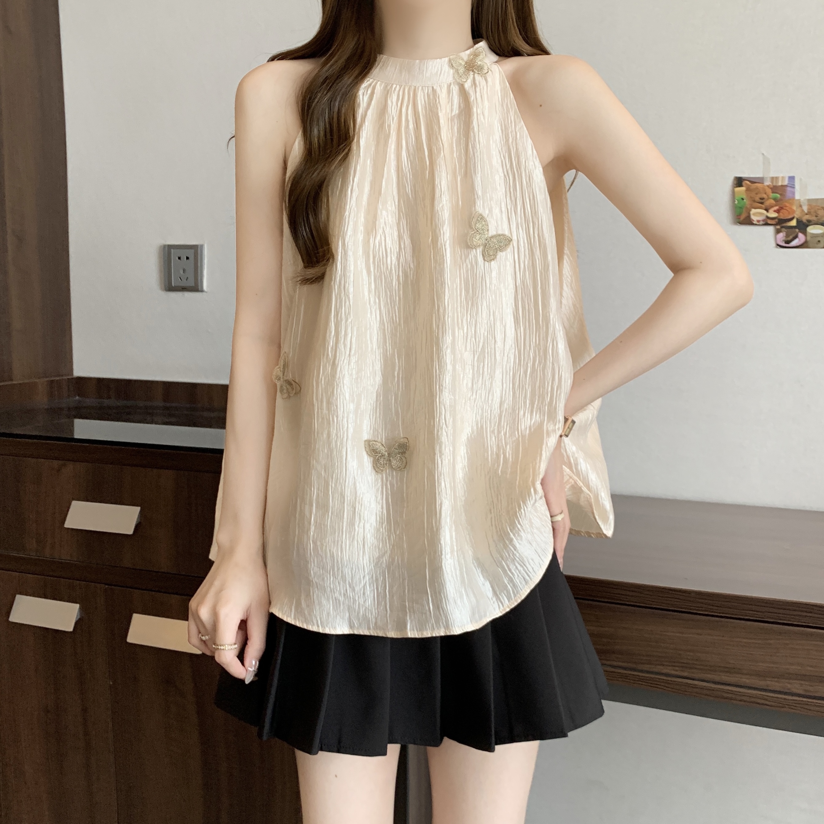 MY16500# 原版布料大码胖mm韩系复古立体蝴蝶挂脖吊带新款露肩小上衣女裝貨源服裝批發