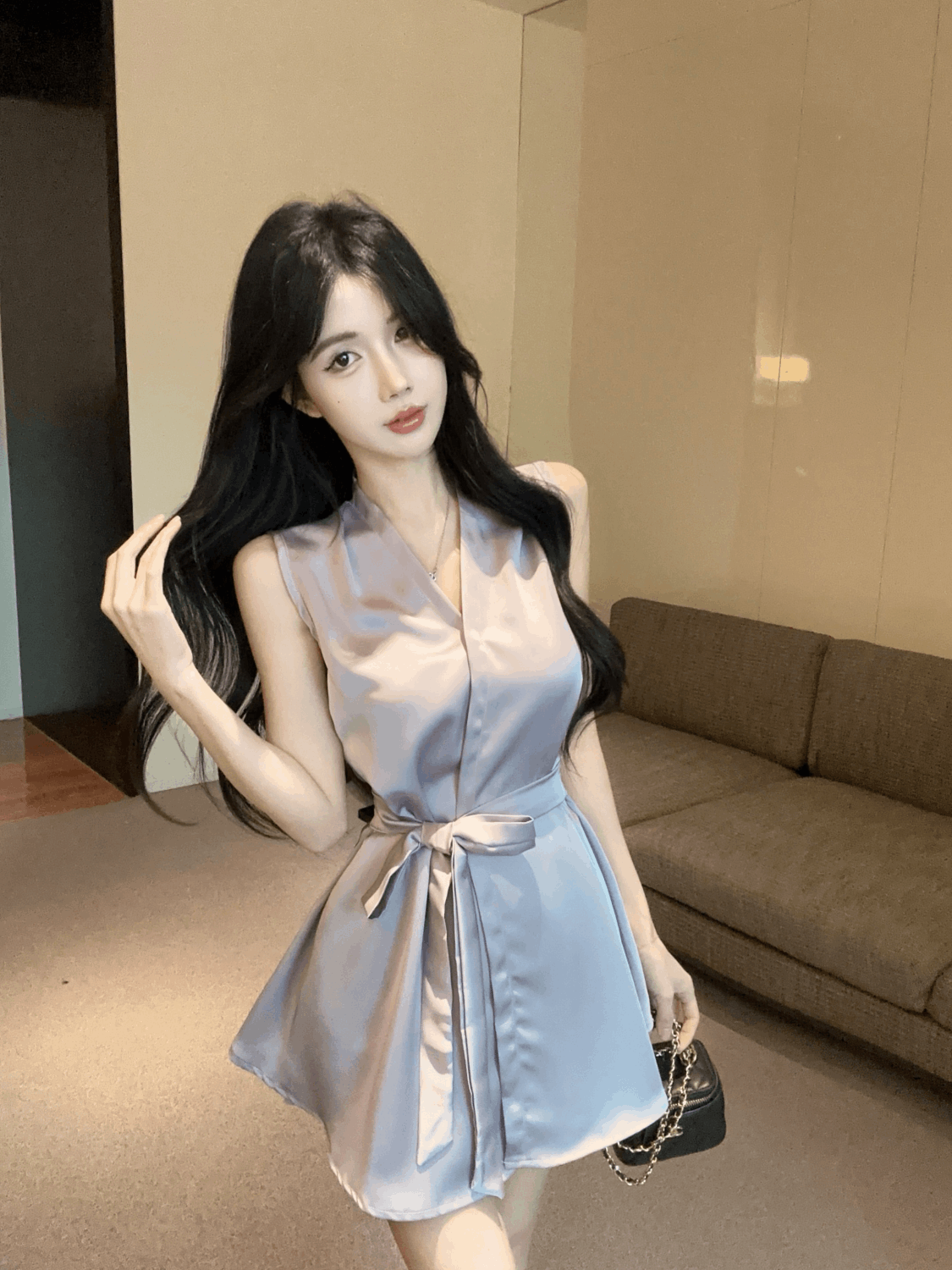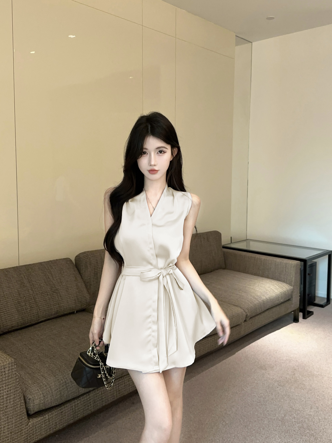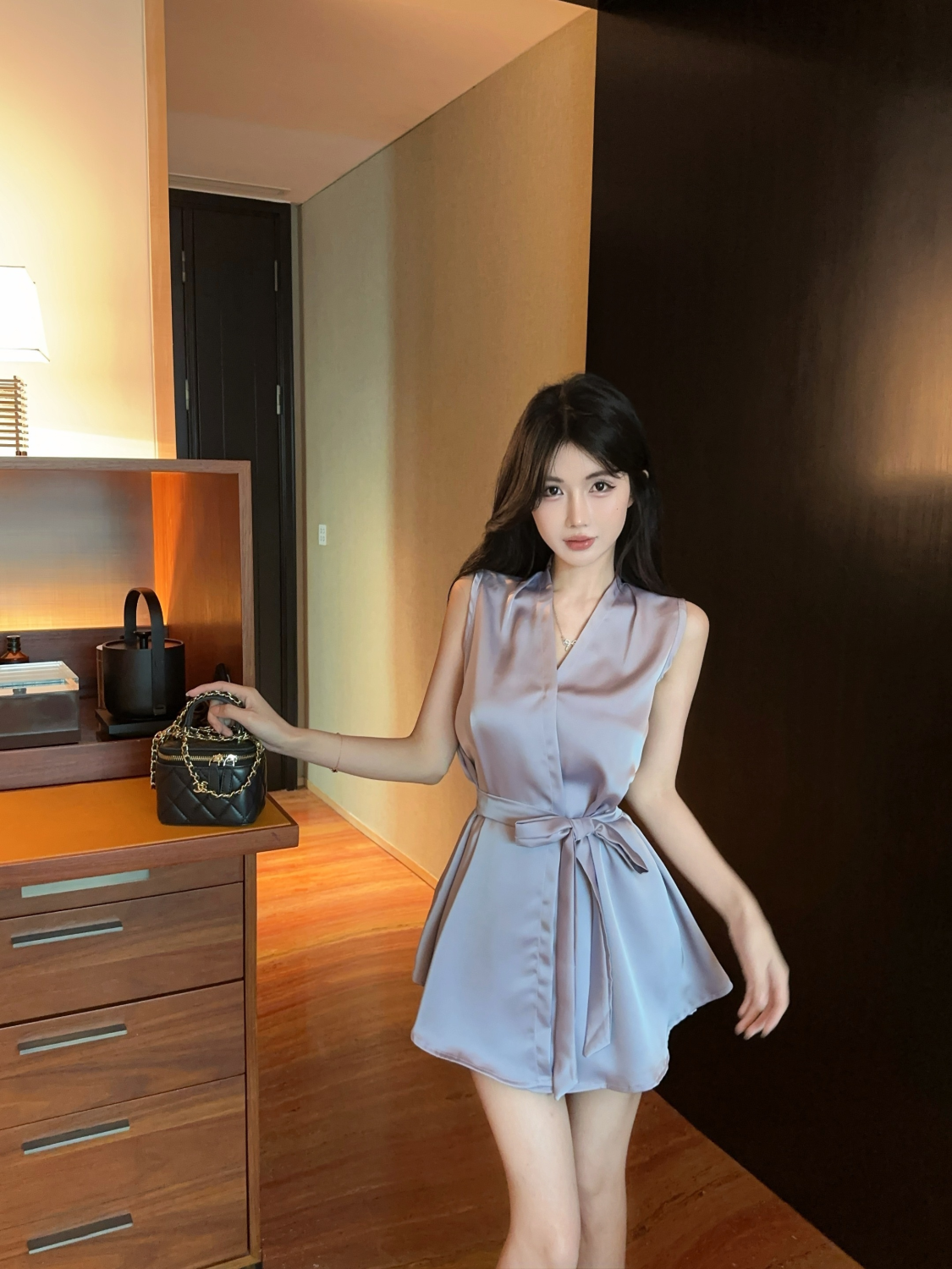 MY16521# 法式气质高级感无袖系带上衣高腰短裤新款收腰显瘦套装女女裝貨源服裝批發