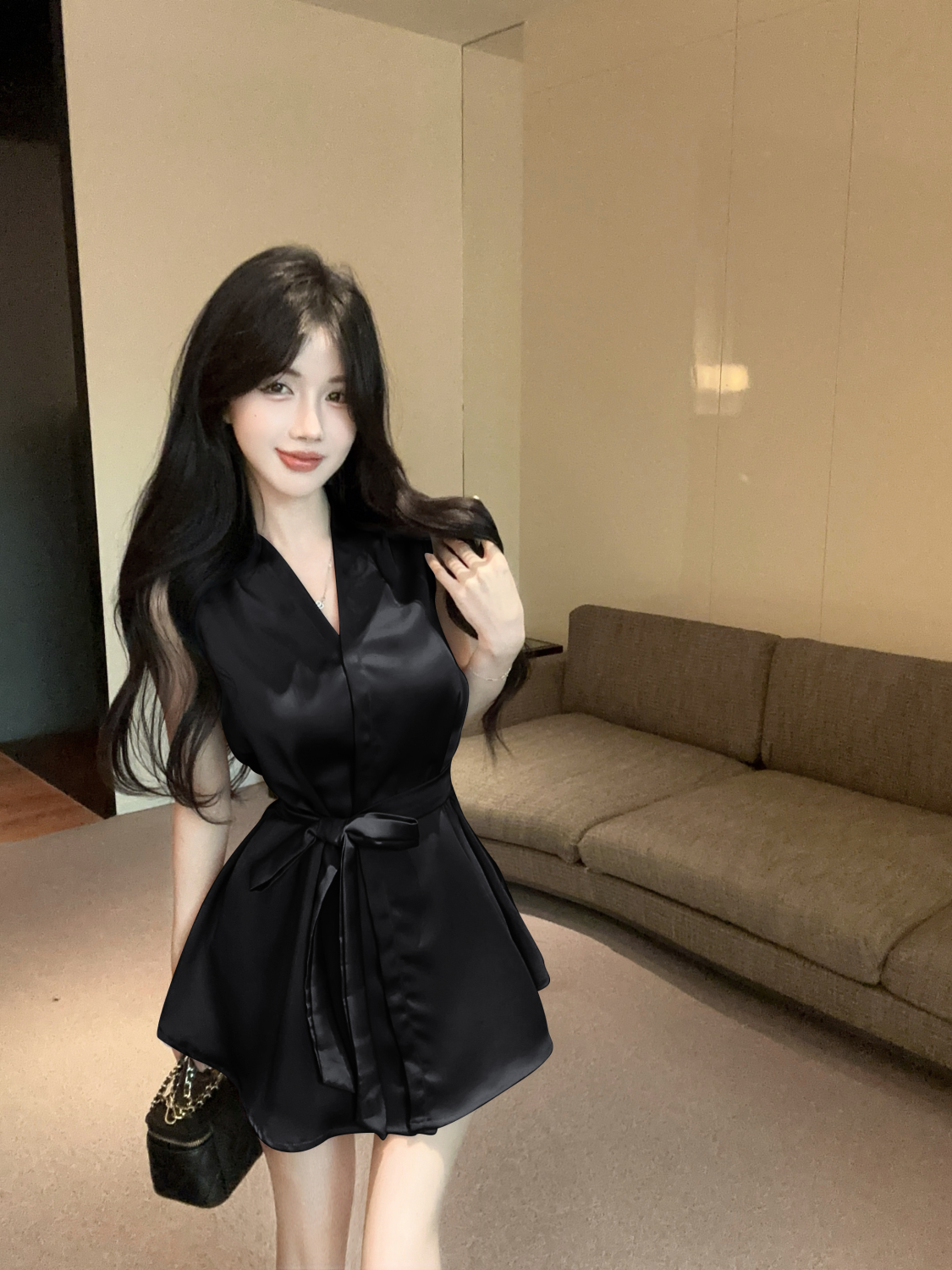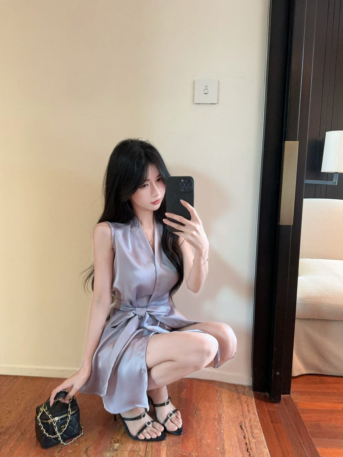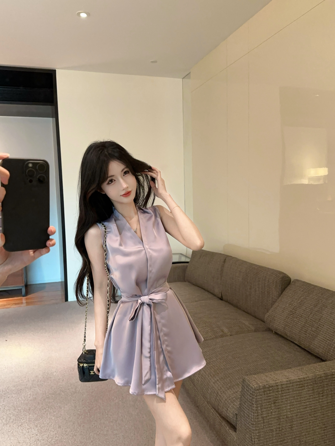 MY16521# 法式气质高级感无袖系带上衣高腰短裤新款收腰显瘦套装女女裝貨源服裝批發