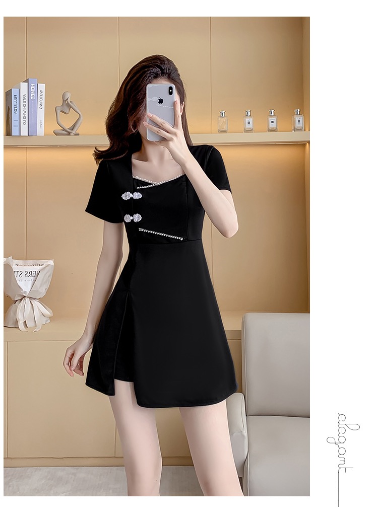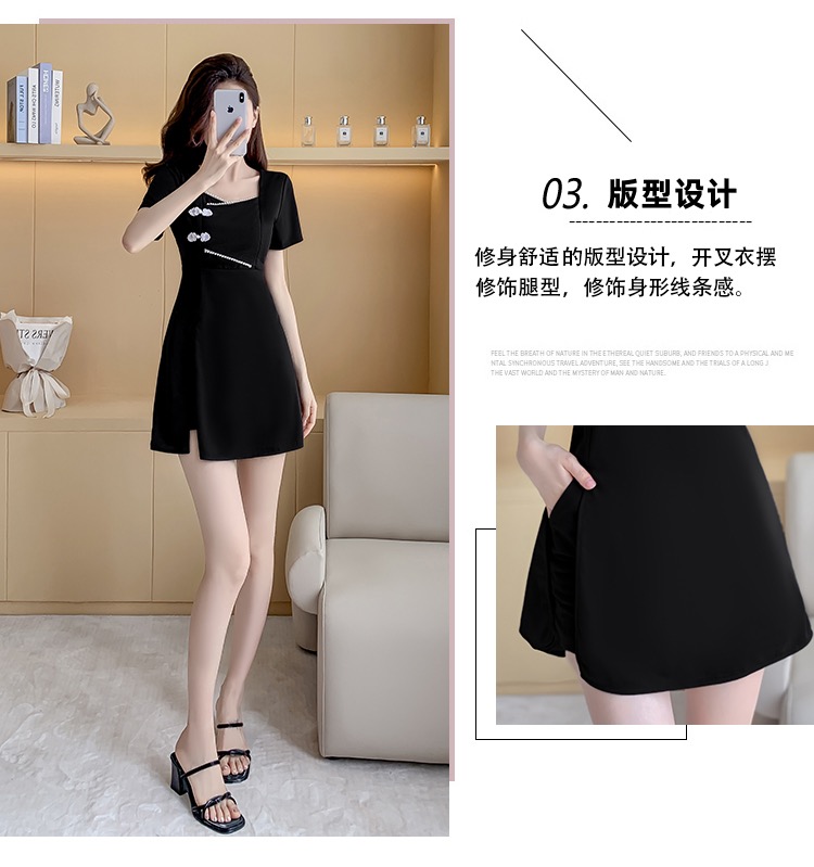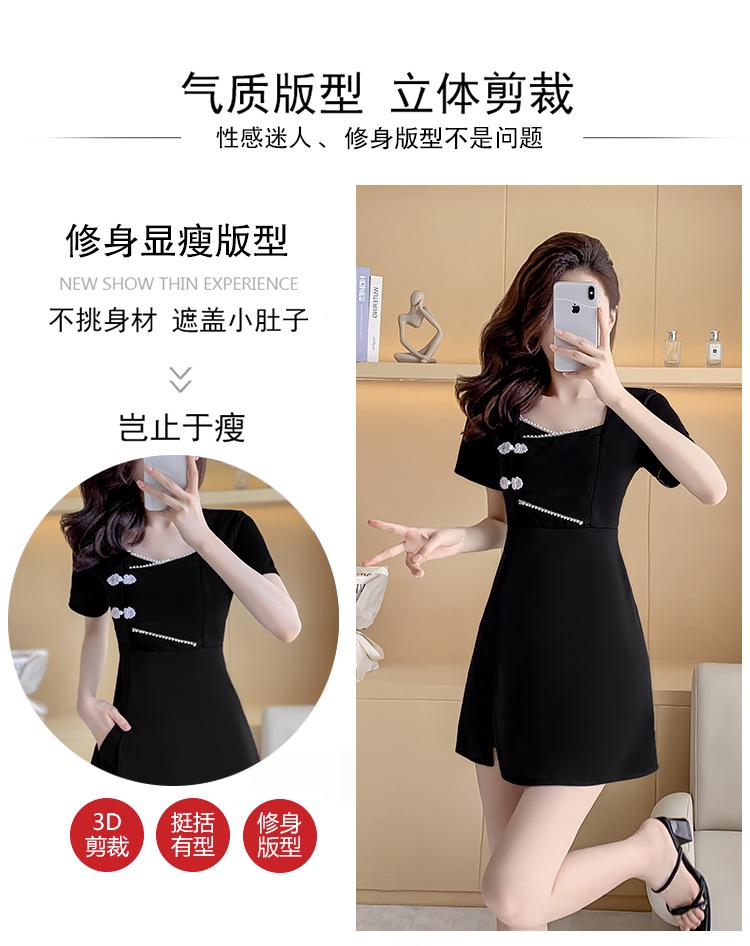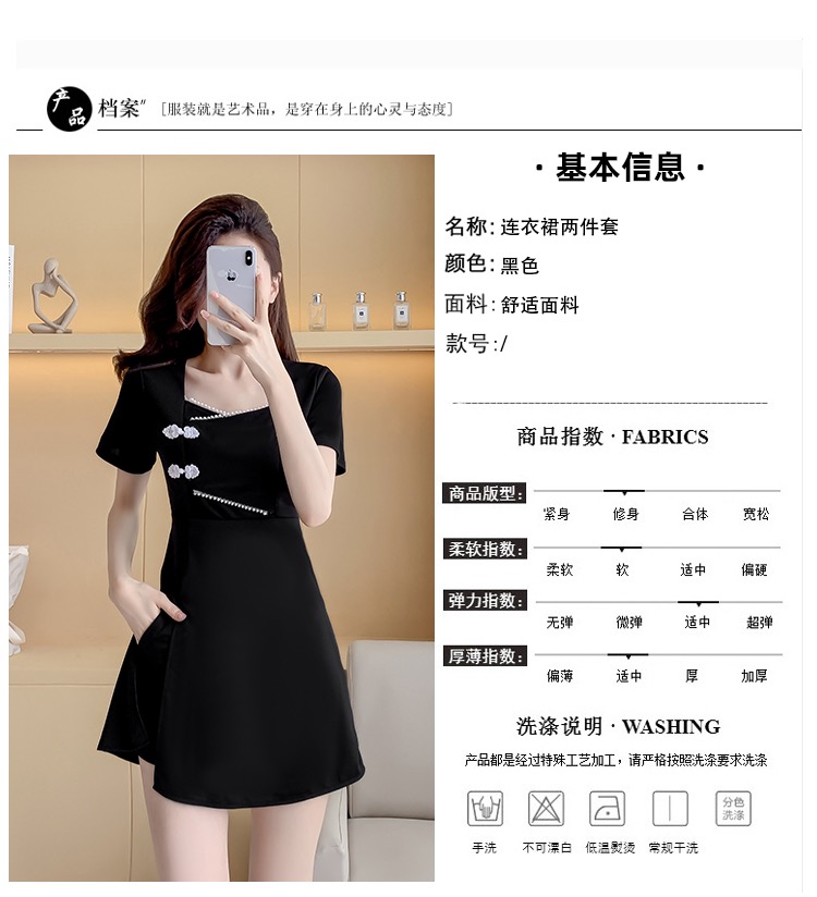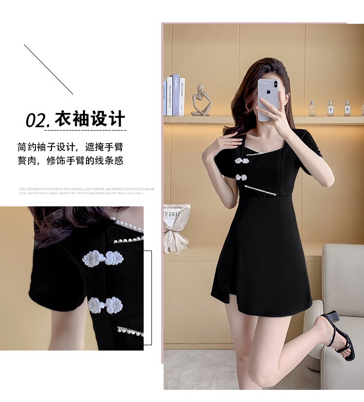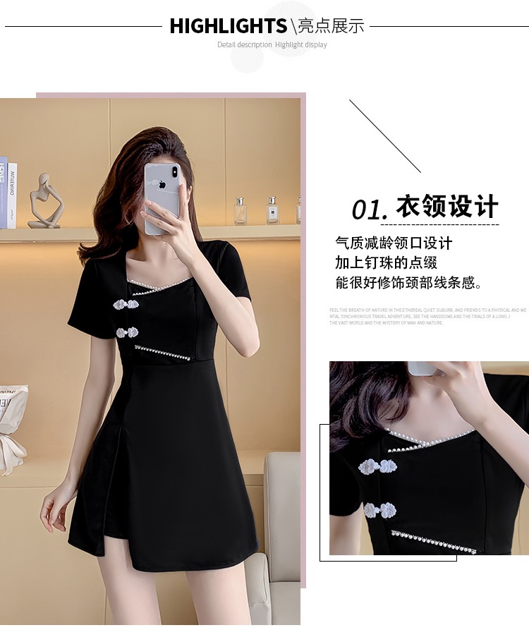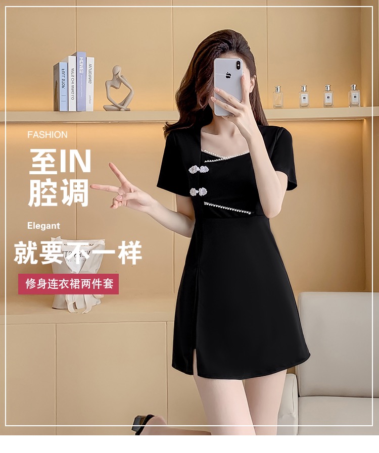 MY16531# 新款方领时尚改良新中式旗袍连衣裙短裤两件套女裝貨源服裝批發