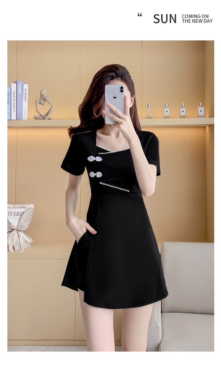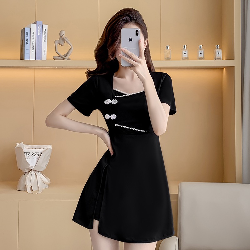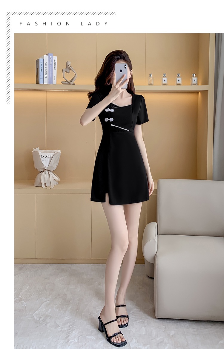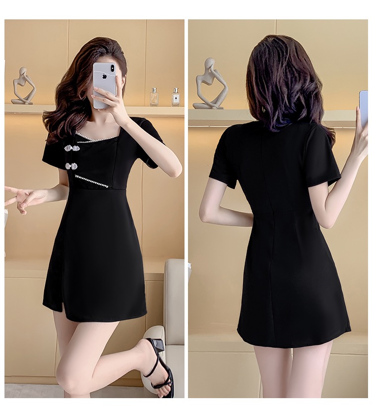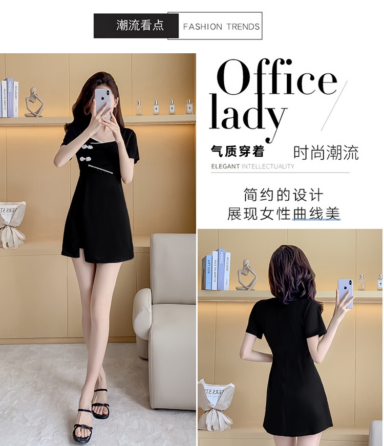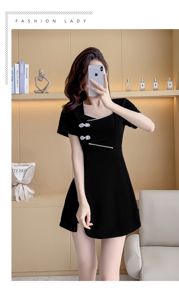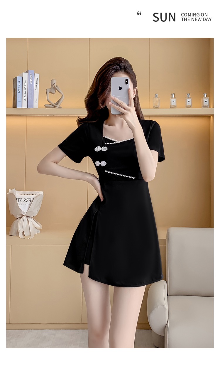 MY16531# 新款方领时尚改良新中式旗袍连衣裙短裤两件套女裝貨源服裝批發
