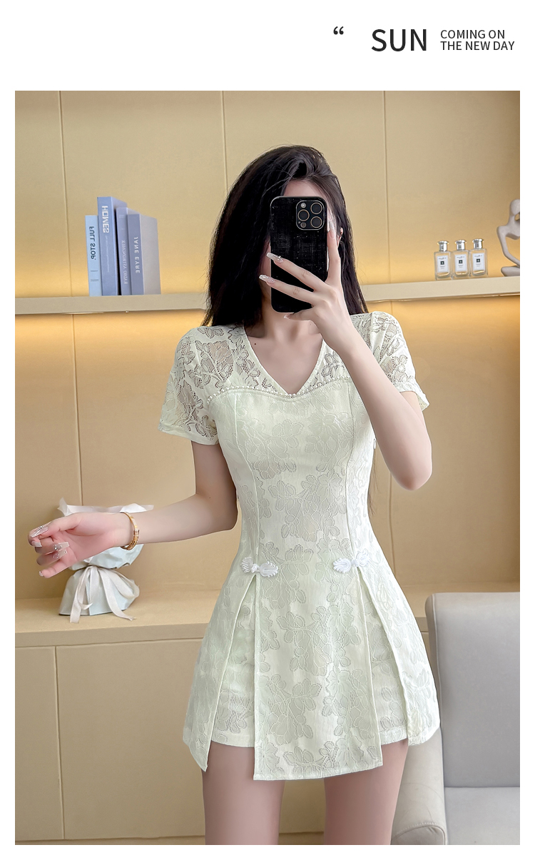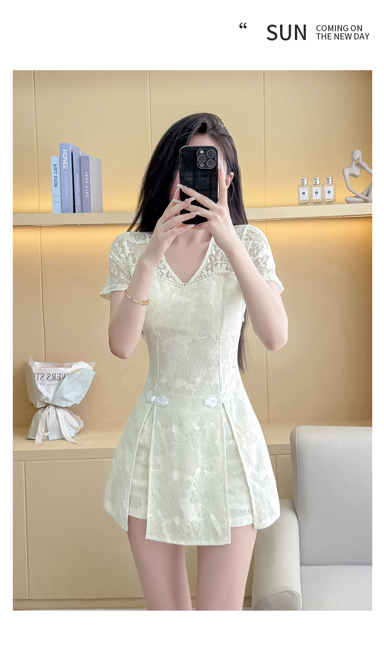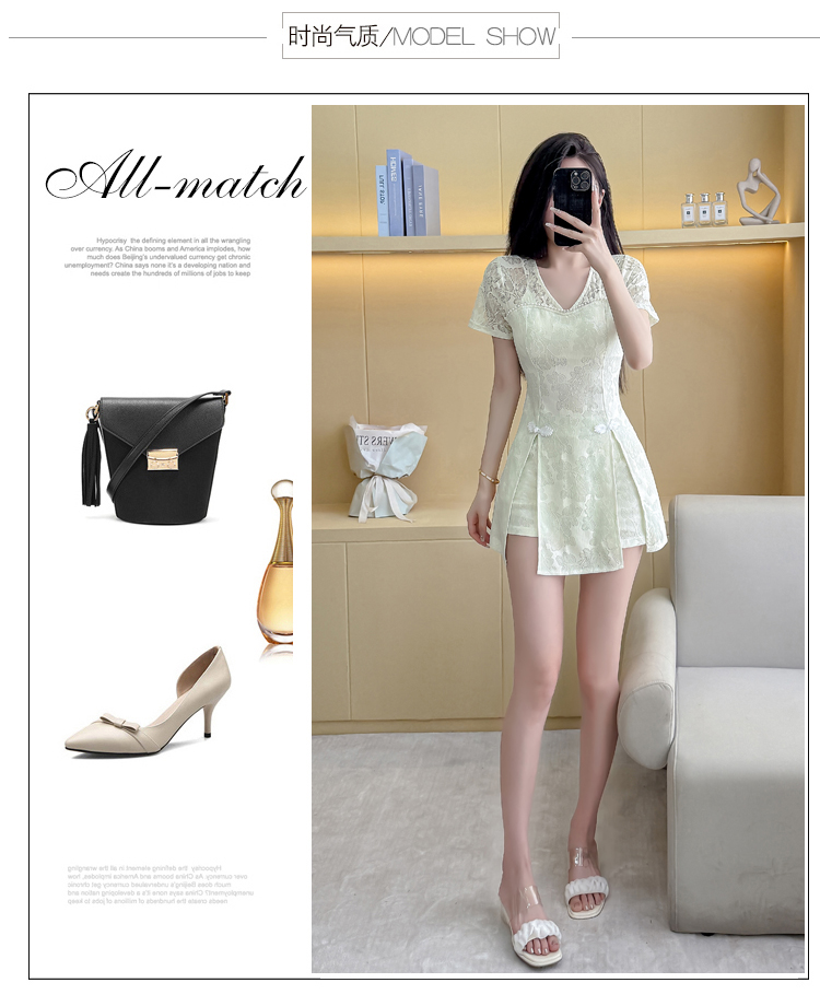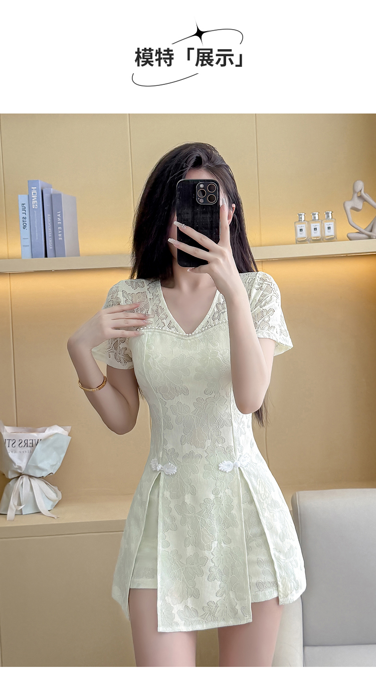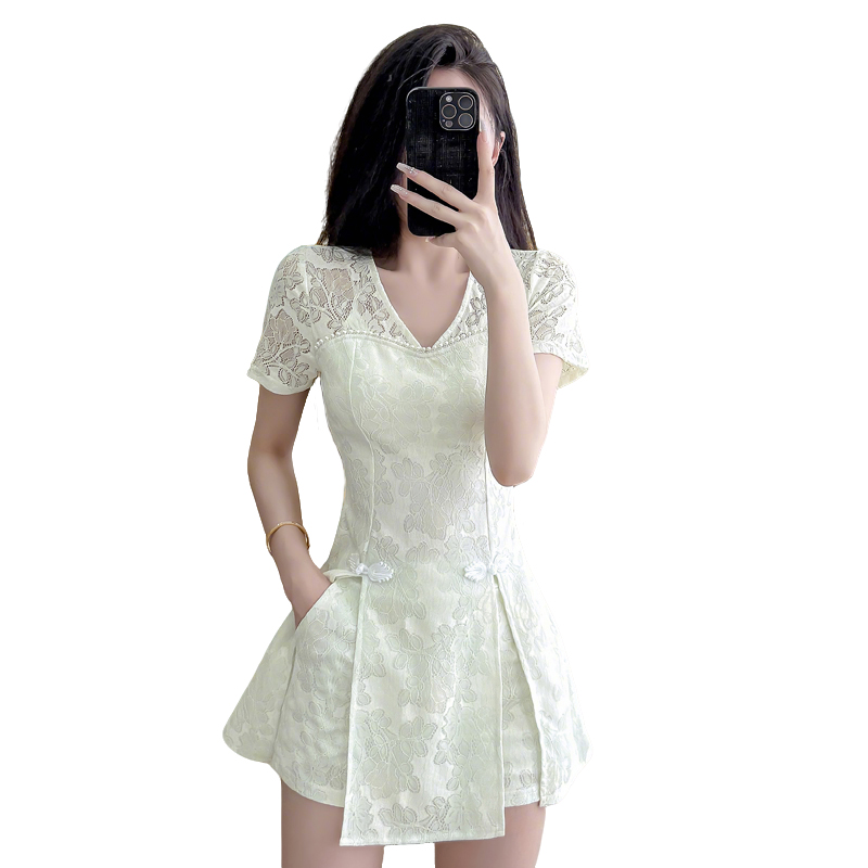 MY16538# 新款少女国风高级感蕾丝连衣裙旗袍修身包臀连衣裙套装女裝貨源服裝批發