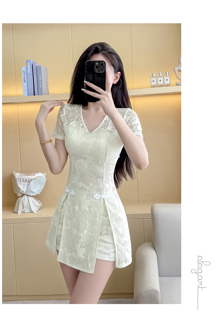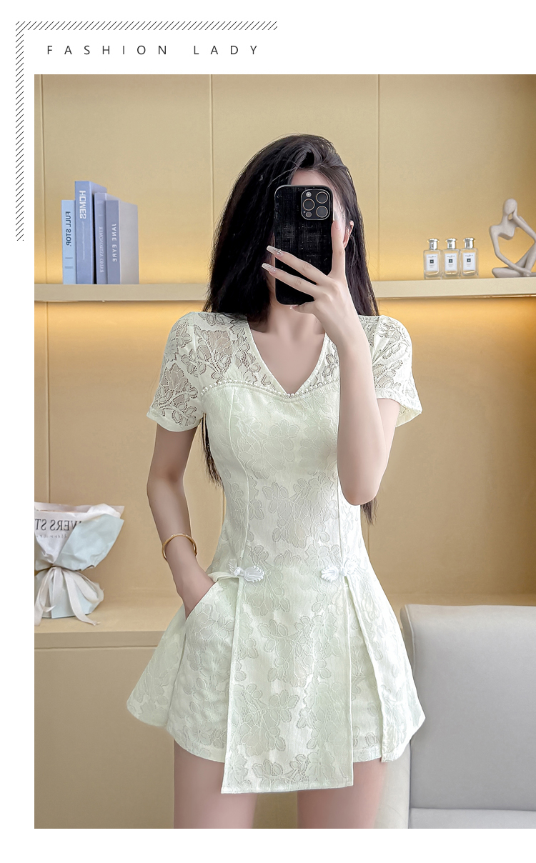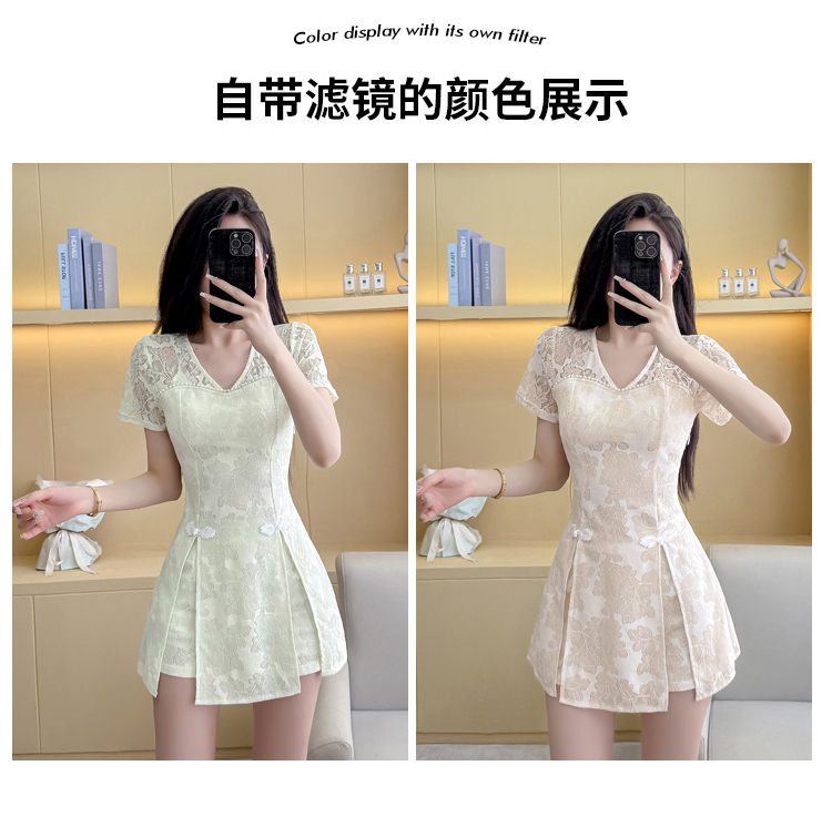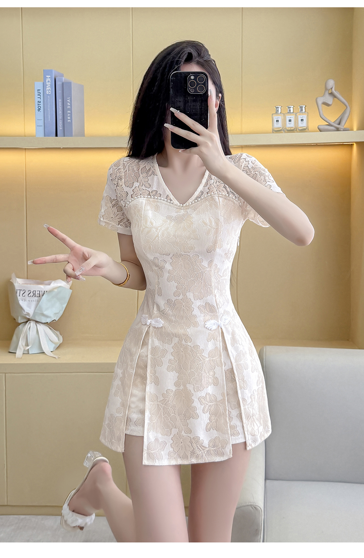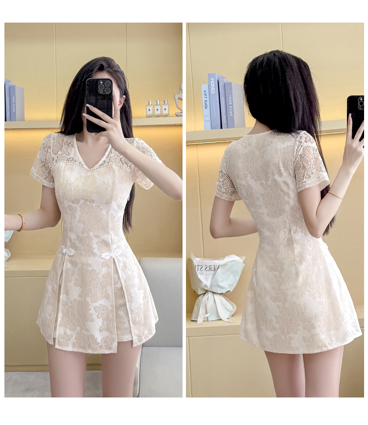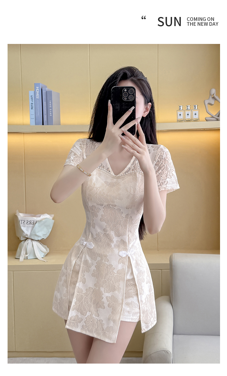 MY16538# 新款少女国风高级感蕾丝连衣裙旗袍修身包臀连衣裙套装女裝貨源服裝批發