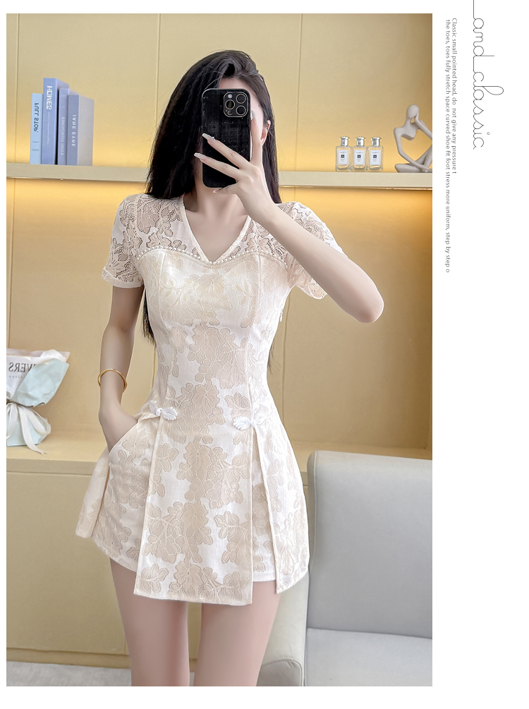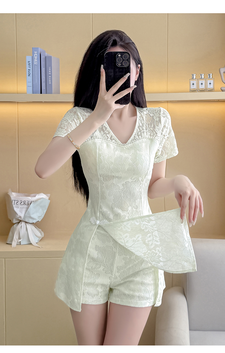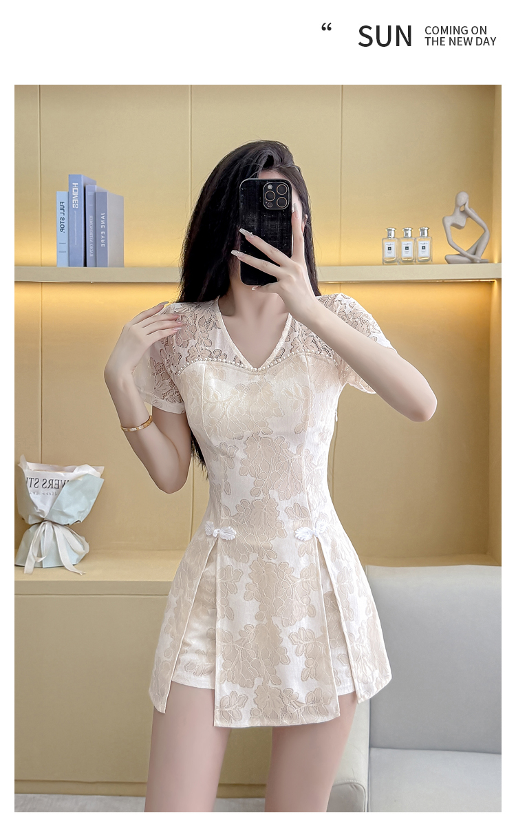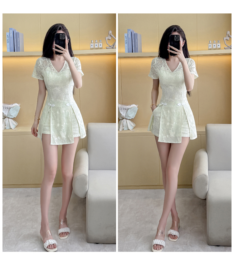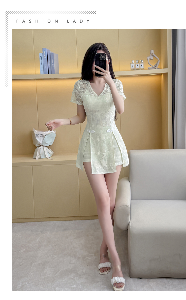 MY16538# 新款少女国风高级感蕾丝连衣裙旗袍修身包臀连衣裙套装女裝貨源服裝批發