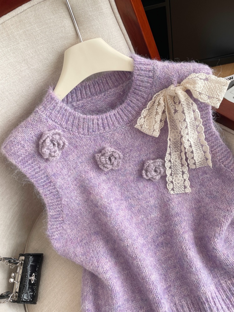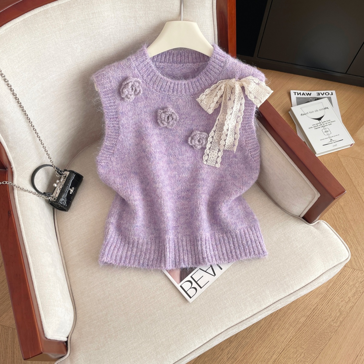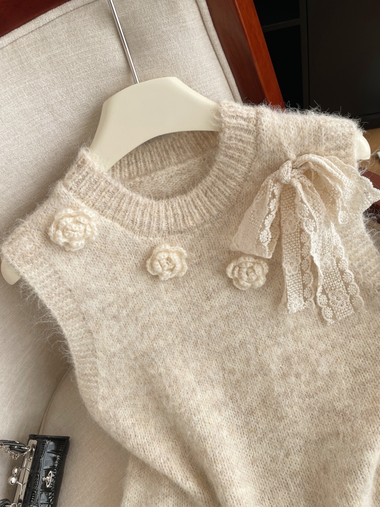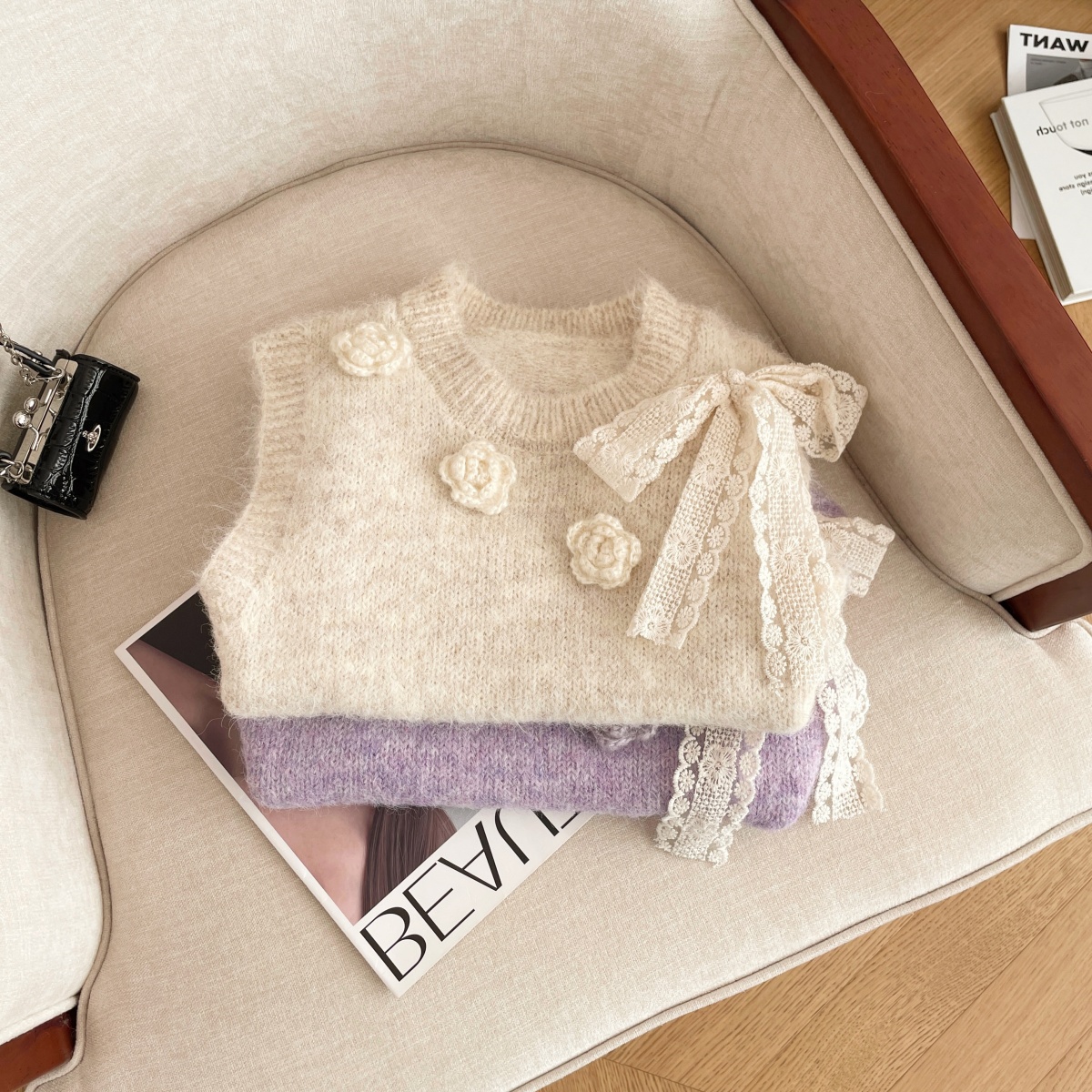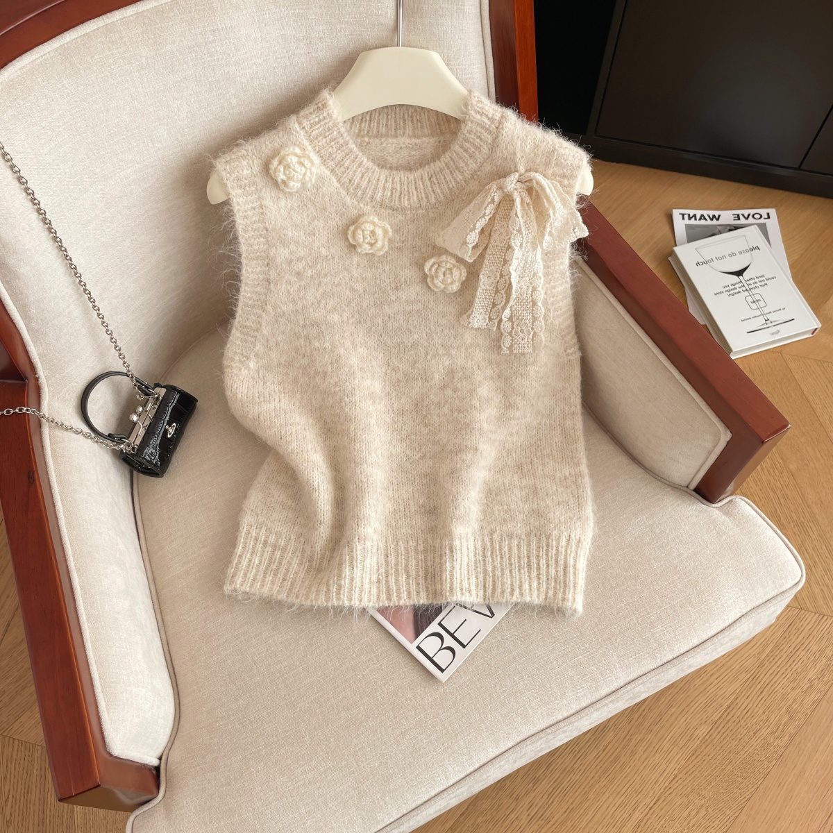 MY16543# 高级感钩花飘带无袖马甲女洋气显瘦叠穿气质蕾丝背心女裝貨源...