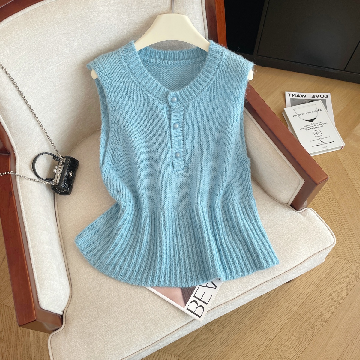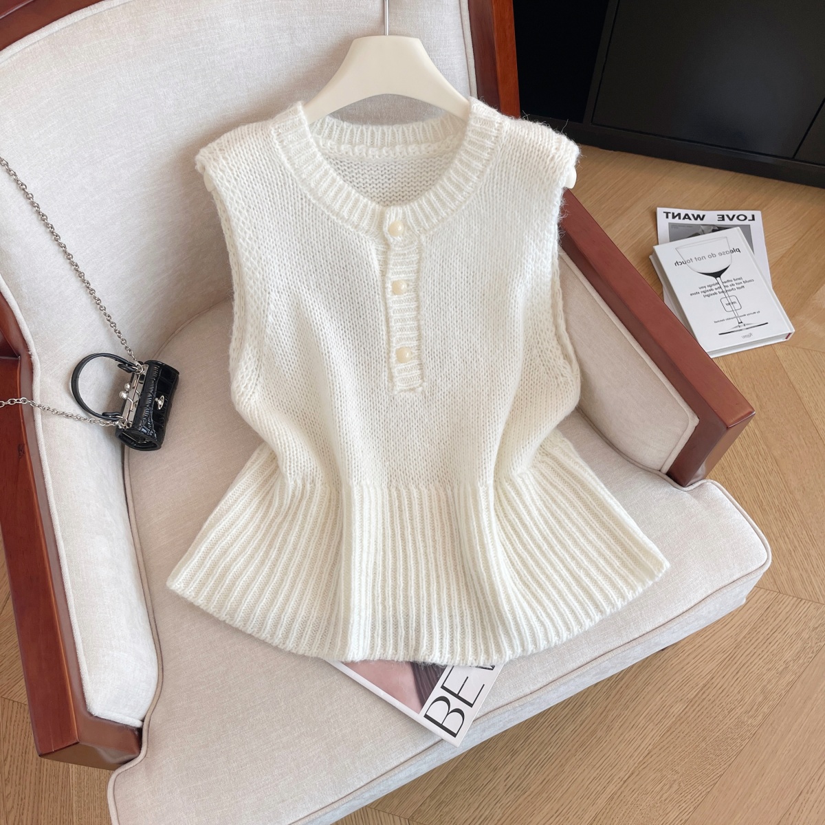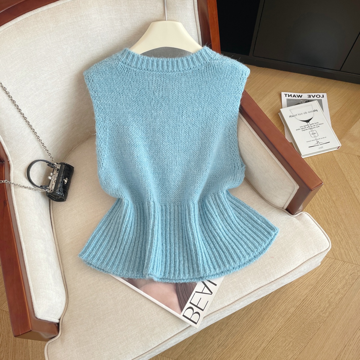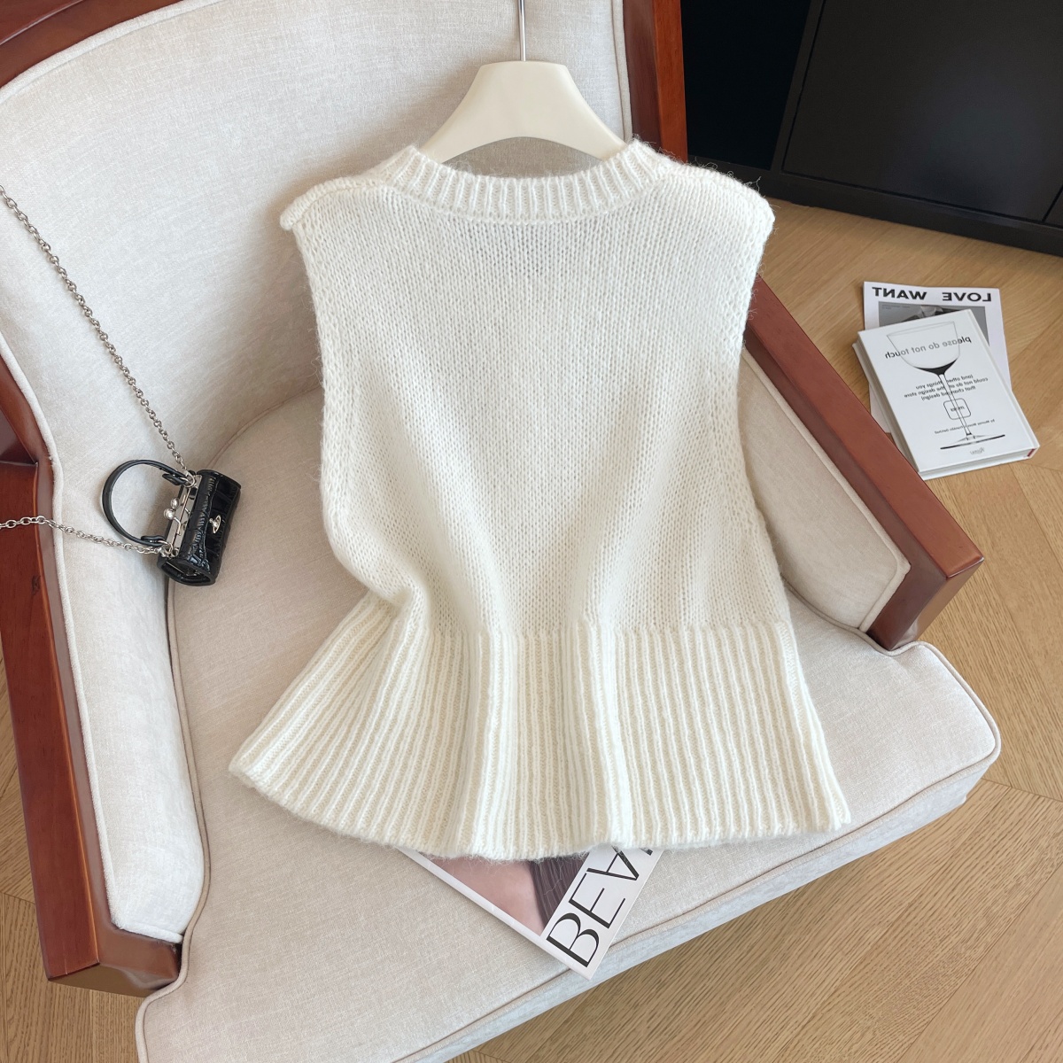 MY16542# 新款优雅显瘦叠穿马甲女设计感半开领洋气裙摆无袖上衣女裝貨源服裝批發