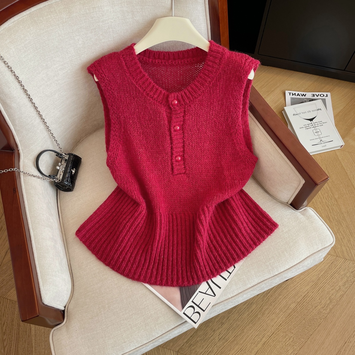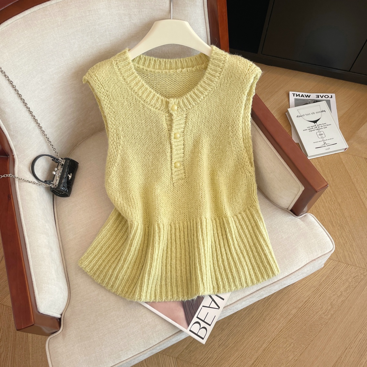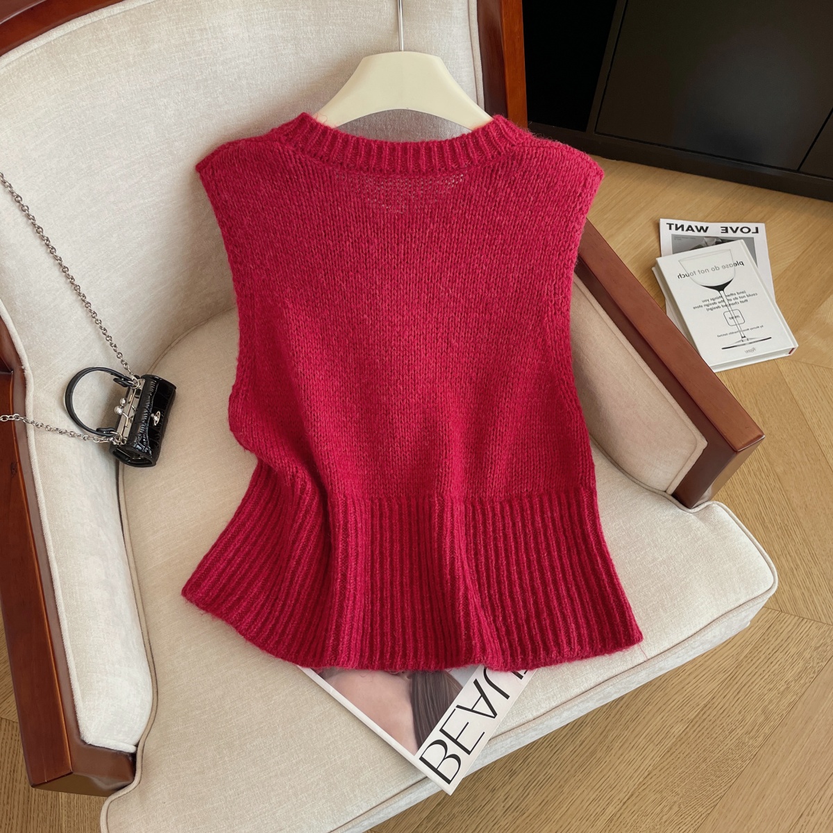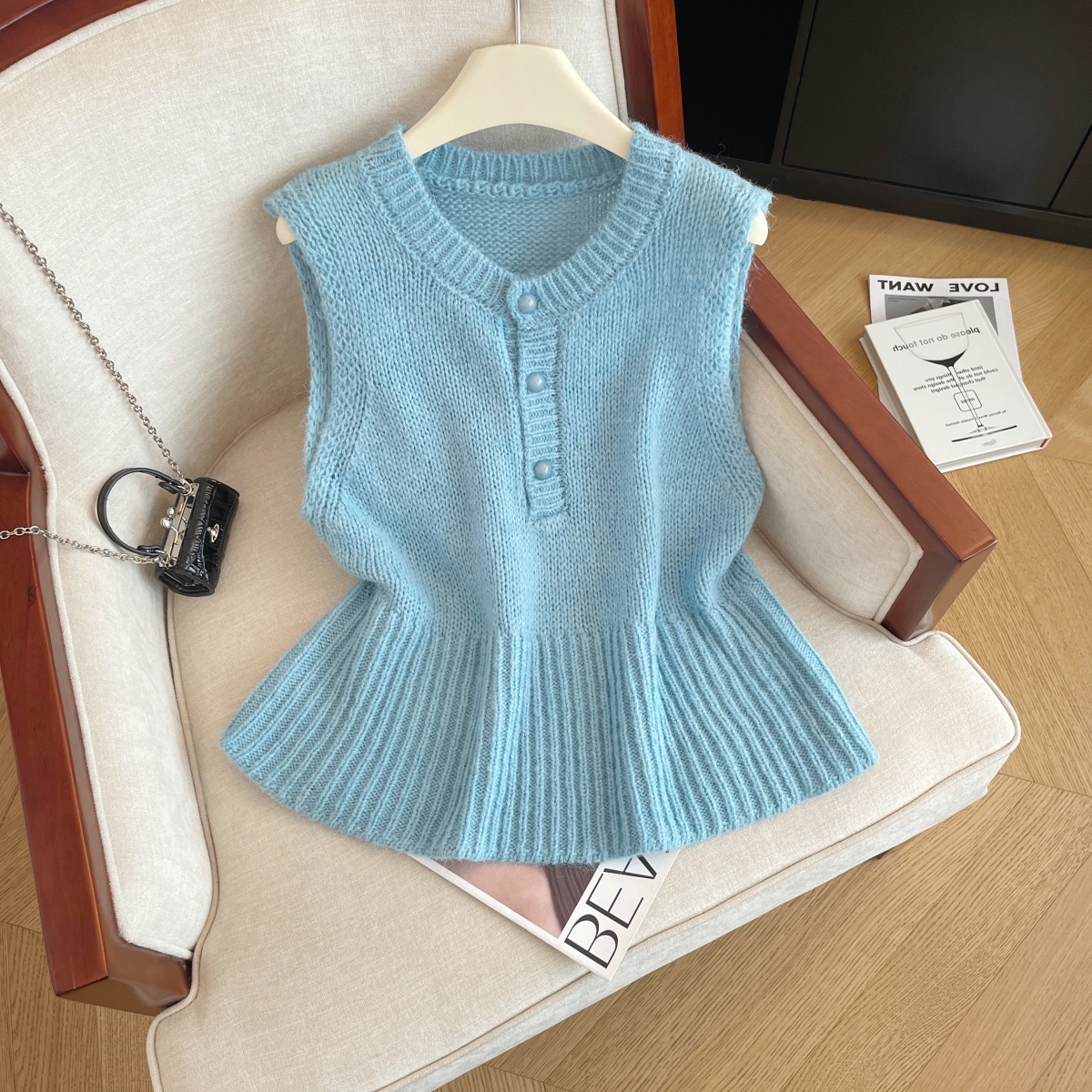 MY16542# 新款优雅显瘦叠穿马甲女设计感半开领洋气裙摆无袖上衣女裝貨源服裝批發