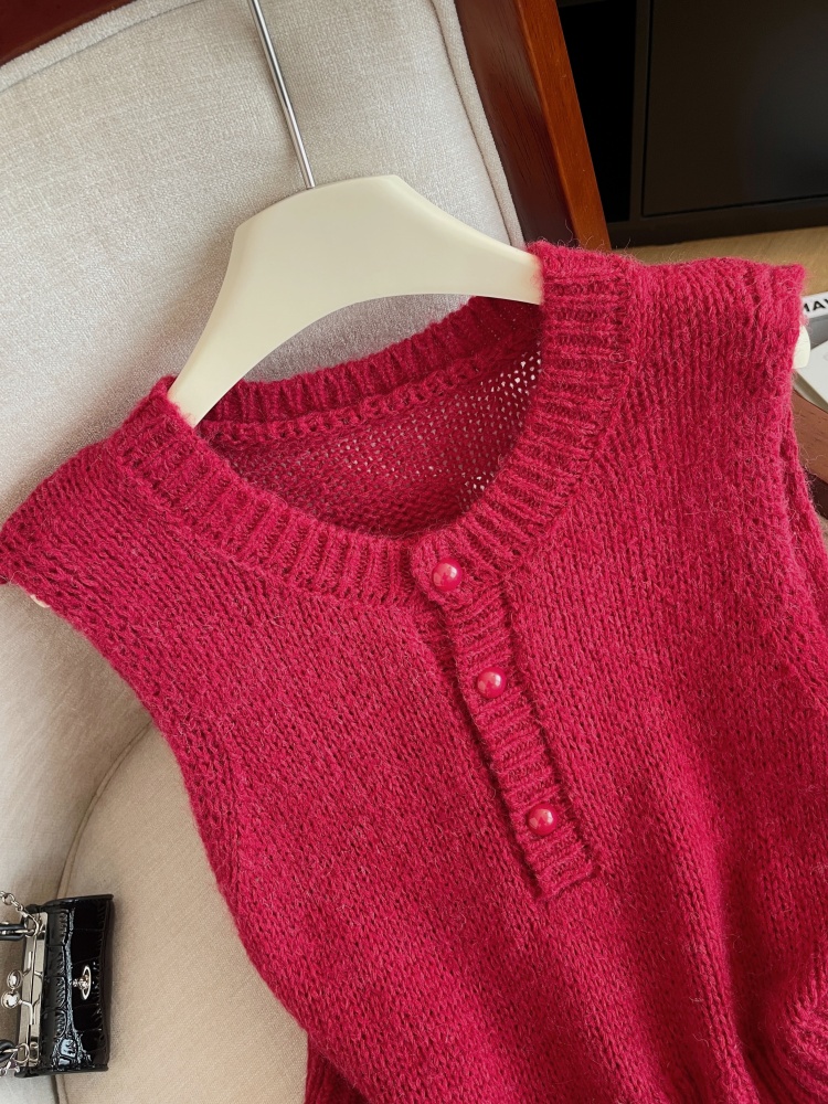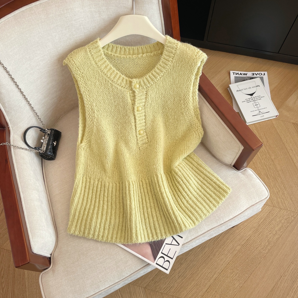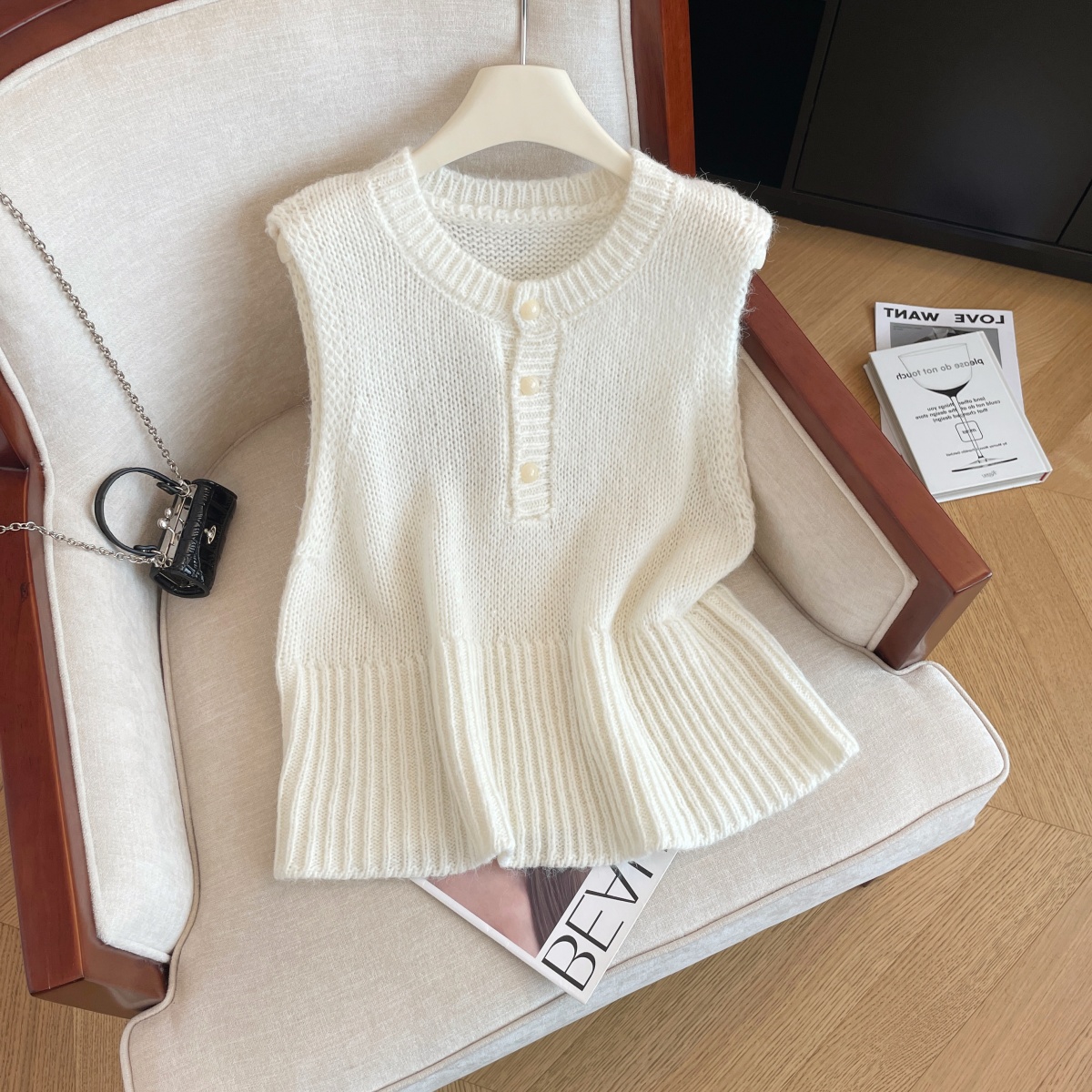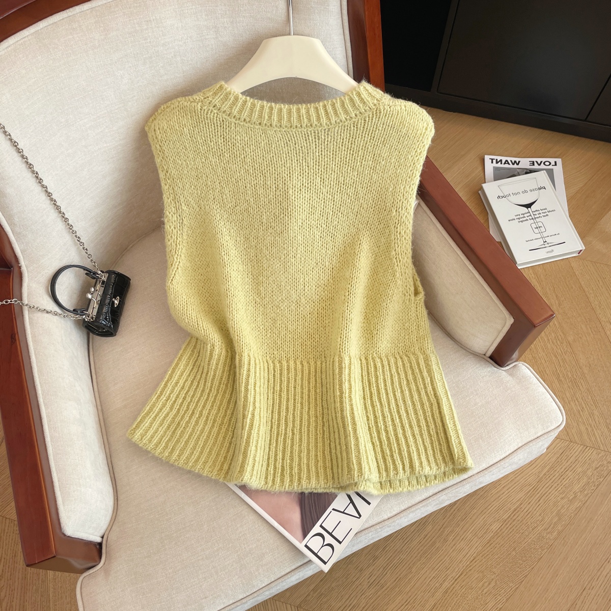 MY16542# 新款优雅显瘦叠穿马甲女设计感半开领洋气裙摆无袖上衣女裝貨源服裝批發