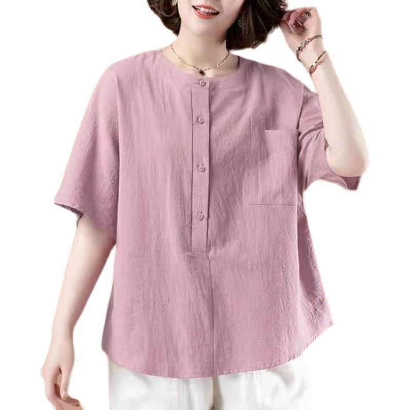 MY16561# 文艺短袖大码女装T恤夏季新款宽松遮肚衬衫纯色显瘦上衣女裝貨源服裝批發