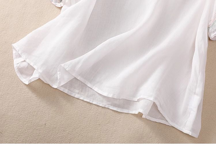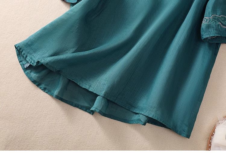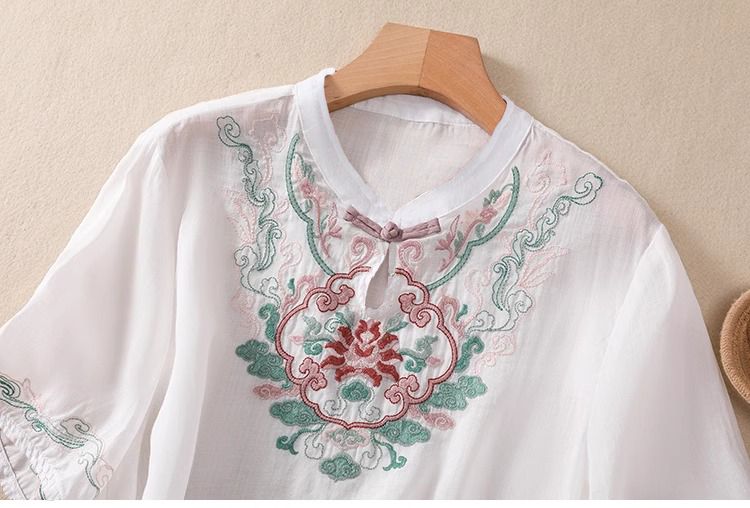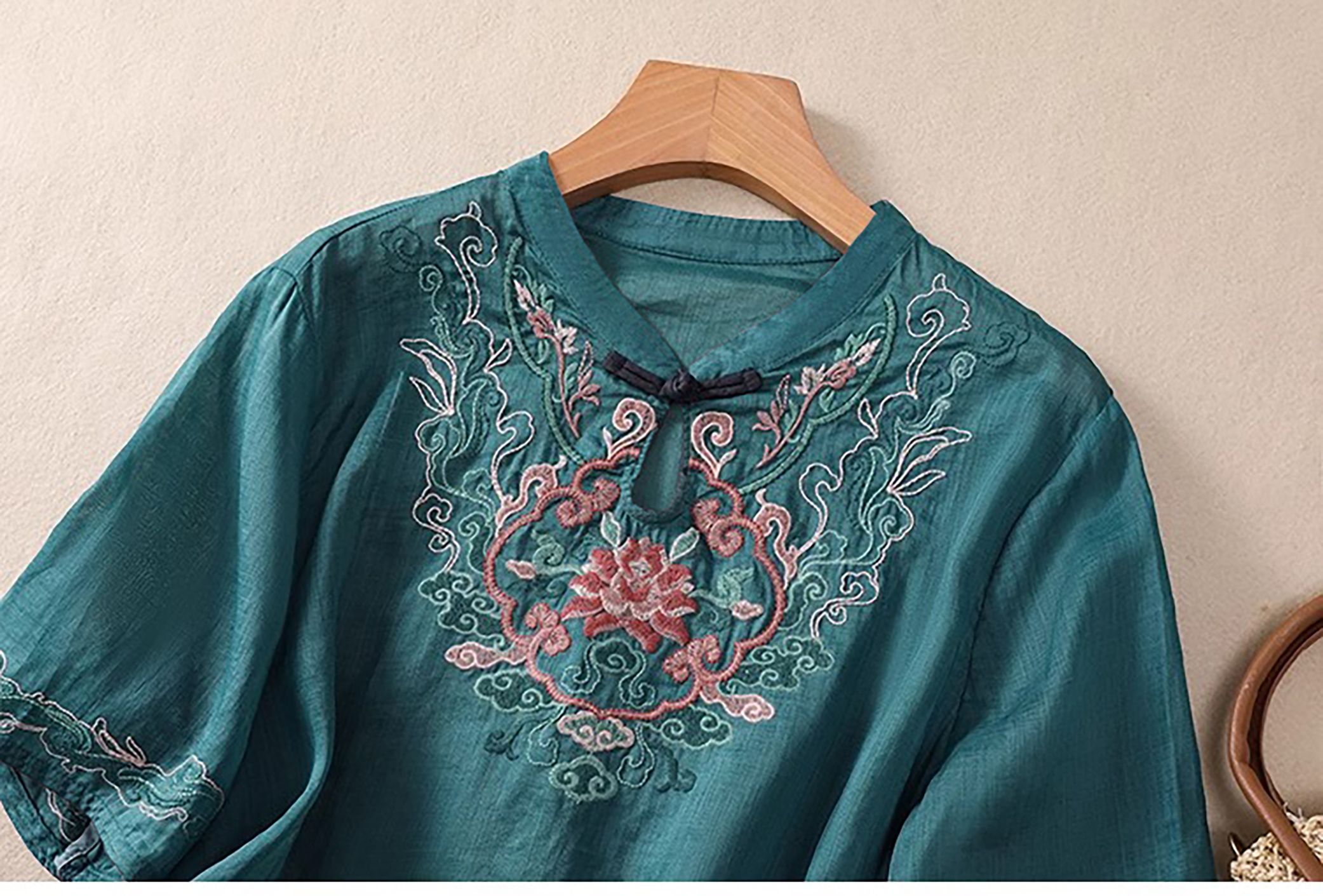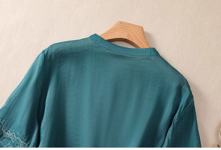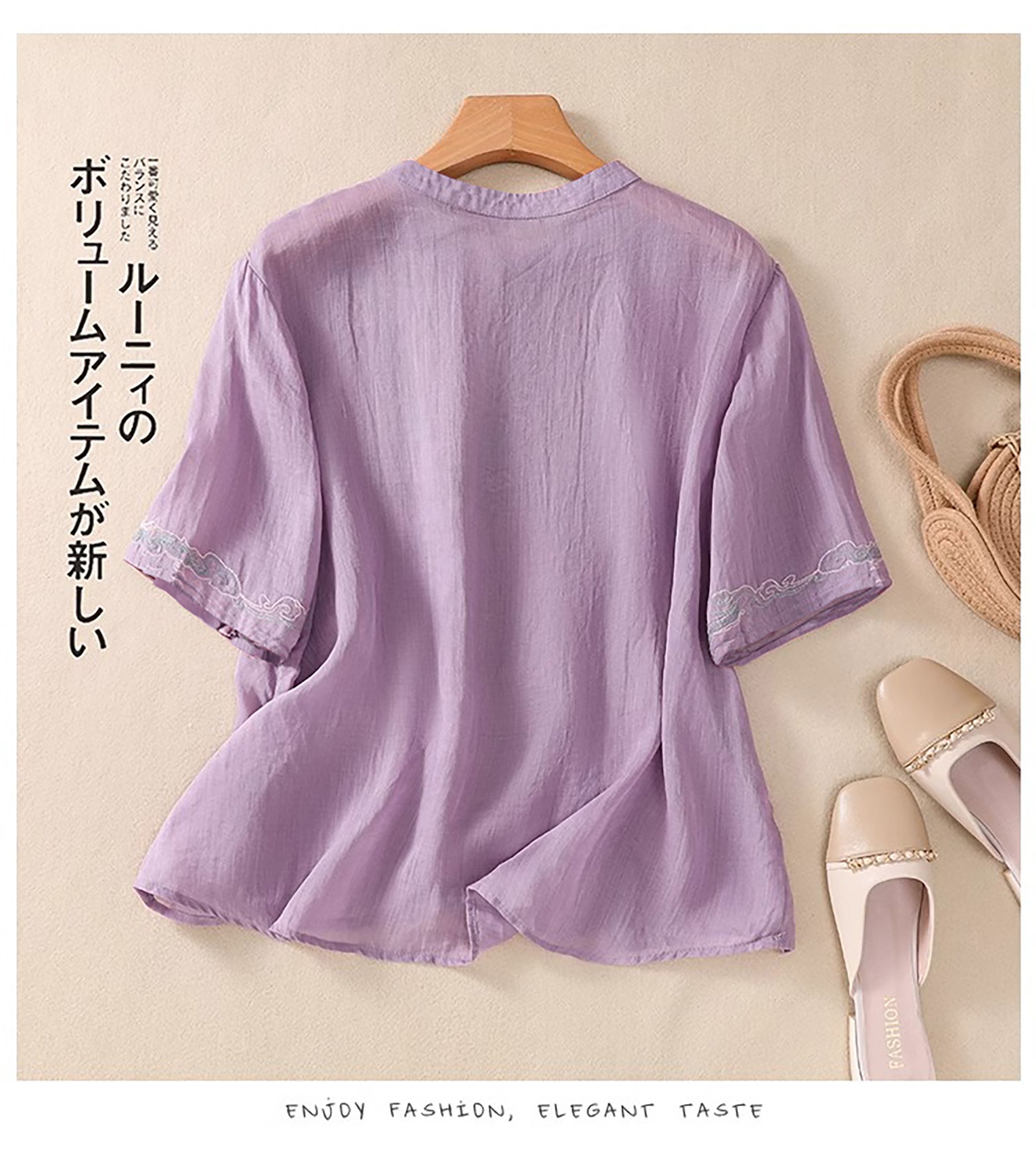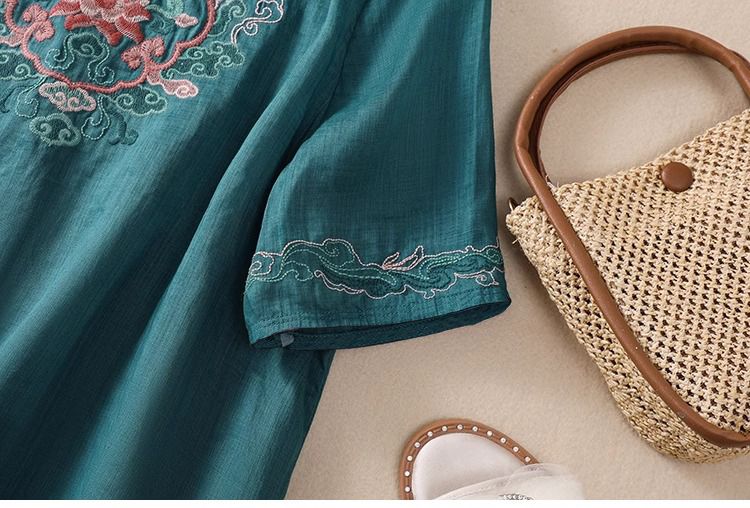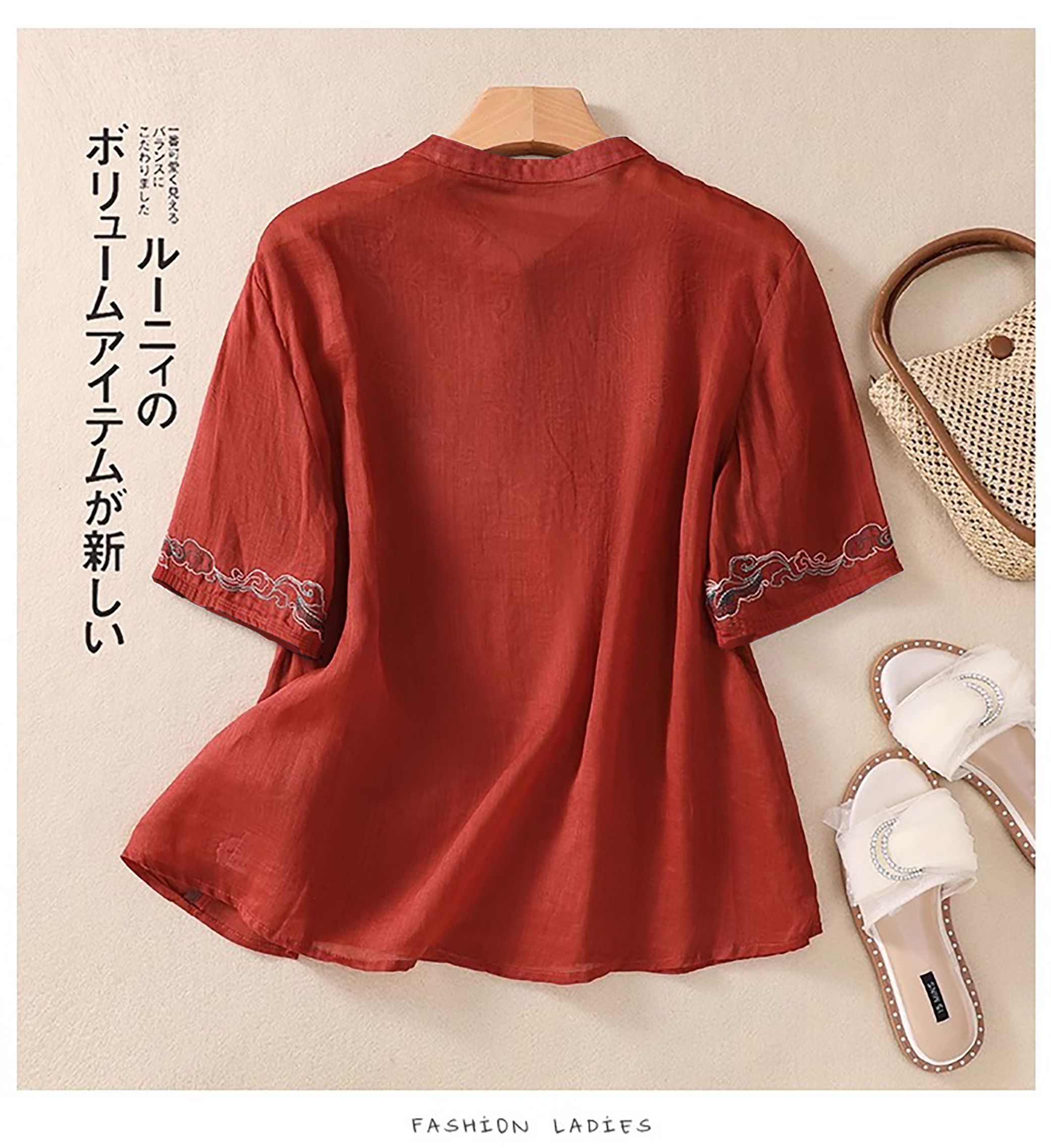 MY16567# 夏季国风复古刺绣盘扣旗袍领棉麻小衫中式宽松短袖套头上衣女女裝貨源服裝批發