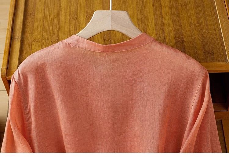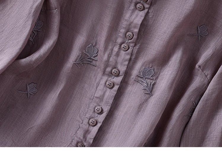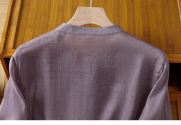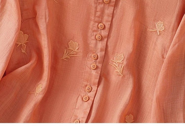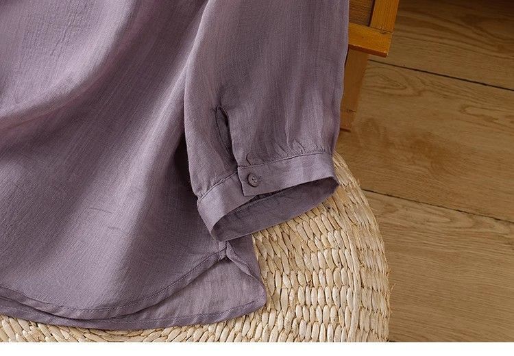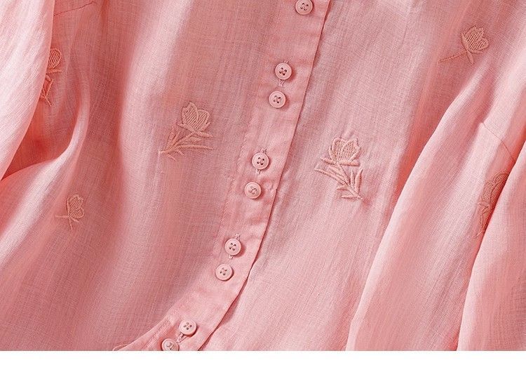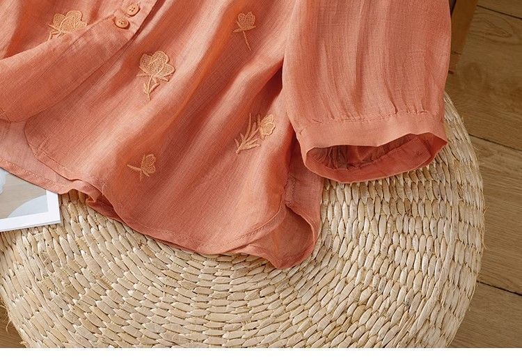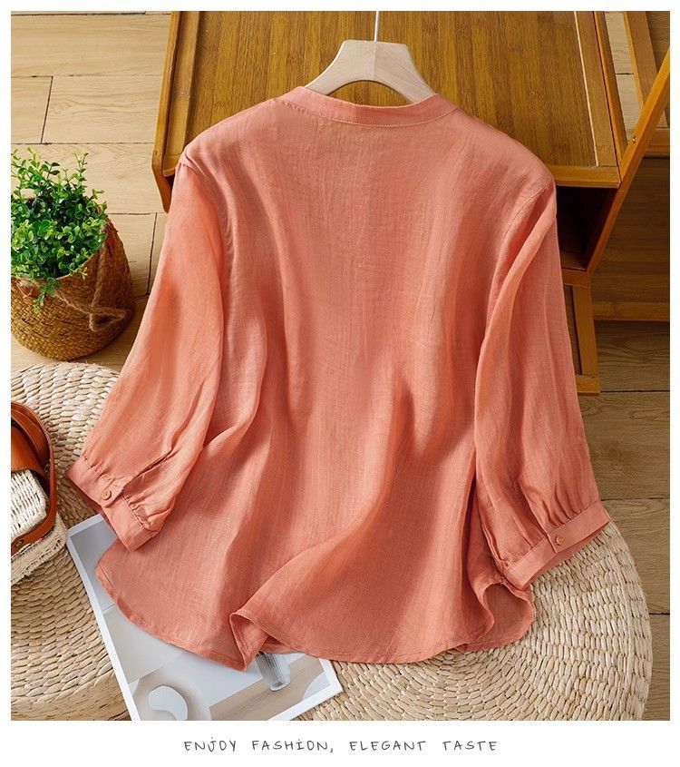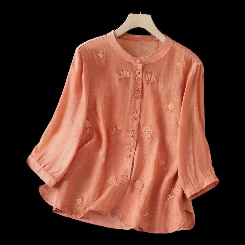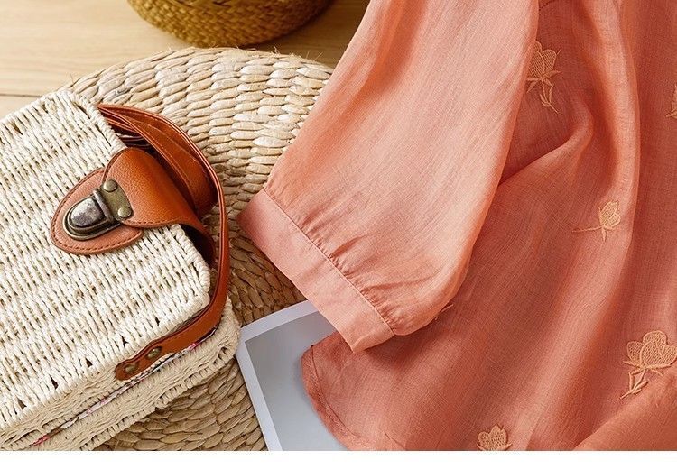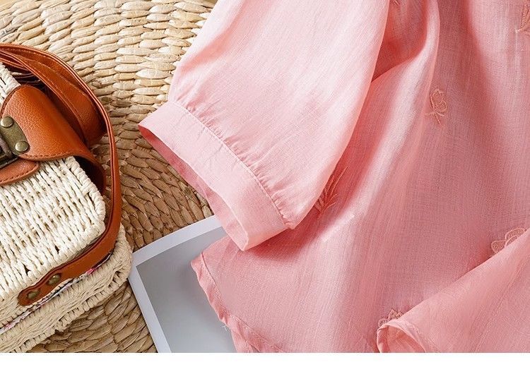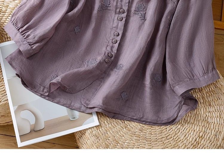 MY16570# 新款韩版宽松显瘦棉麻圆领七分袖刺绣衬衫女休闲纯色减龄上衣女裝貨源服裝批發