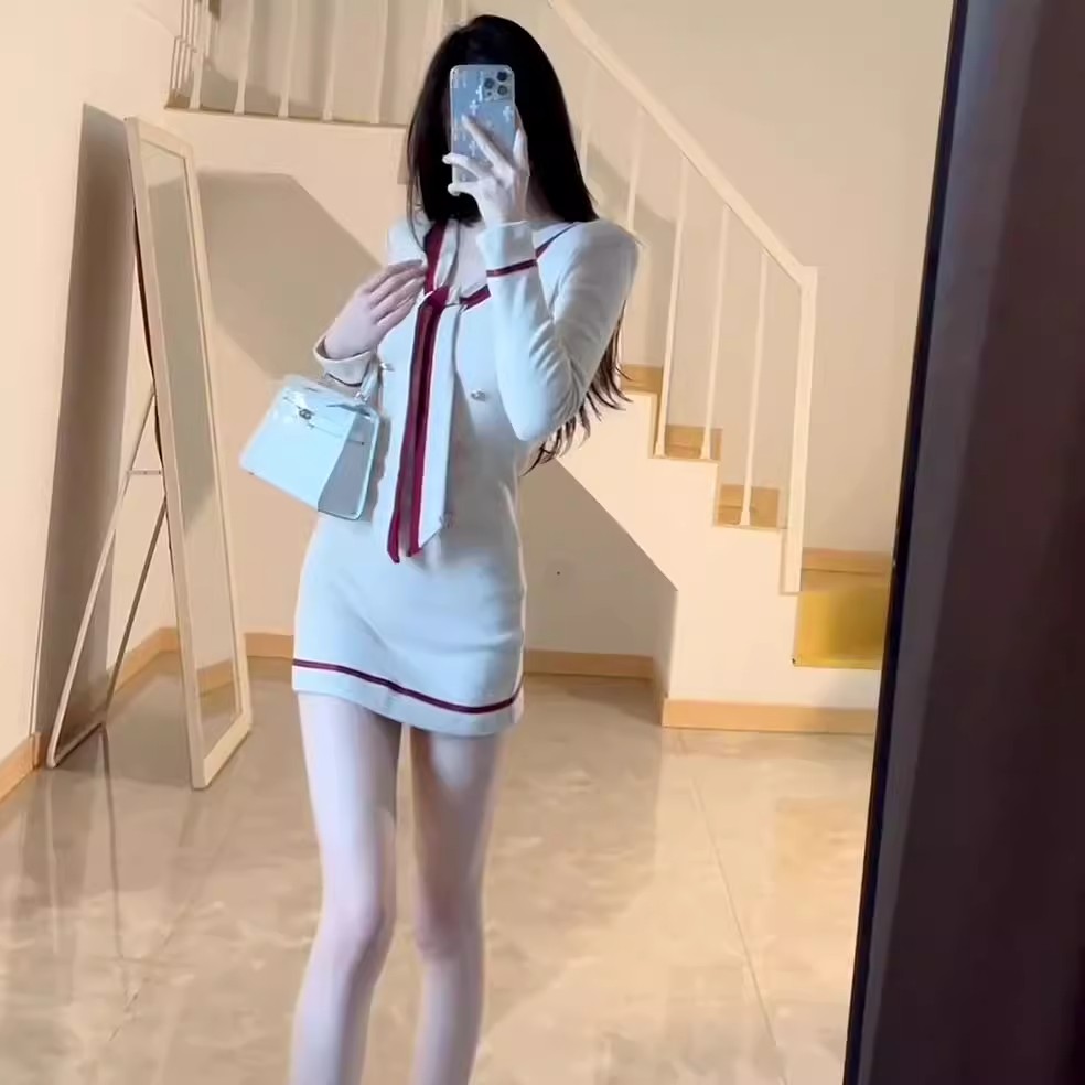 MY16599# 气质名媛富家千金撞色连衣裙女秋季新款韩系穿搭修身显瘦包臀裙子女裝貨源服裝批發