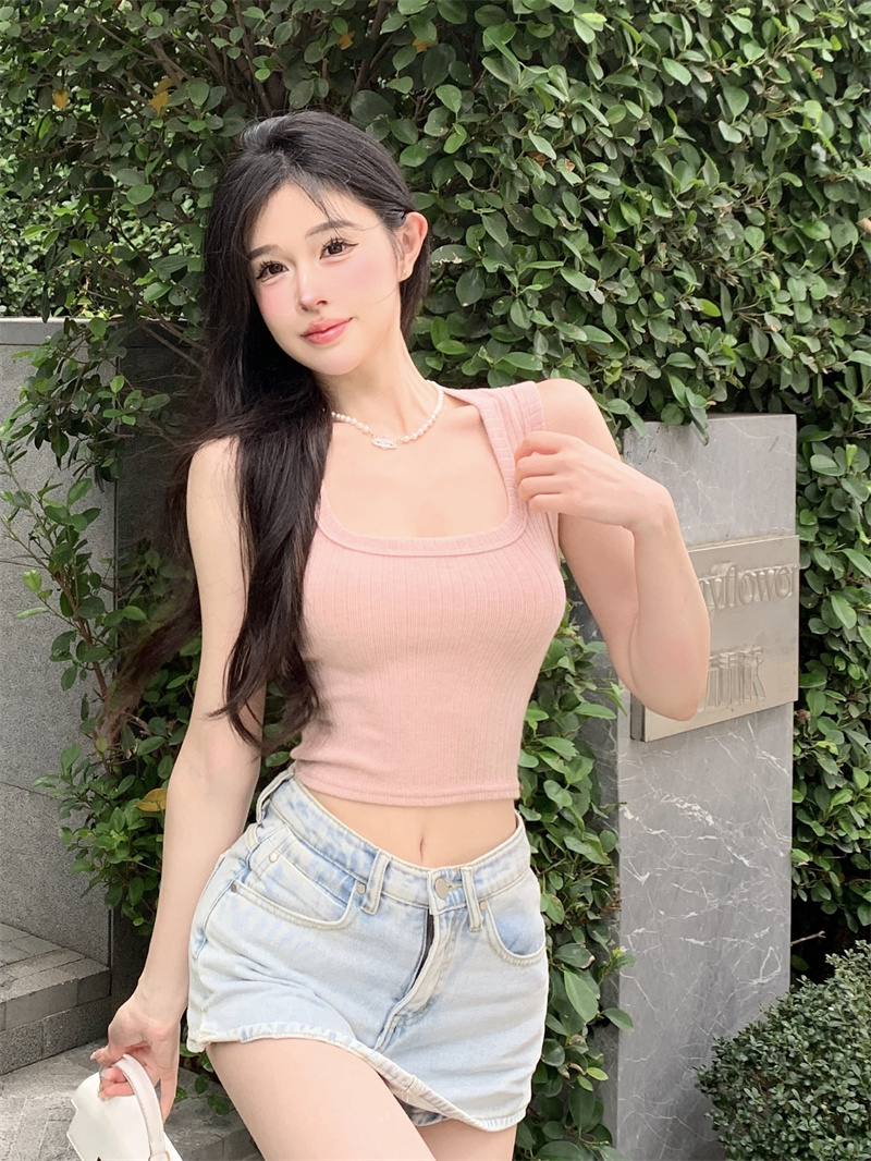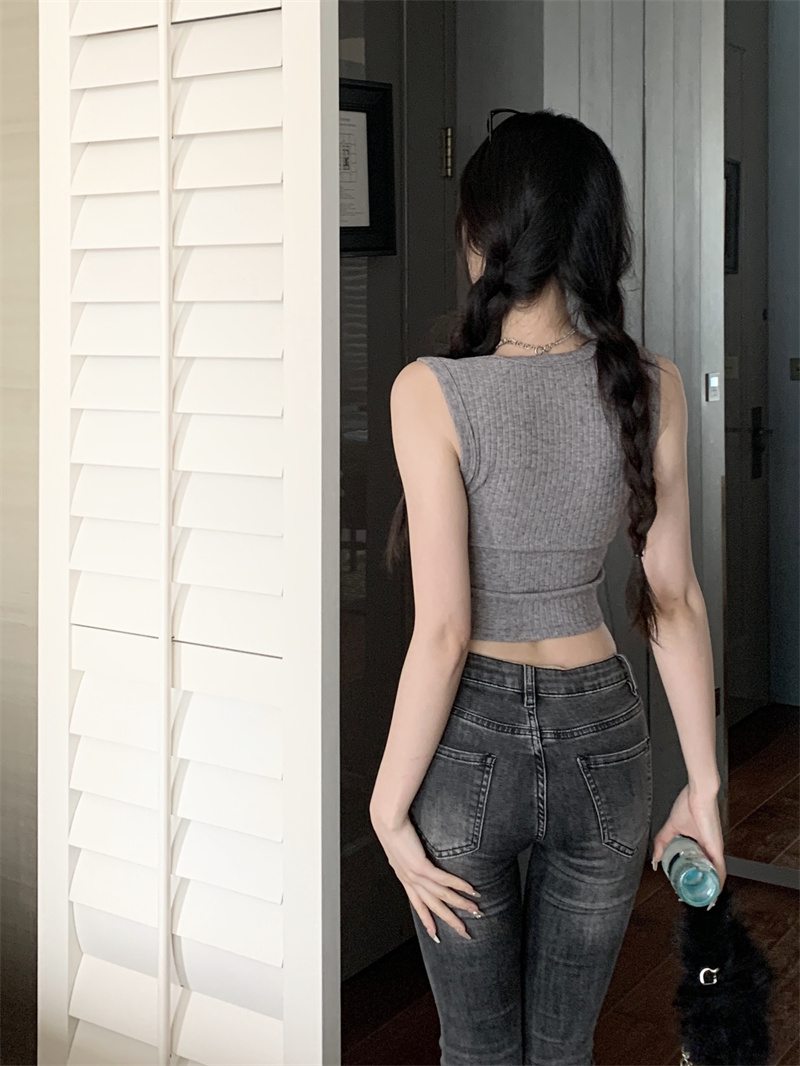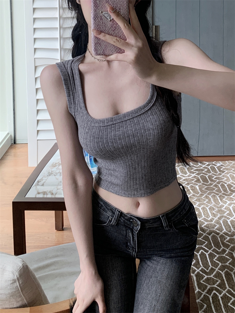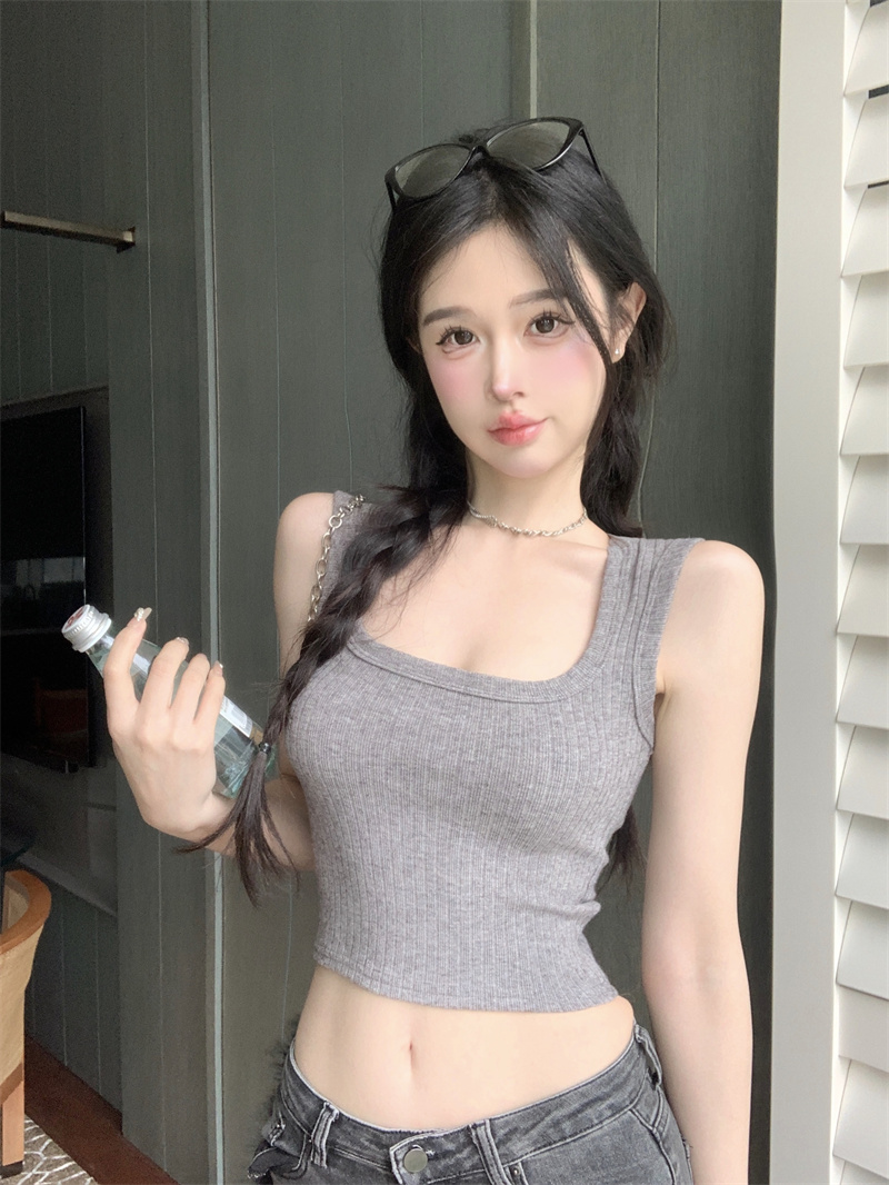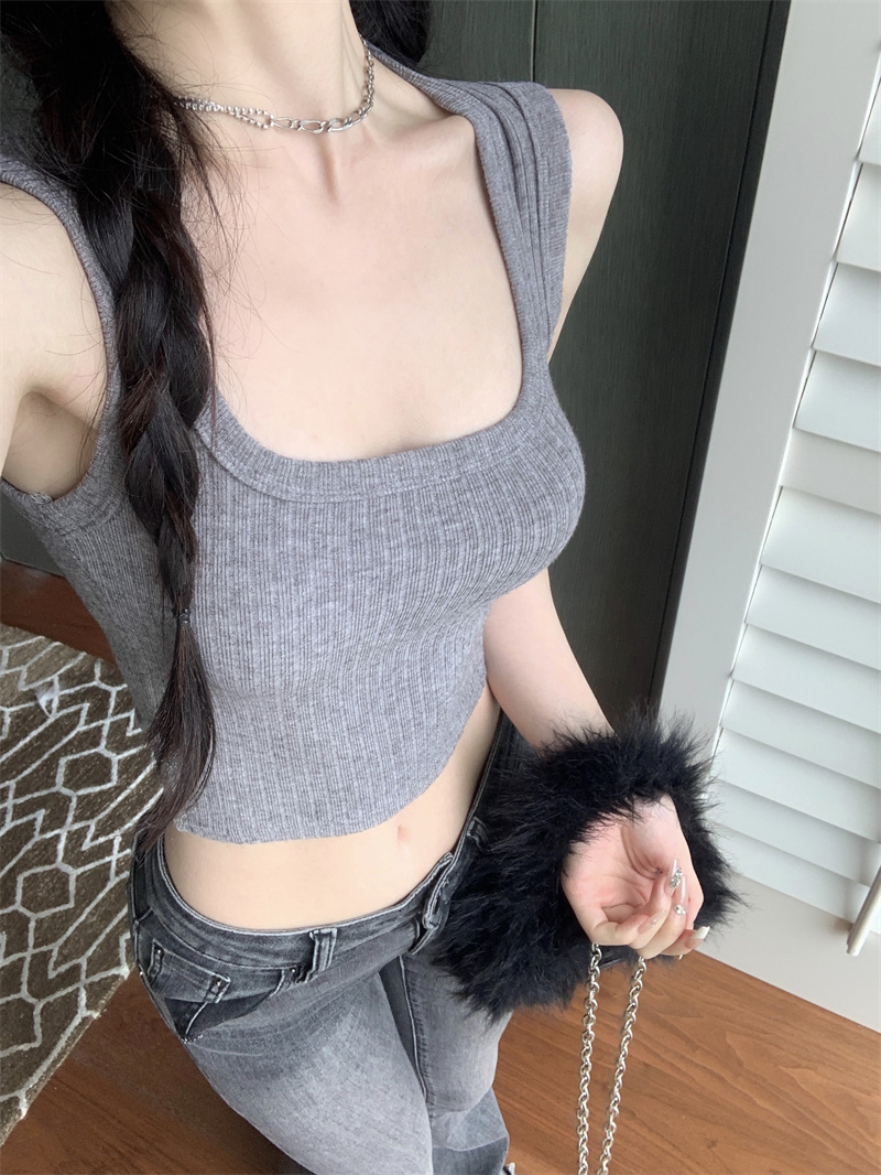 MY16600# 灰色针织吊带小背心女夏紧身内搭无袖上衣复古辣妹短款外穿打底衫女裝貨源服裝批發
