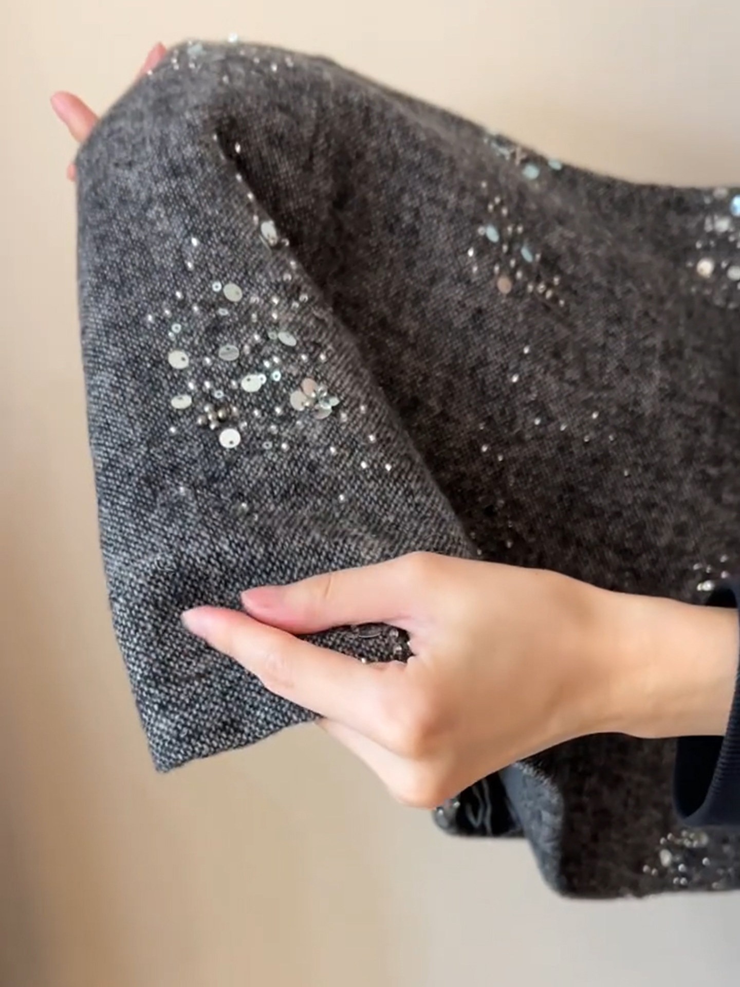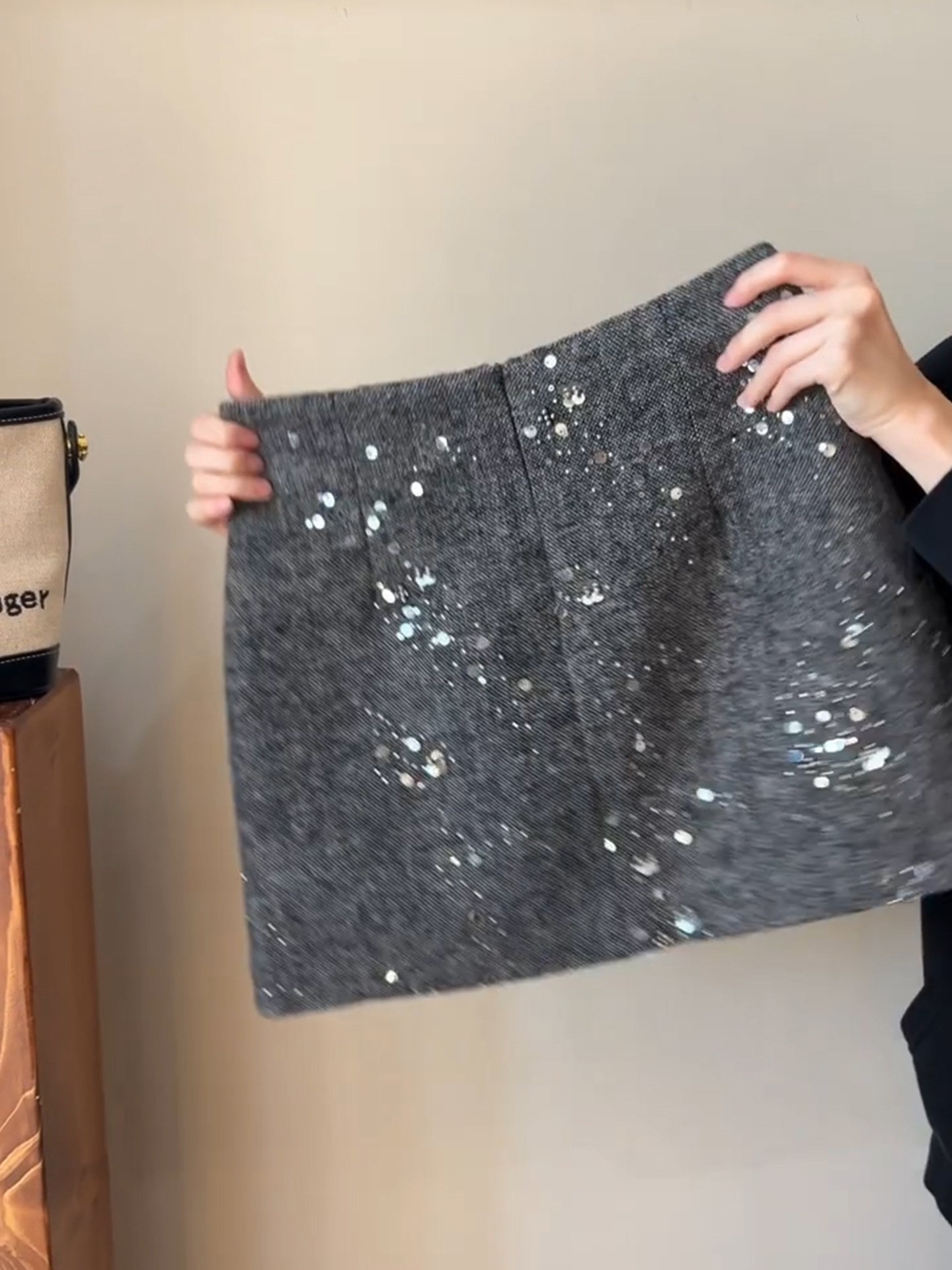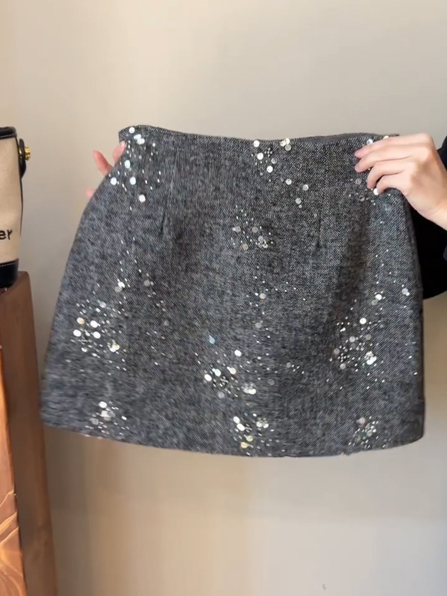 MY16611# 小香风重工亮片半身裙新款高腰显瘦a字短裙灰色毛呢包臀裙女裝貨源服裝批發