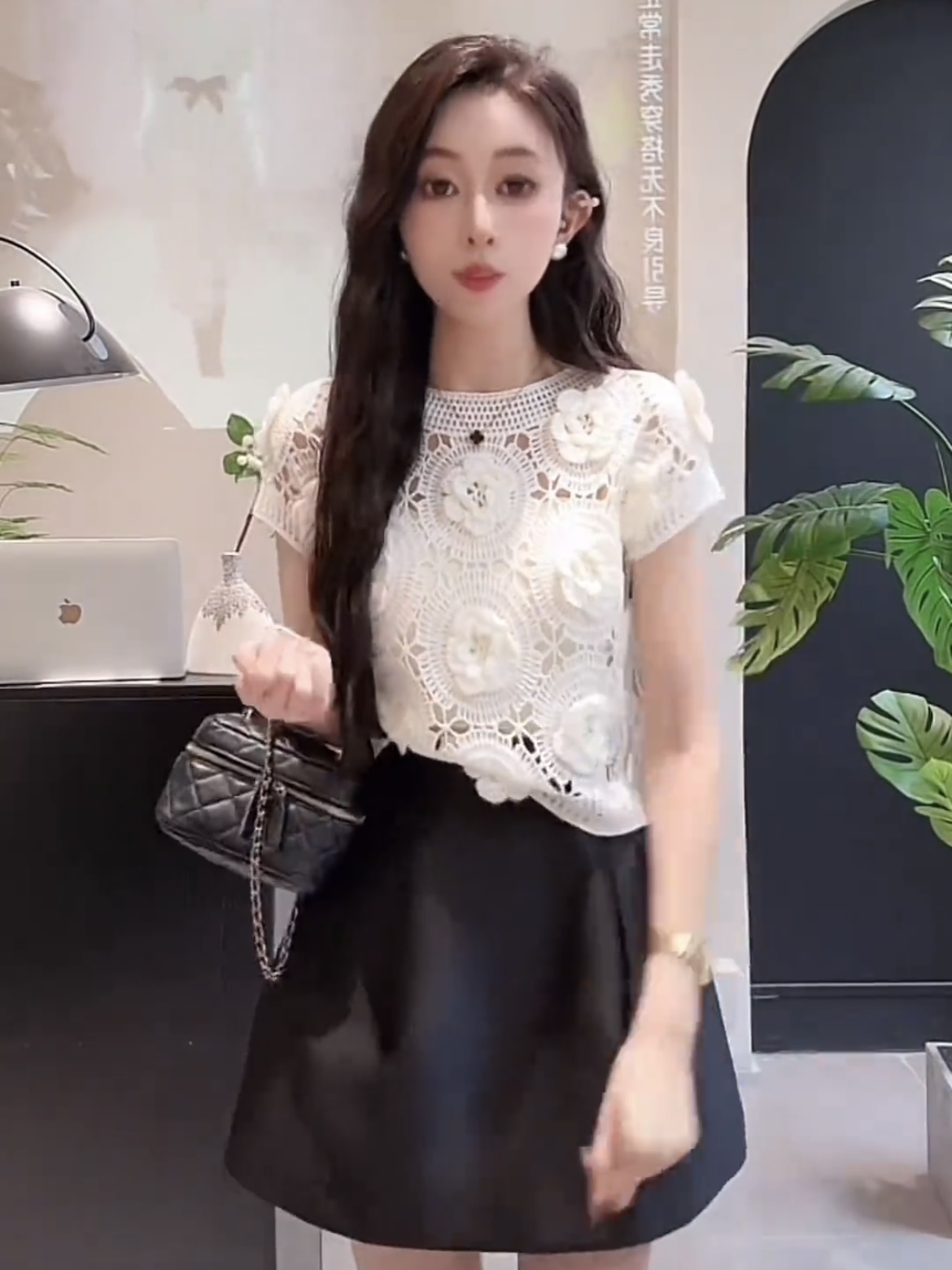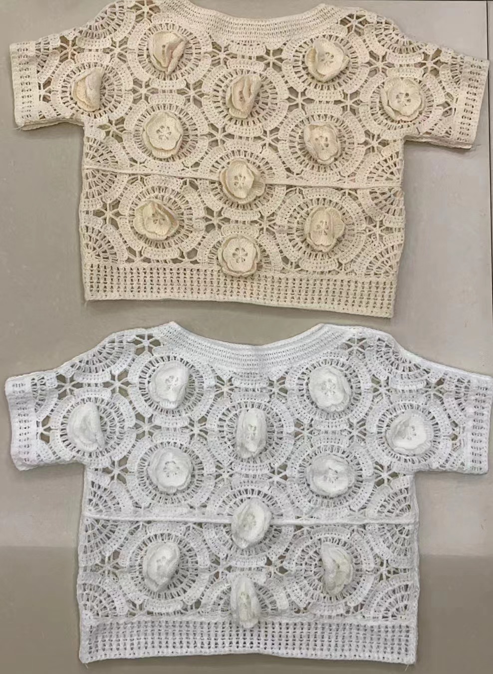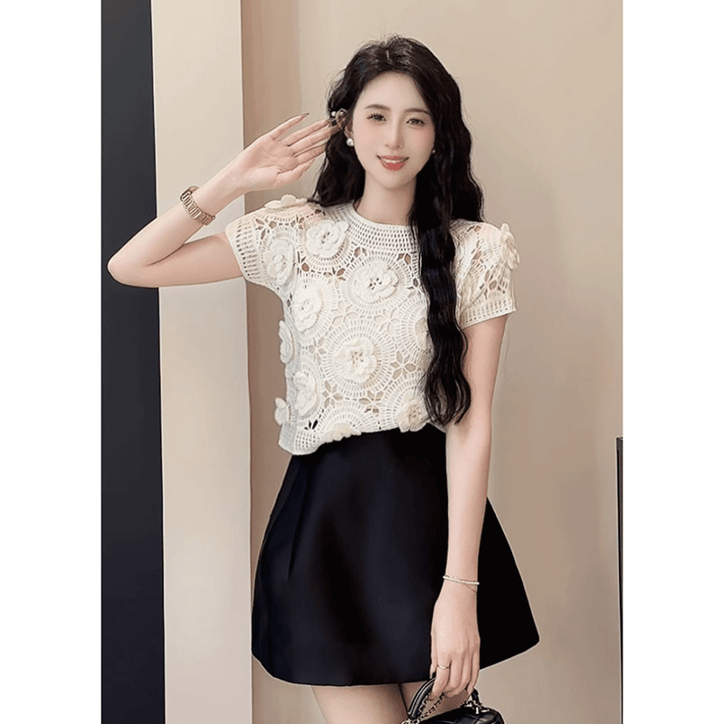 MY16616# 镂空钩花白色针织短袖t恤女时髦时尚洋气夏装小众设计感短款上衣女裝貨源服裝批發