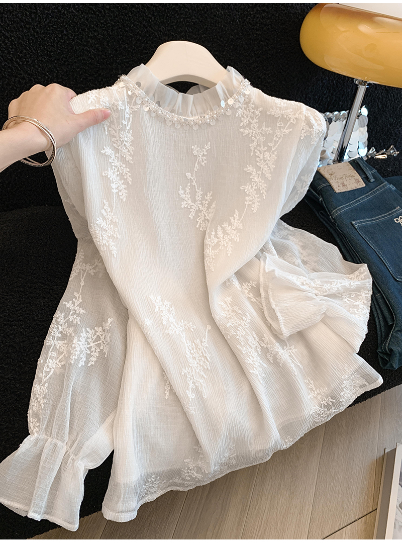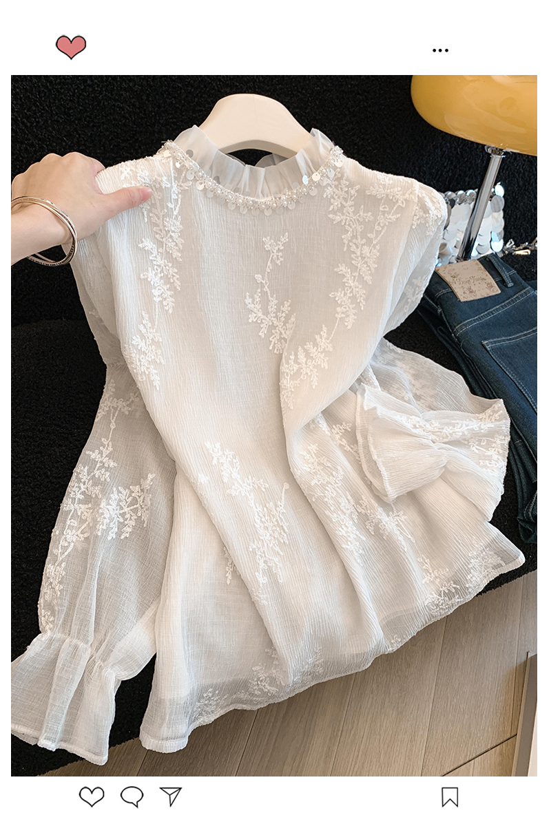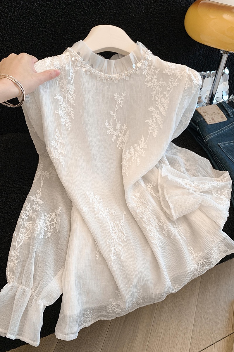 MY16623# 法式精致绝美上衣新款高级设计感小众蕾丝荷叶边打底衫女女裝貨源服裝批發