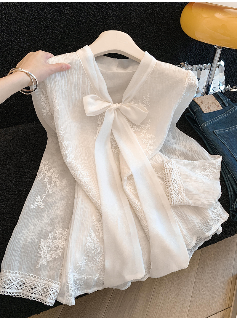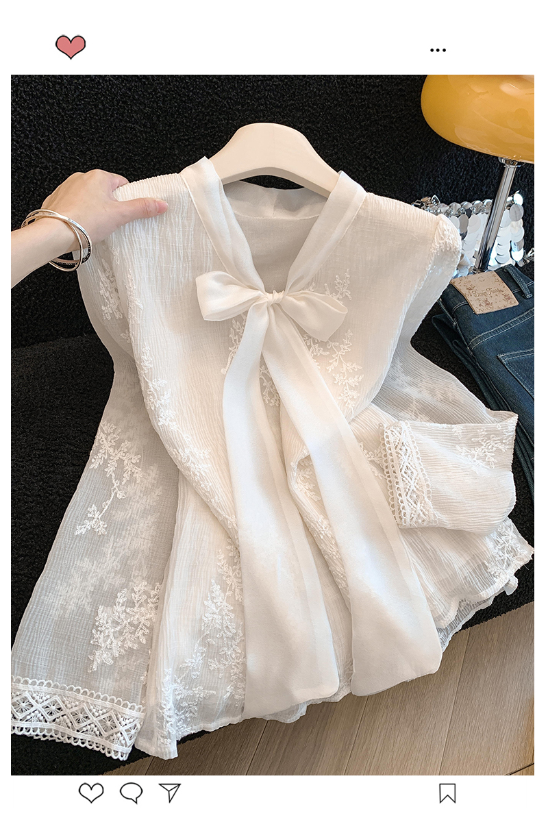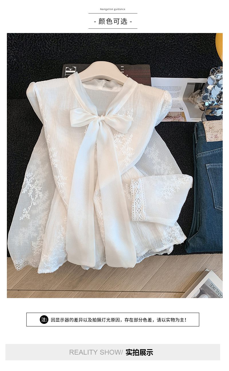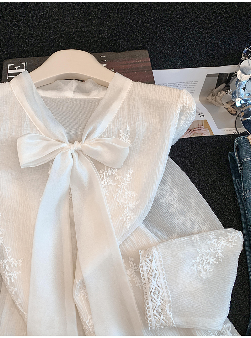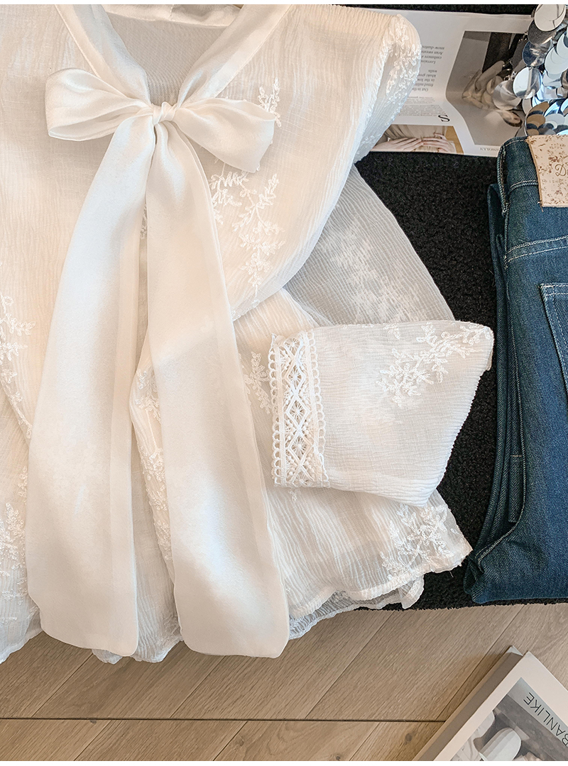 MY16624# KUN淡香橙花法式长袖蕾丝衬衫女设计感衬衣气质打底衫上衣新女裝貨源服裝批發