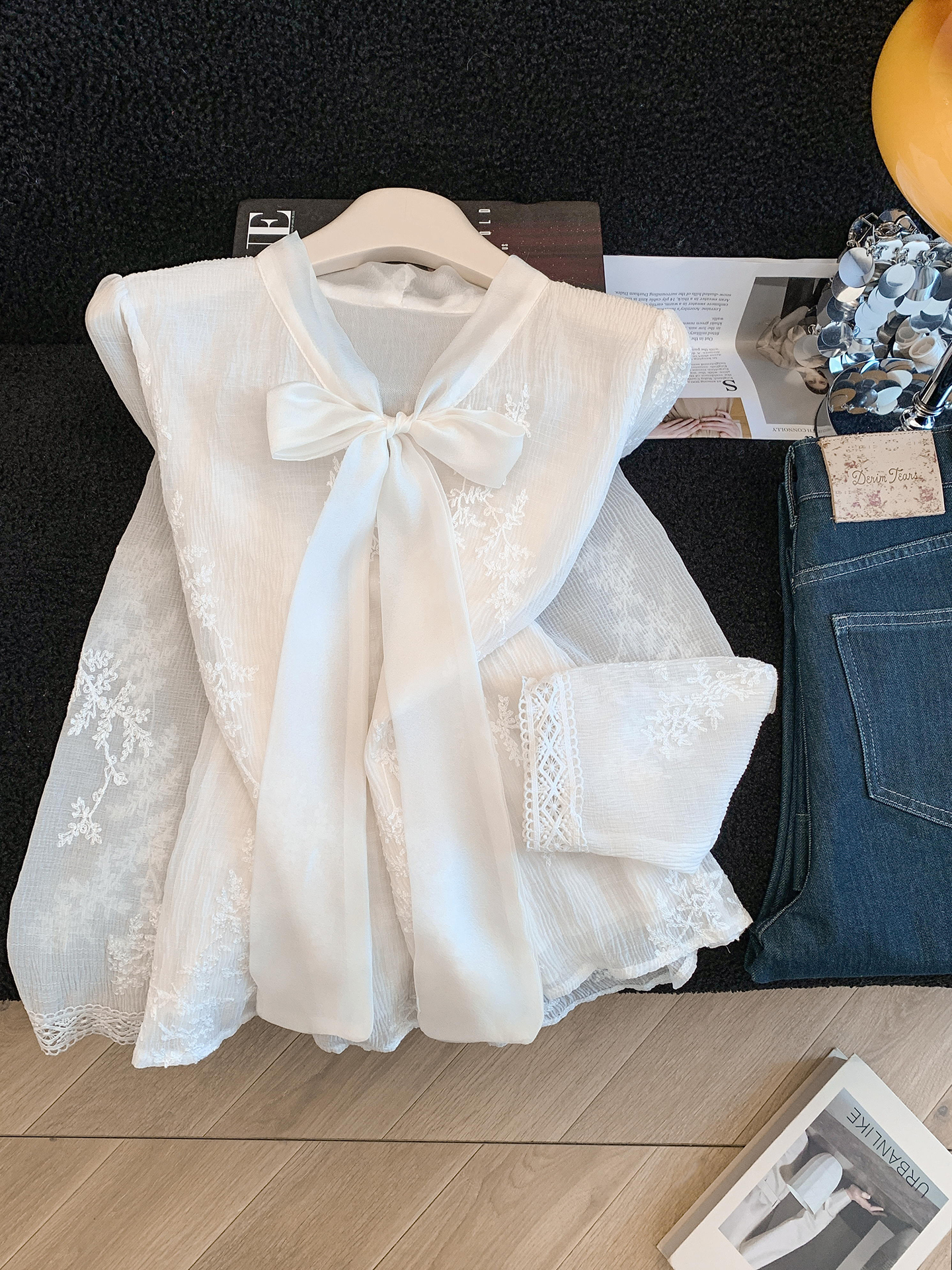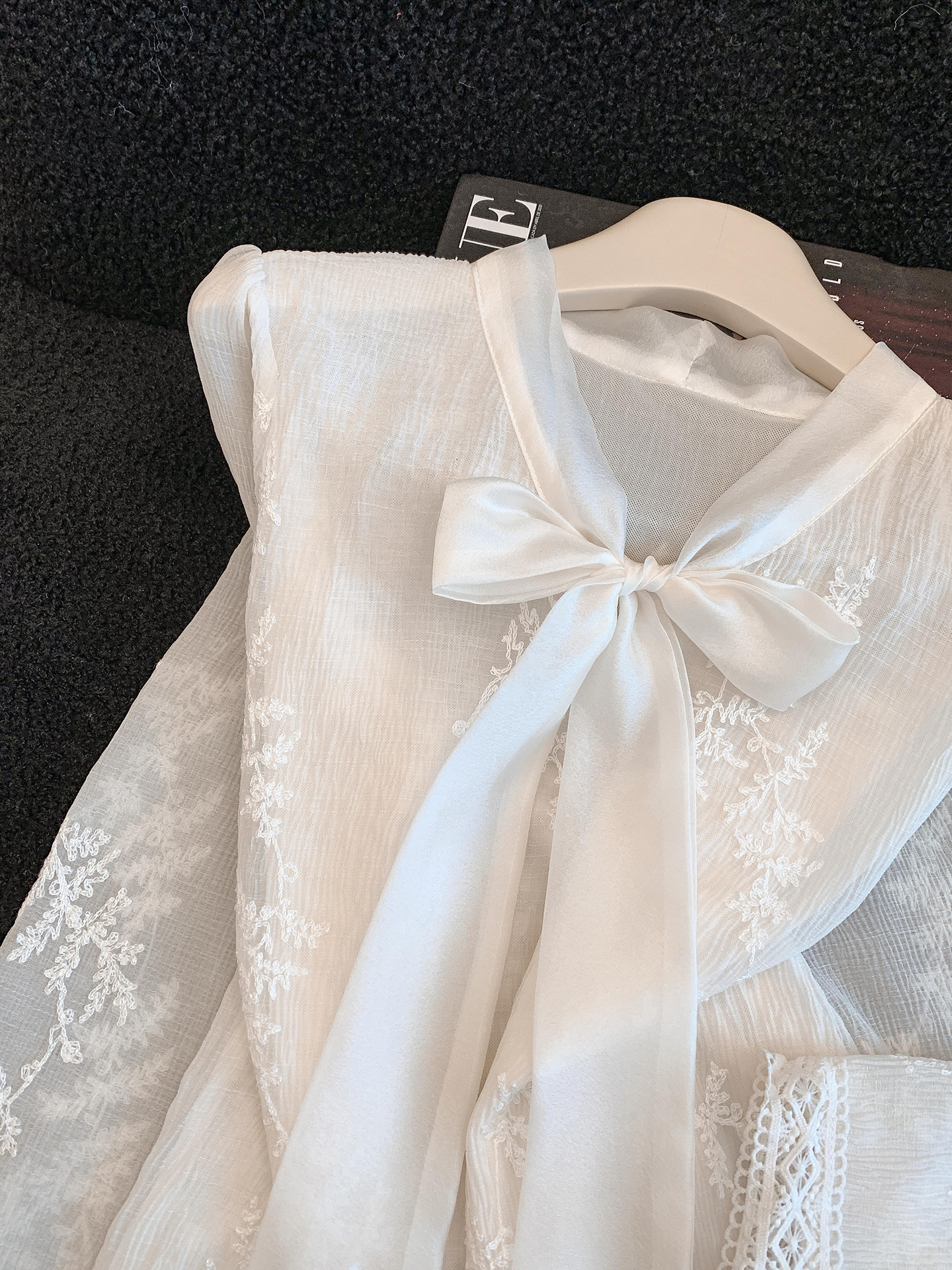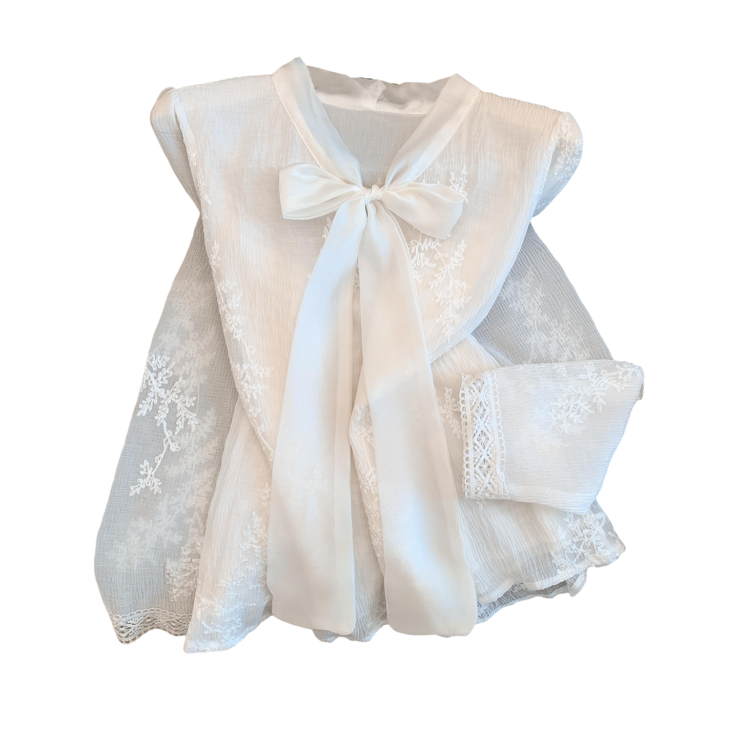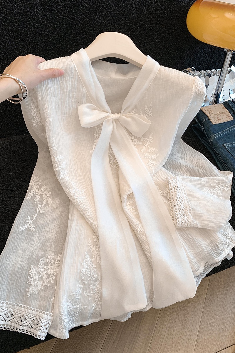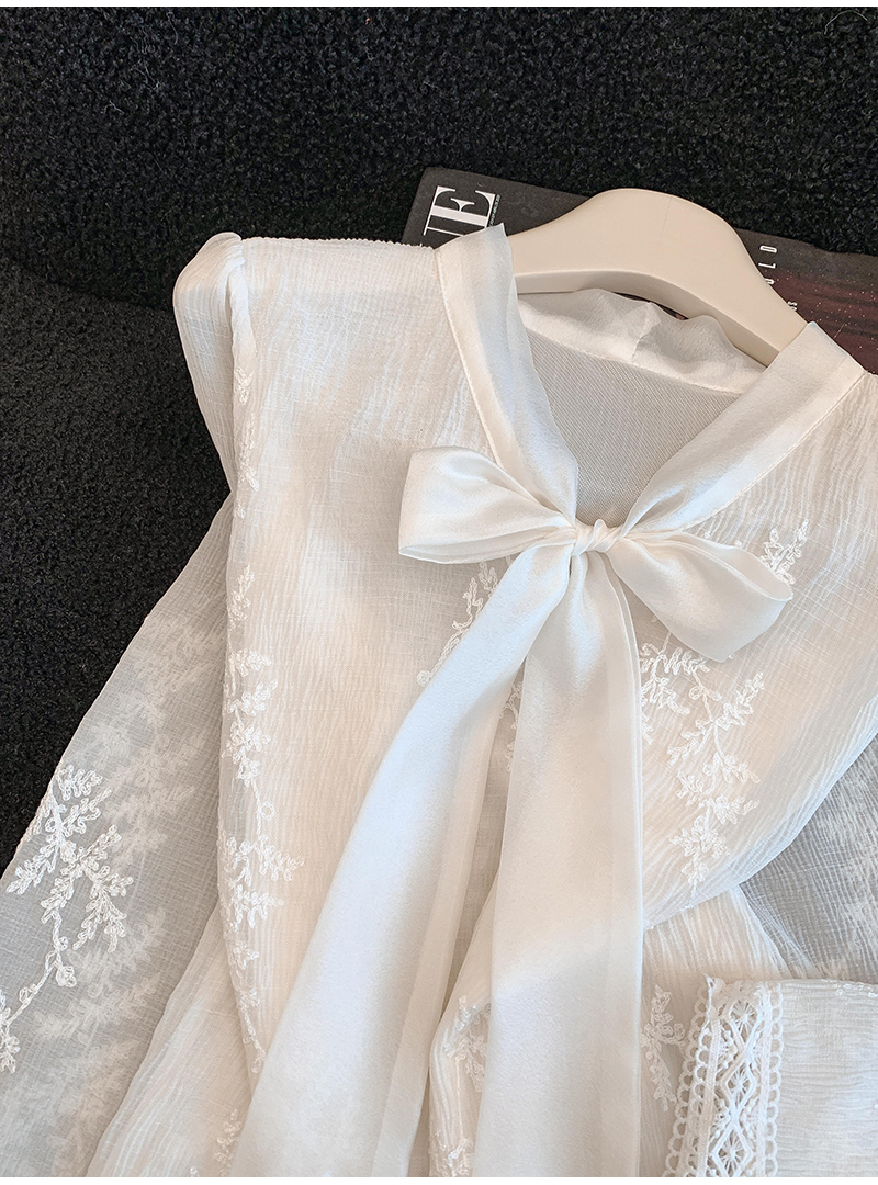 MY16624# KUN淡香橙花法式长袖蕾丝衬衫女设计感衬衣气质打底衫上衣新女裝貨源服裝批發