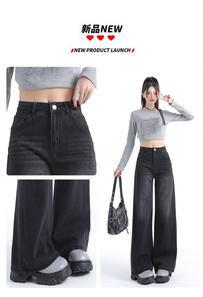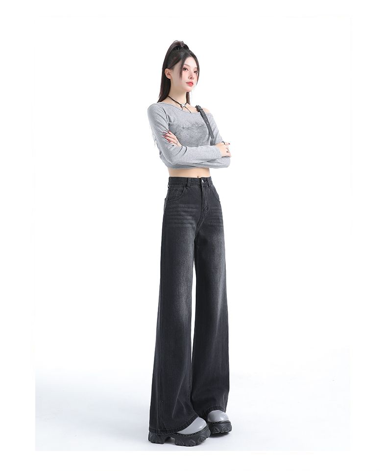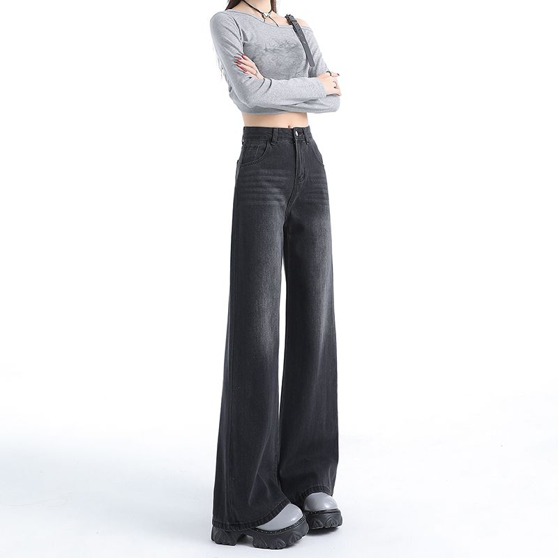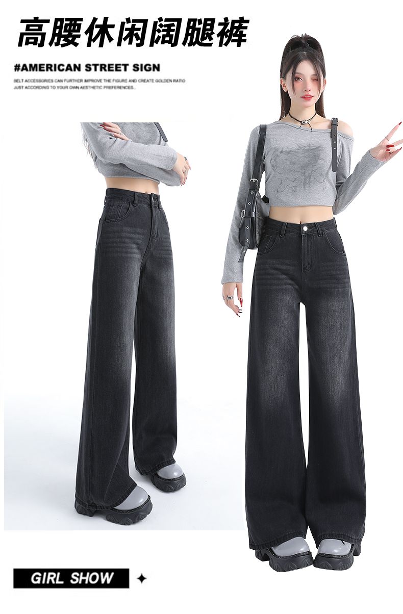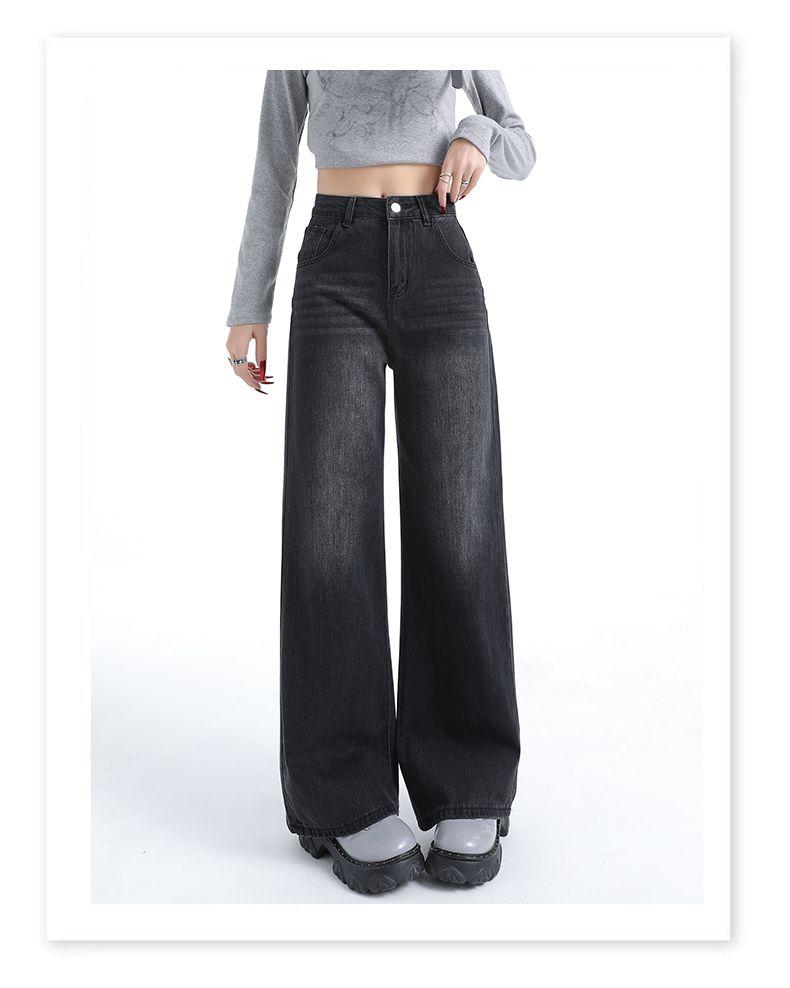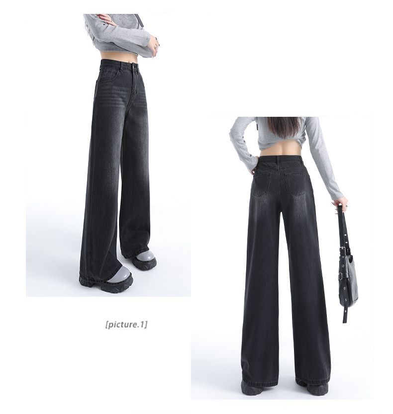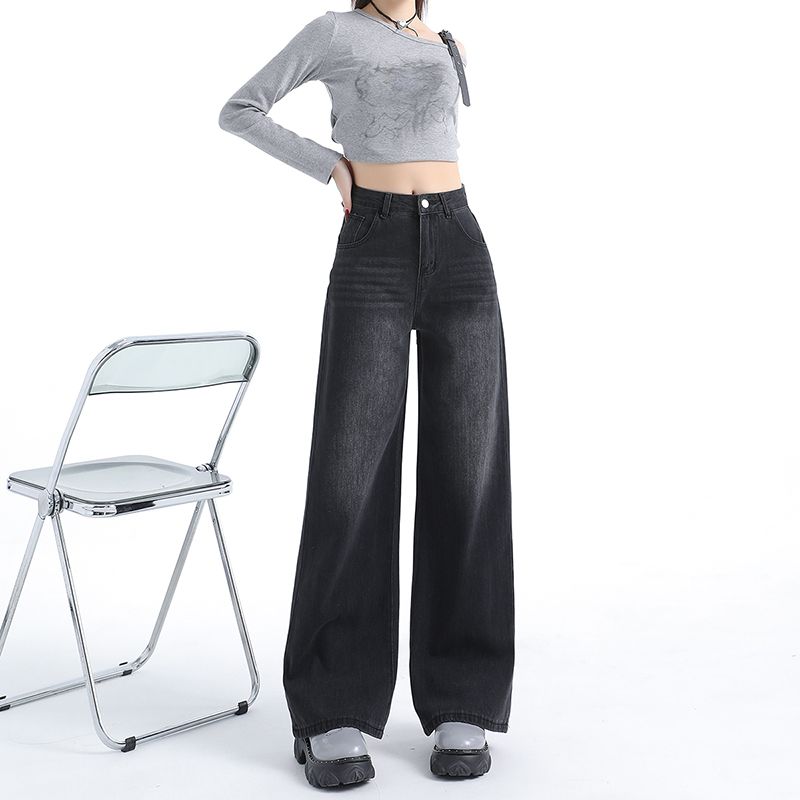 MY16630# 黑灰色加绒加厚阔腿牛仔裤新款宽松百搭显瘦直筒拖地裤女裝貨源服裝批發