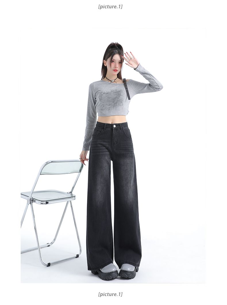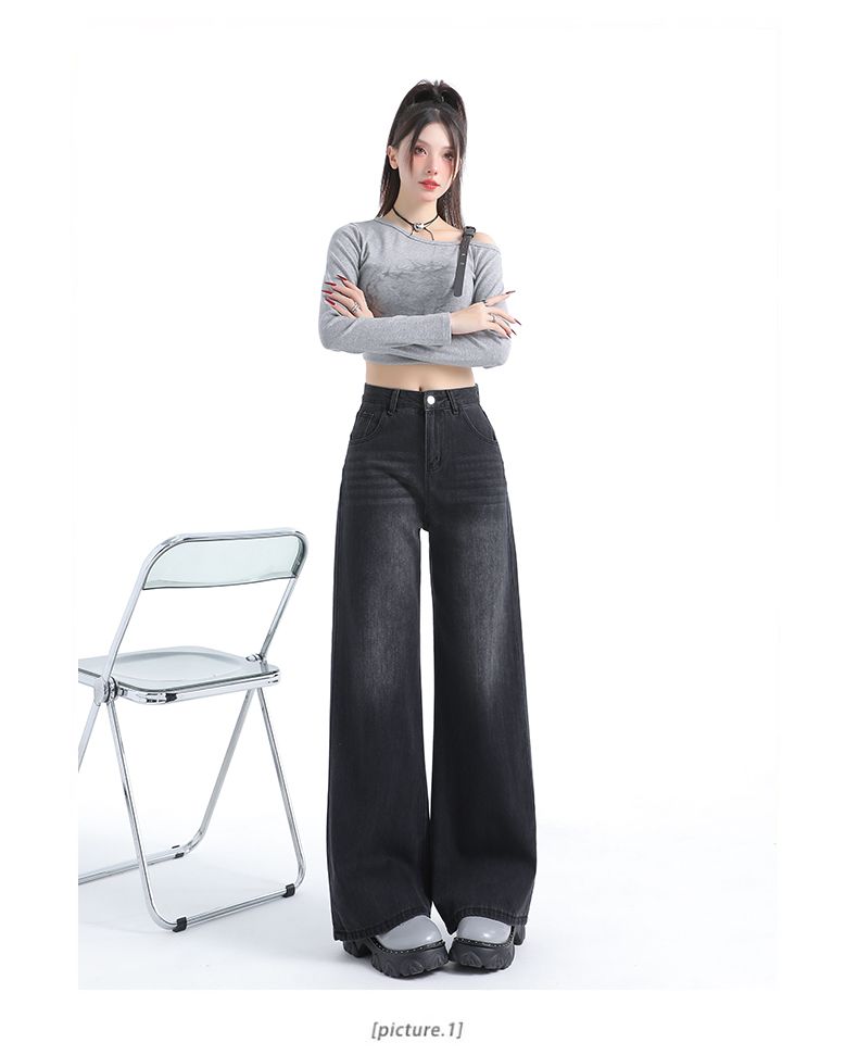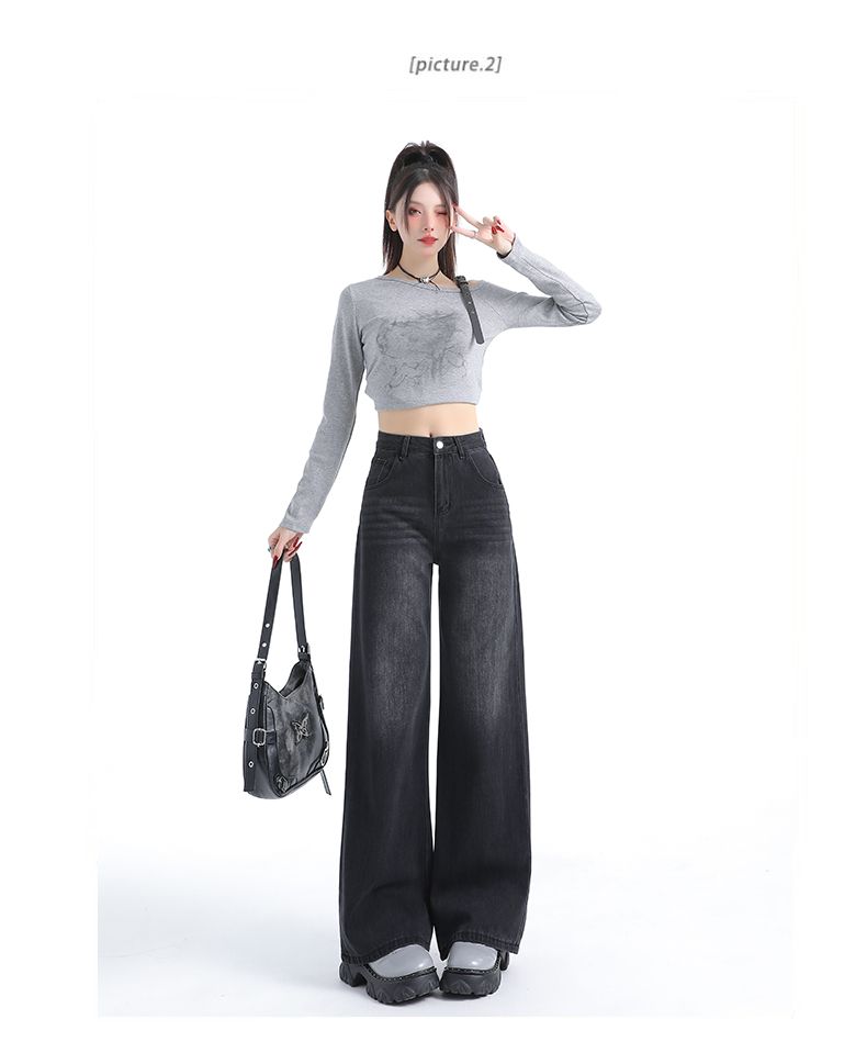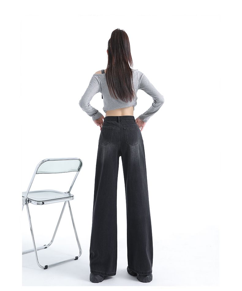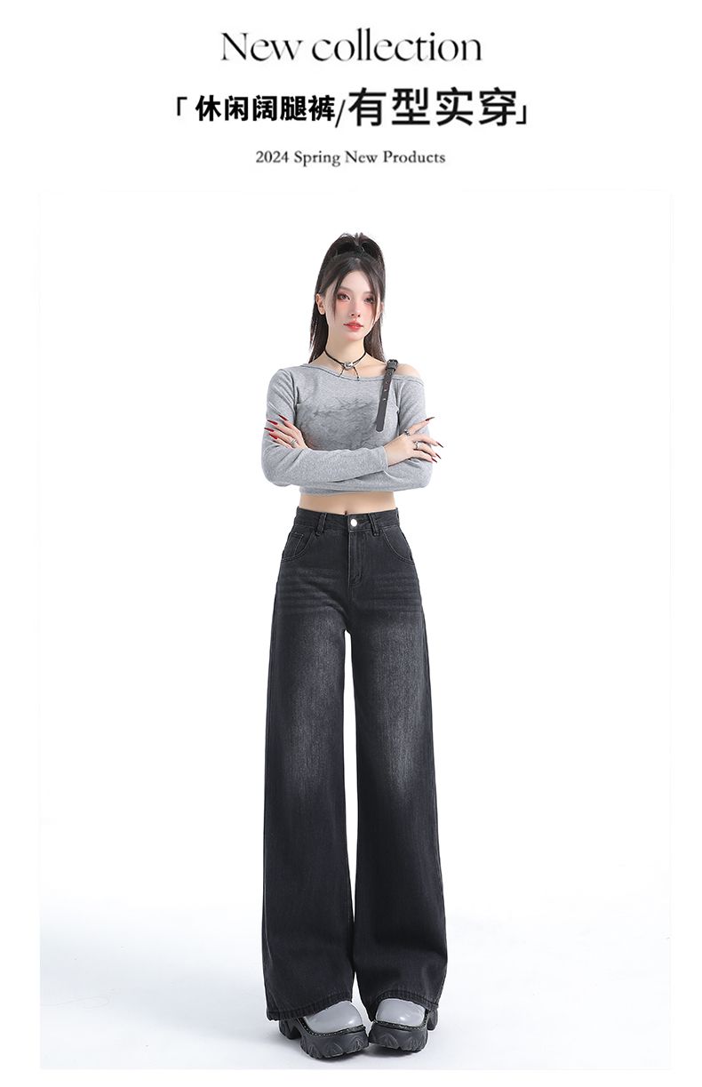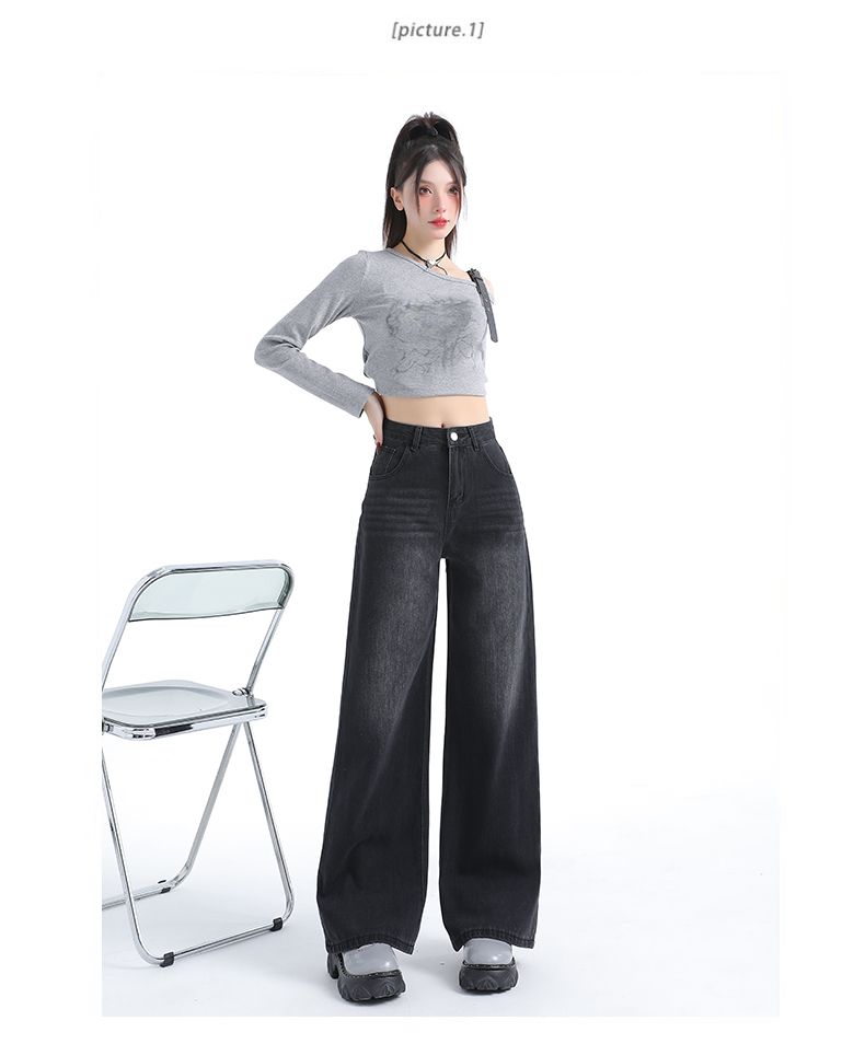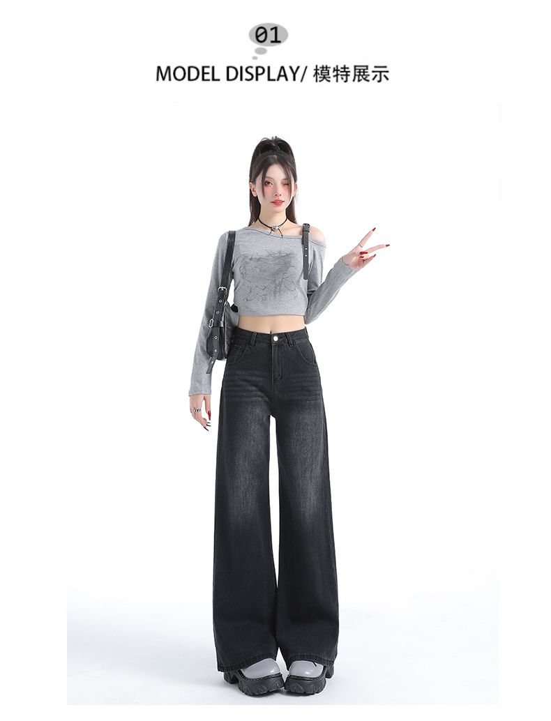 MY16630# 黑灰色加绒加厚阔腿牛仔裤新款宽松百搭显瘦直筒拖地裤女裝貨源服裝批發