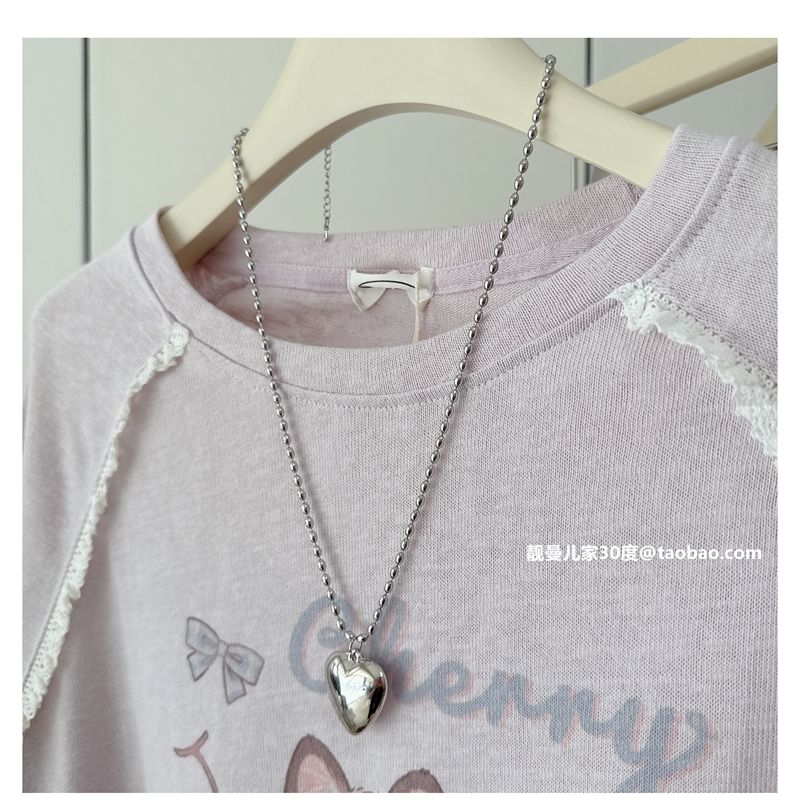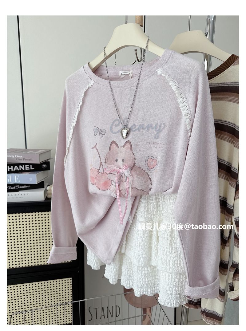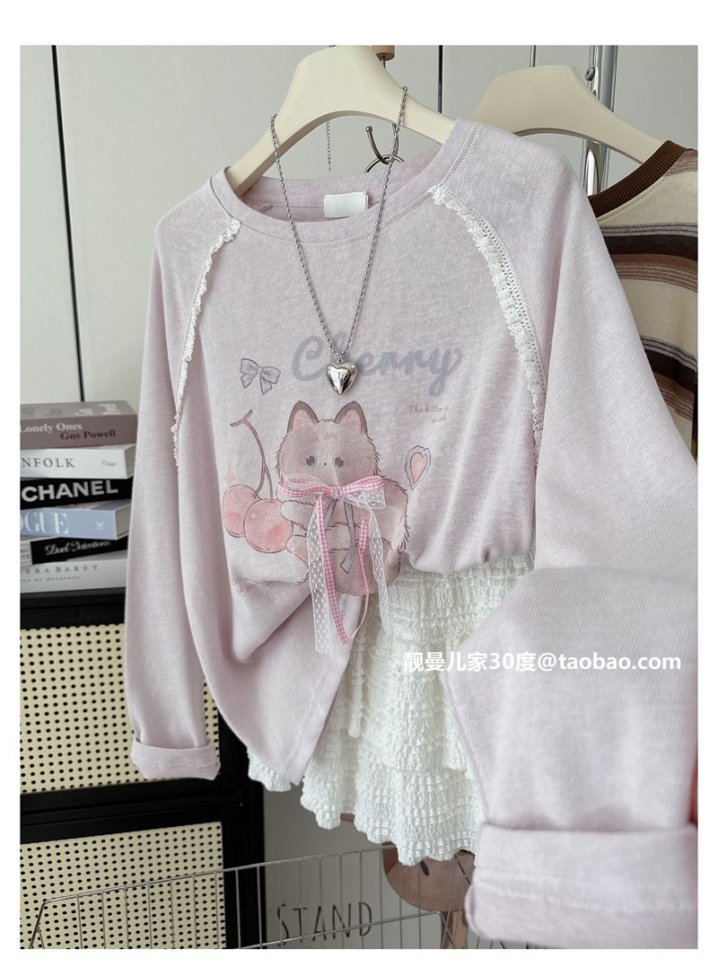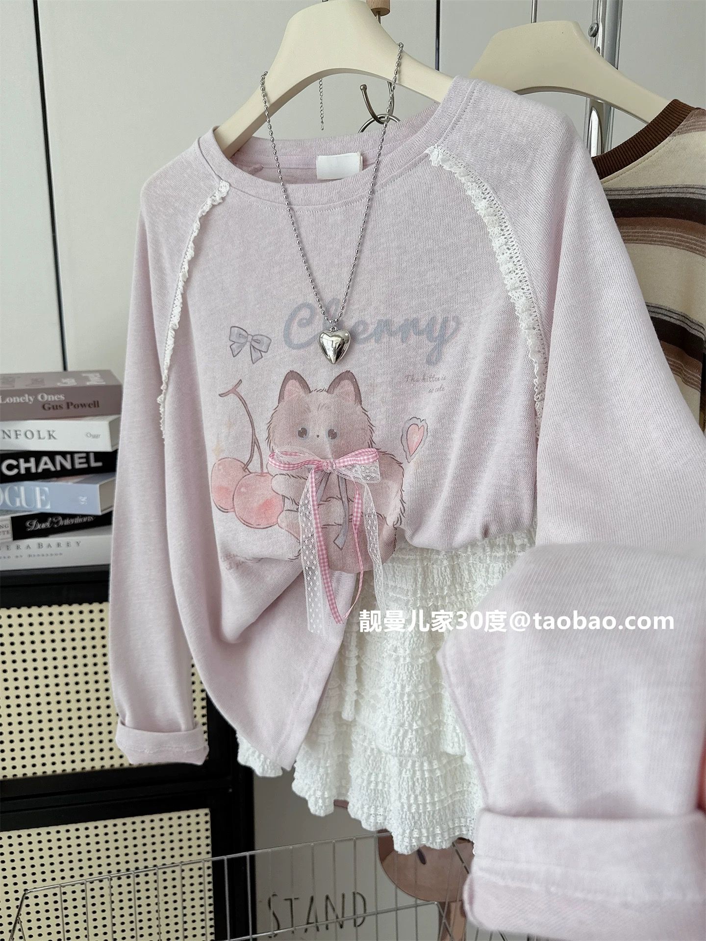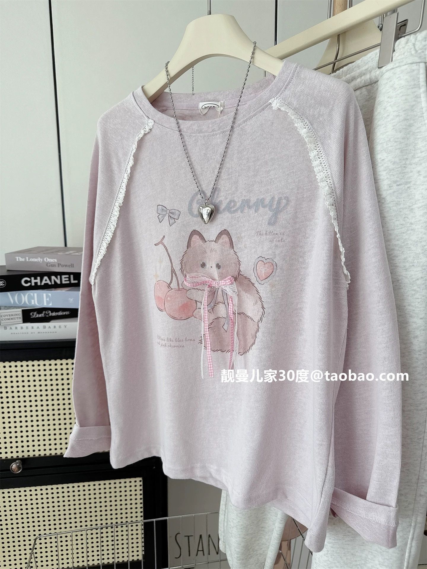 MY16641# 21支纯棉特大码300斤简约别致风~樱桃小猫女上衣打底T恤衫女裝貨源服裝批發