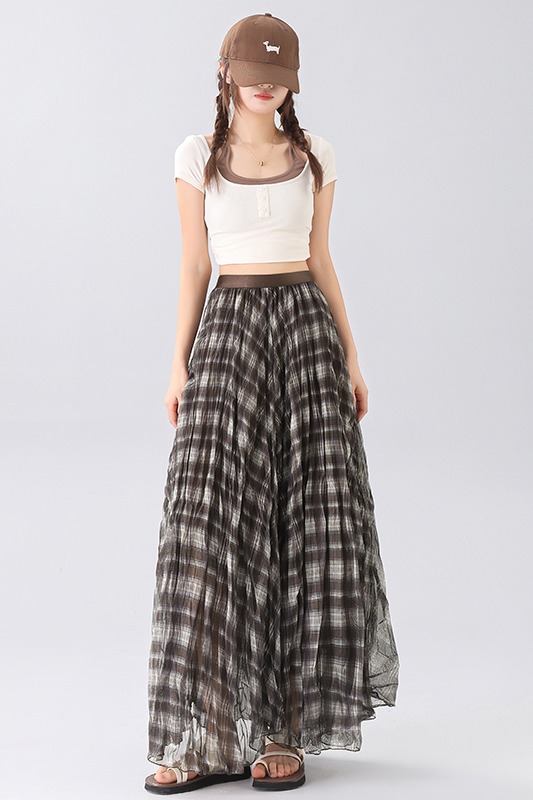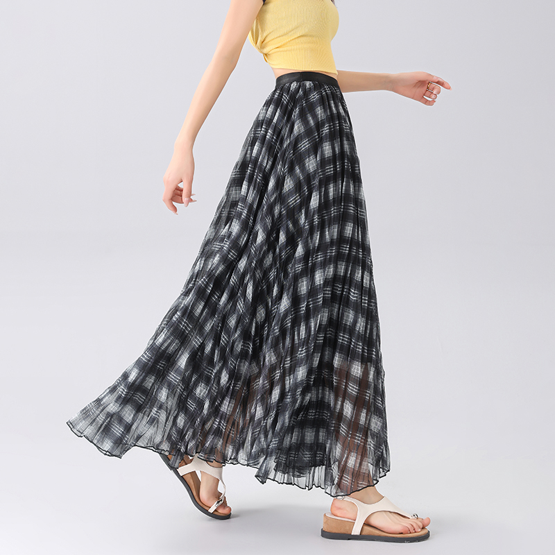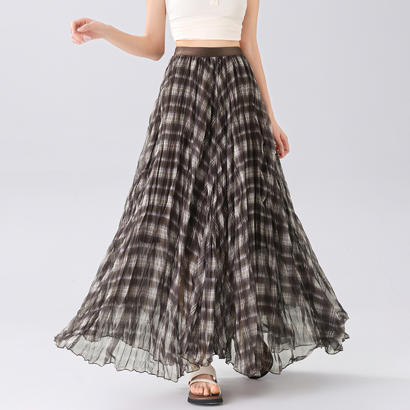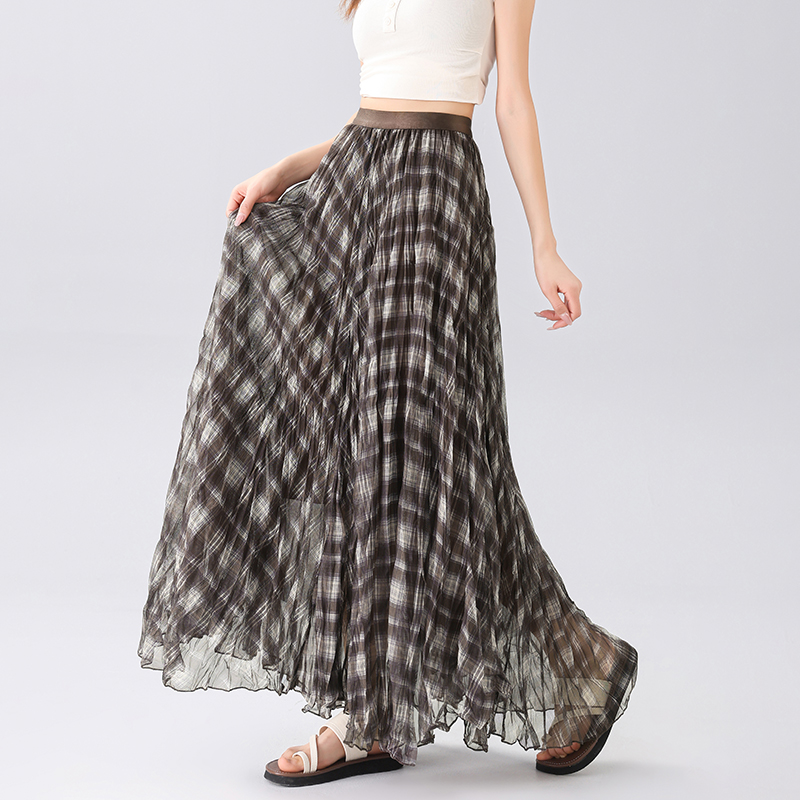 MY16756# 格纹a字半身裙新款复古高腰中长款不规则伞裙女裝貨源服裝批發