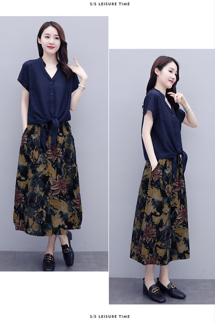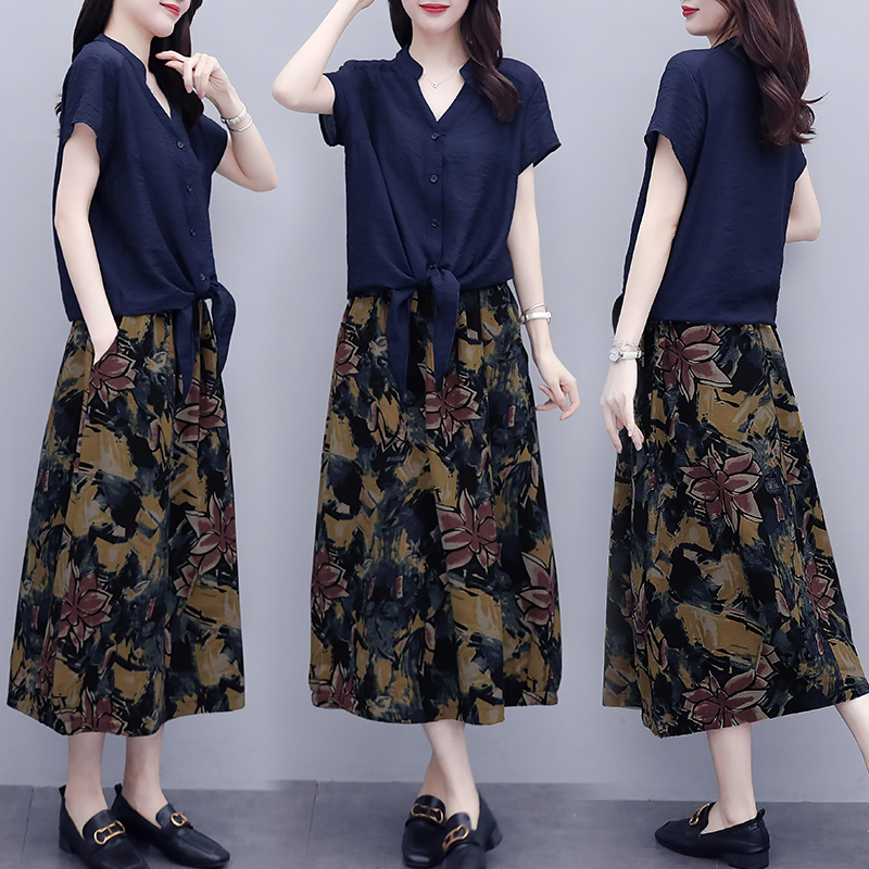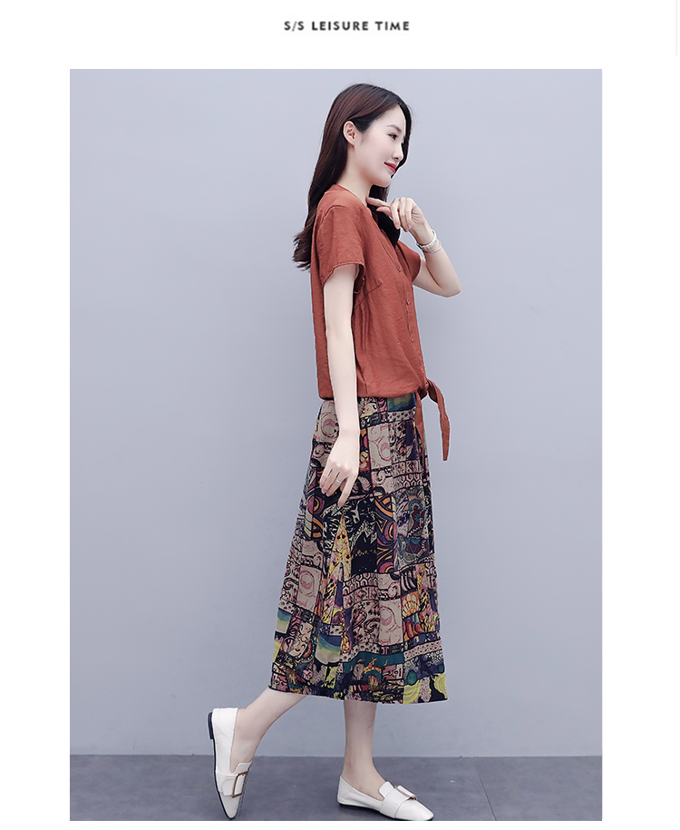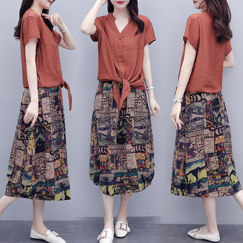MY16788# 棉麻连衣裙女夏装新款夏天气质宽松半身裙套装两件套亚麻长裙女裝貨源服裝批發