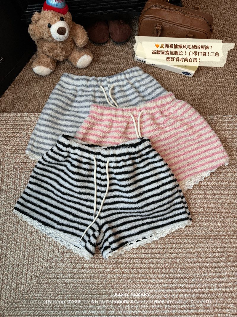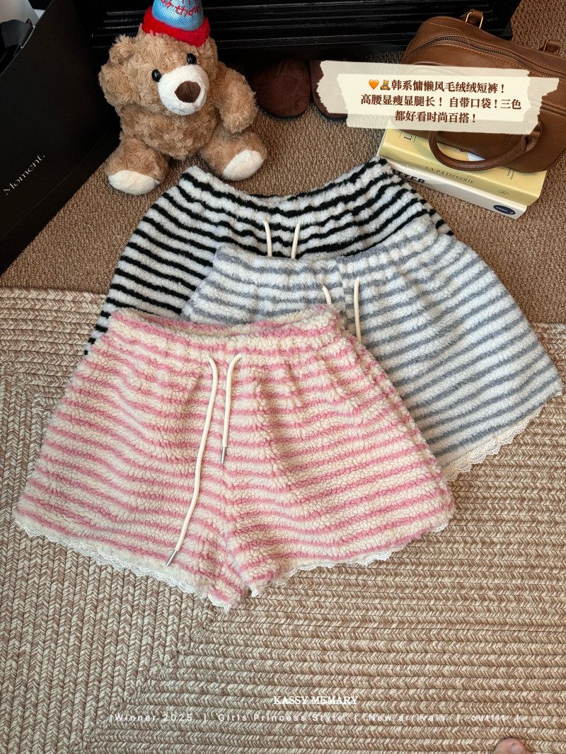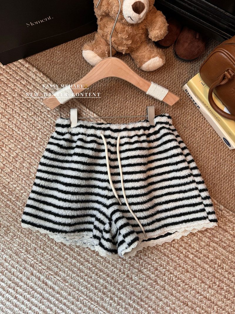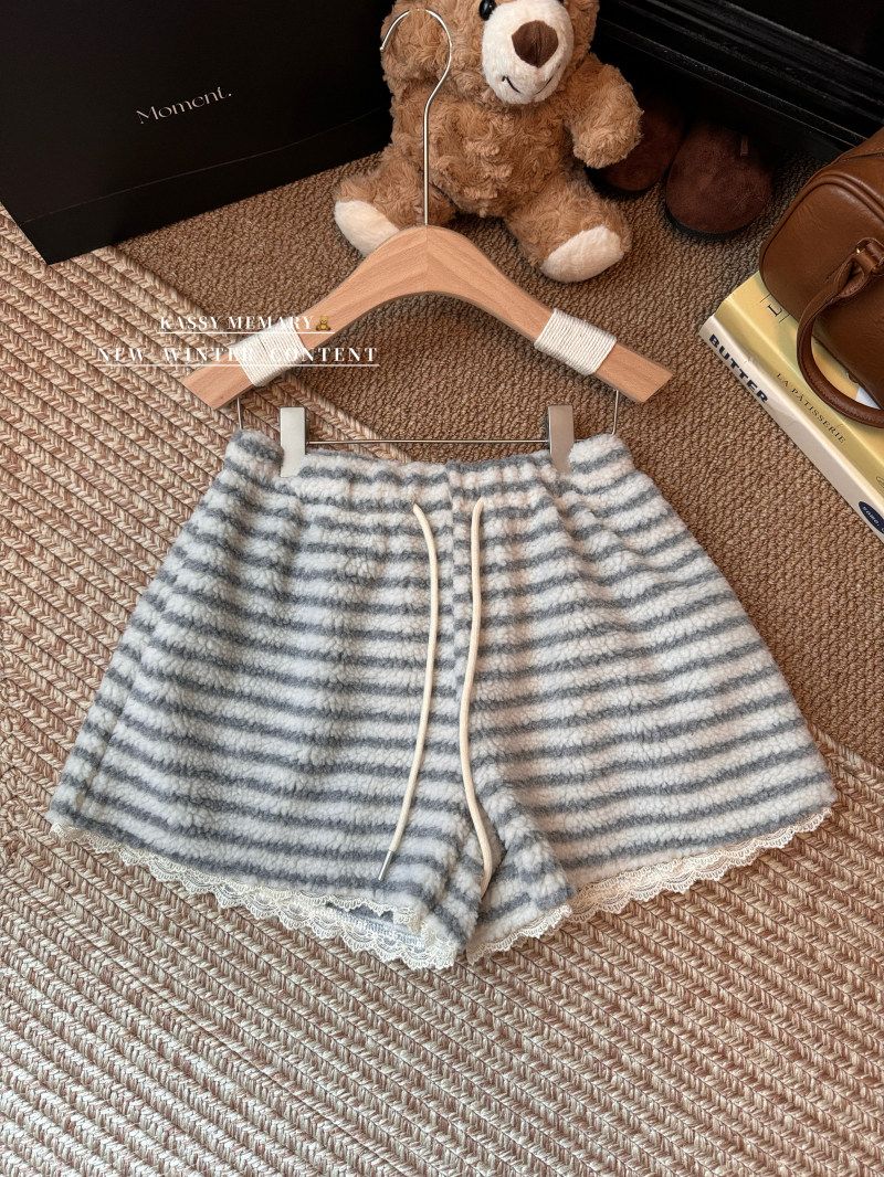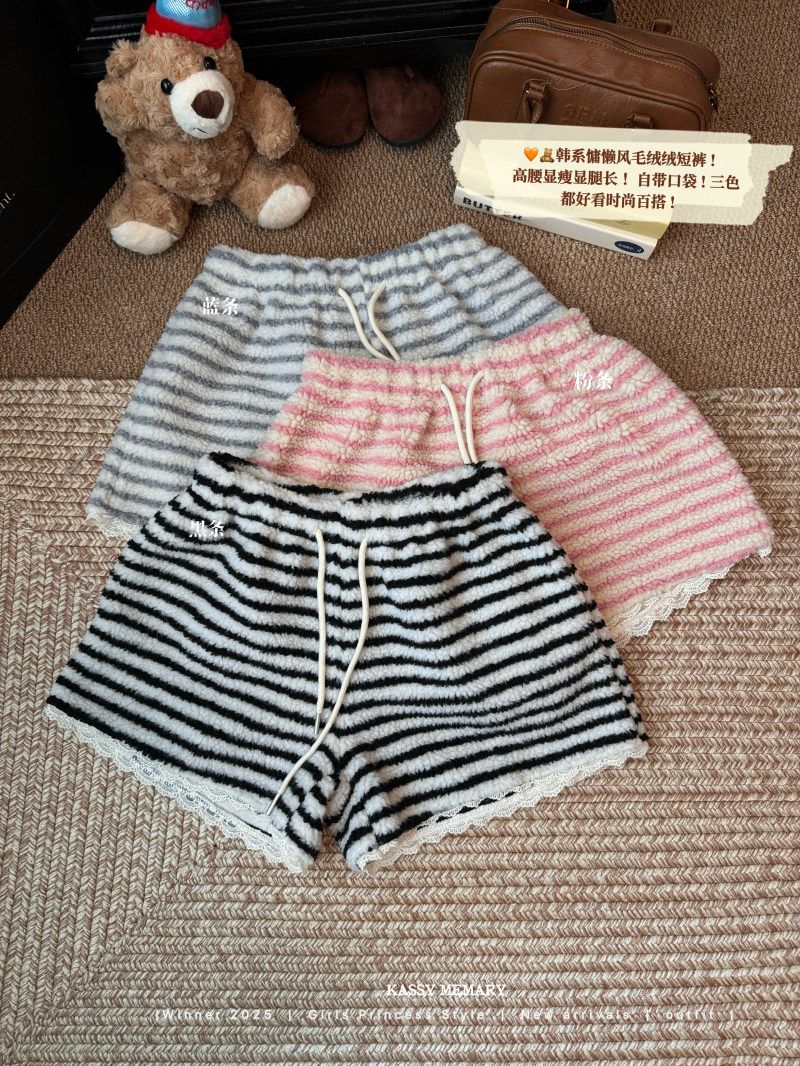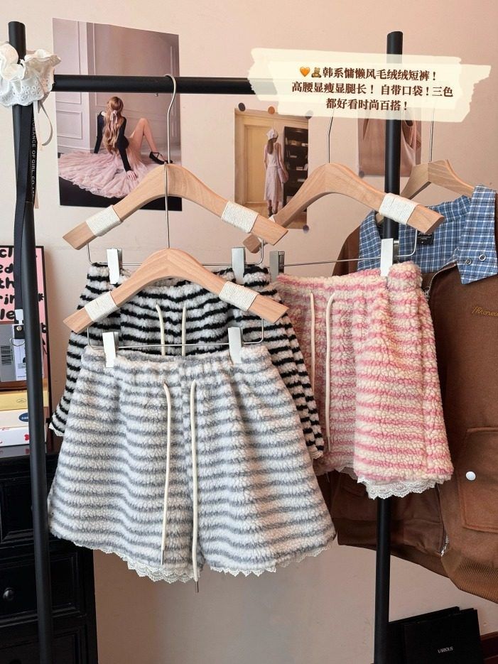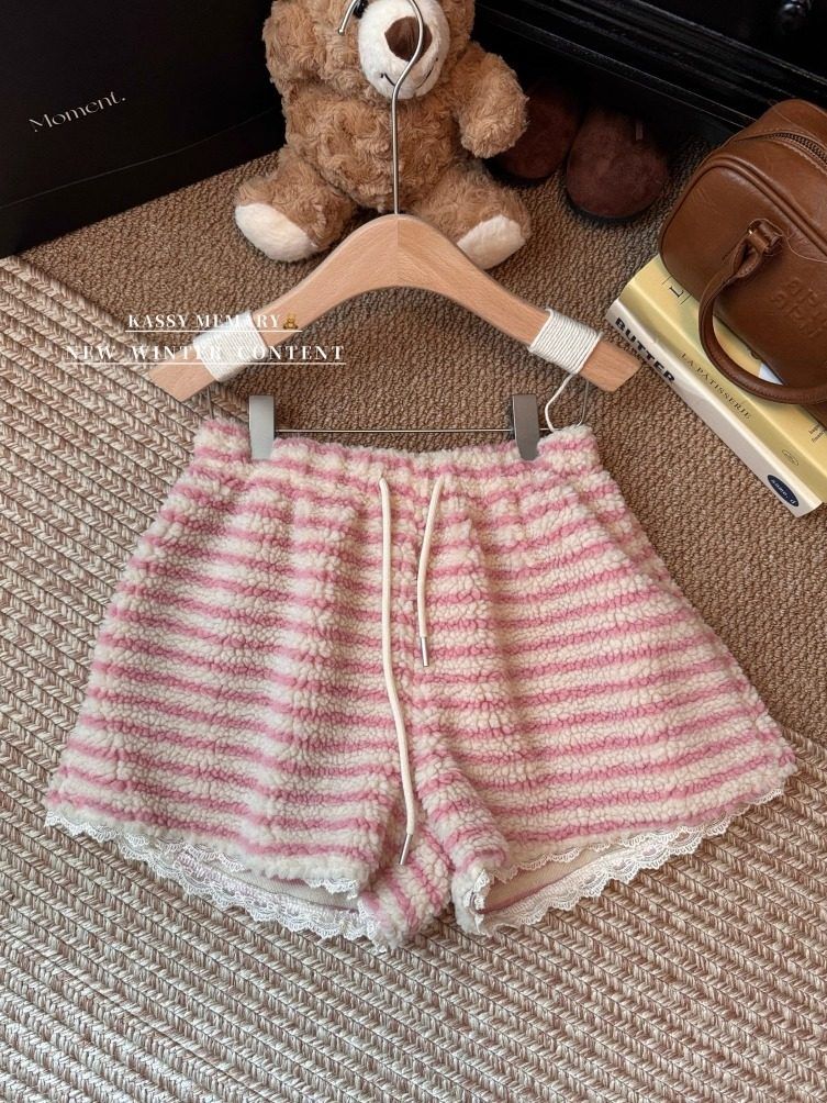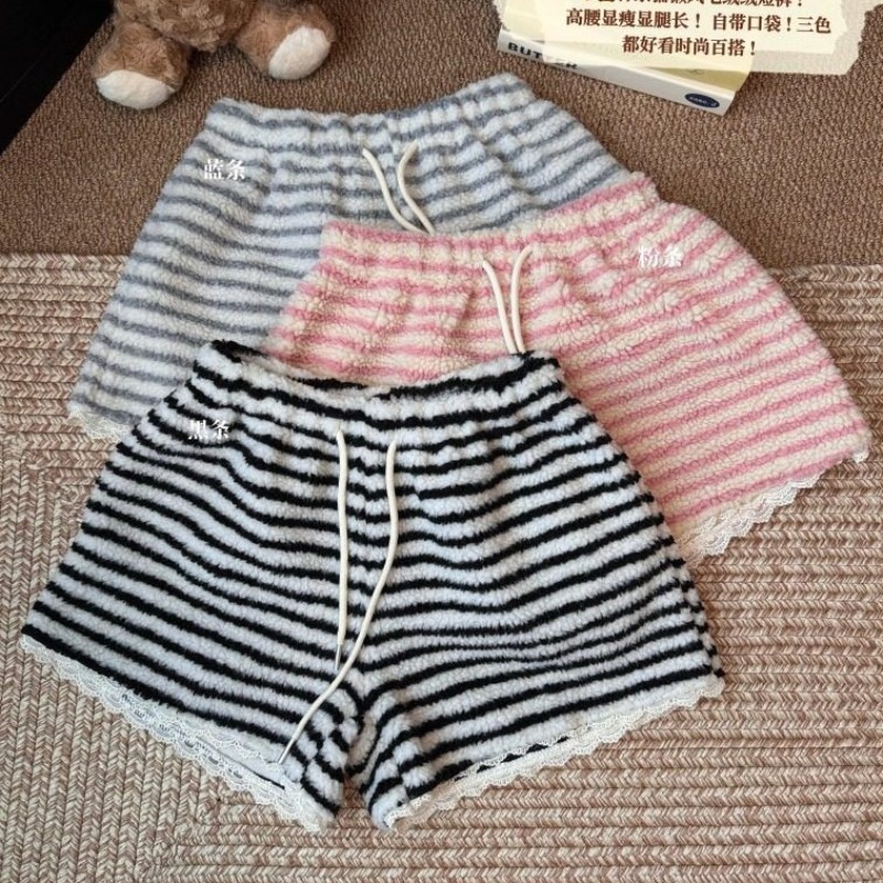 MY16806# 原版大码300斤条纹蕾丝拼接靴裤加厚羊羔绒宽松a字阔腿裤潮女裝貨源服裝批發