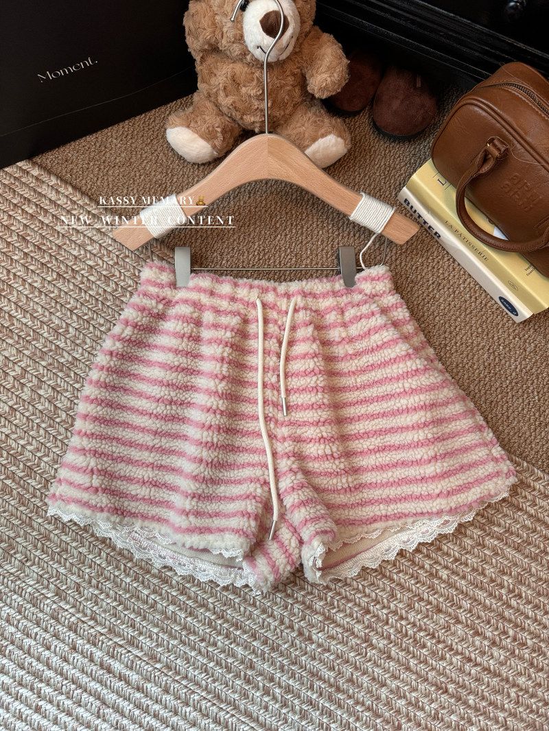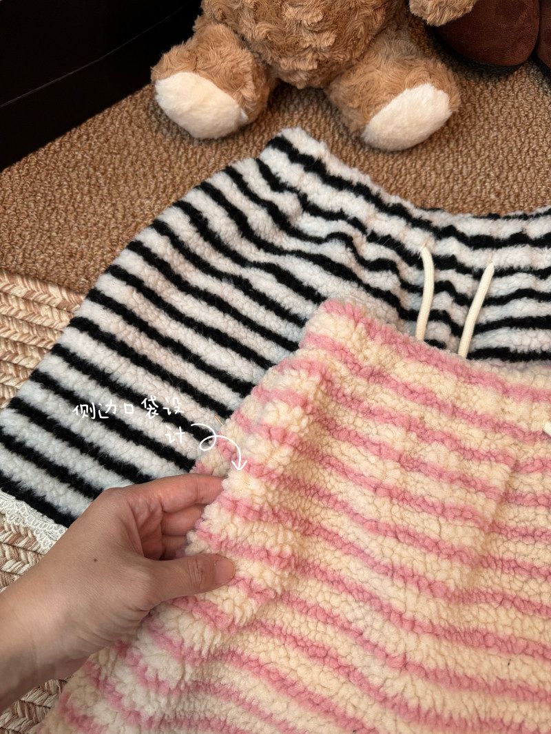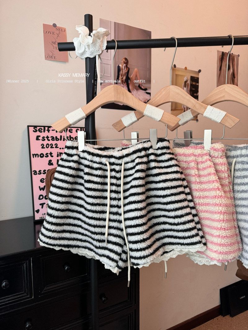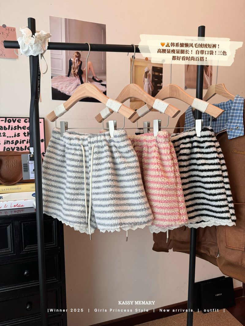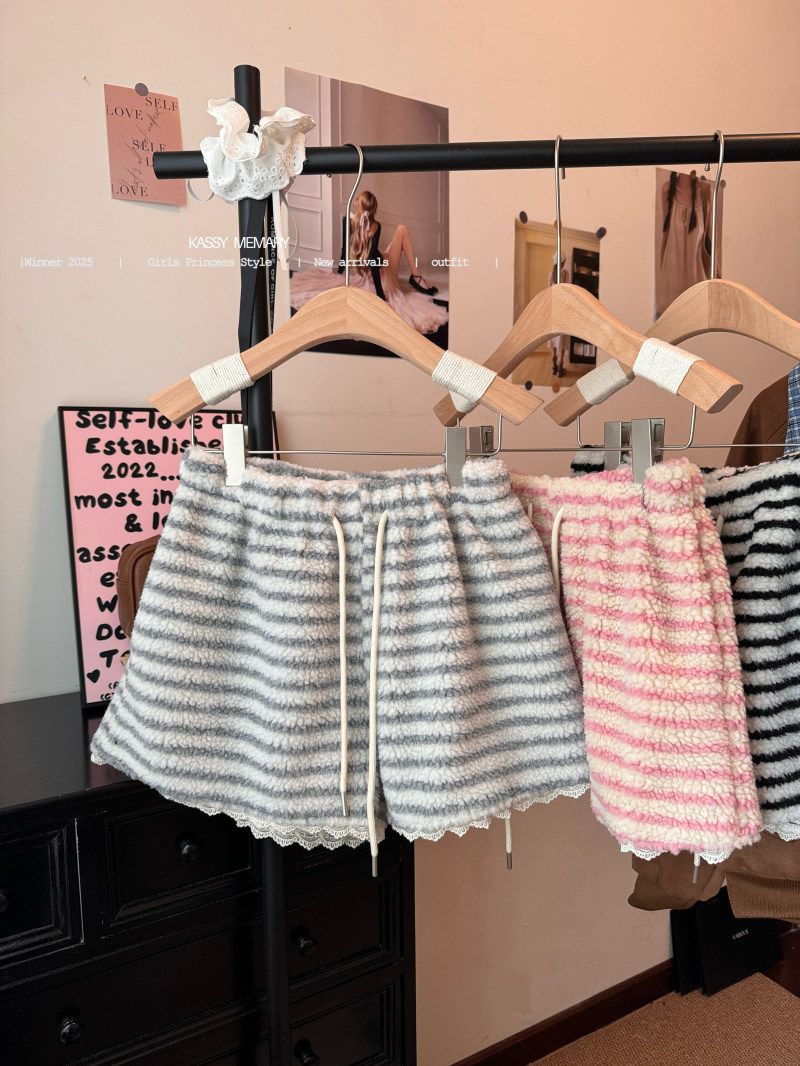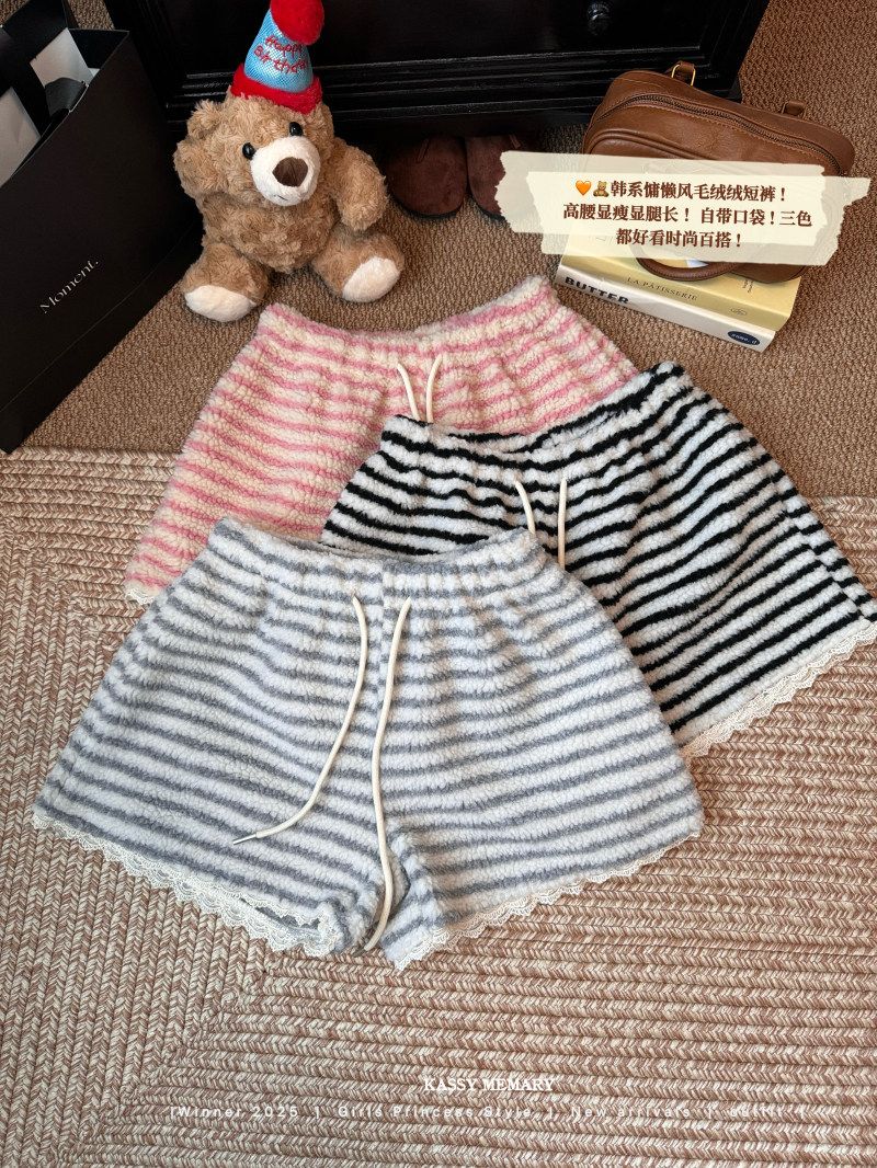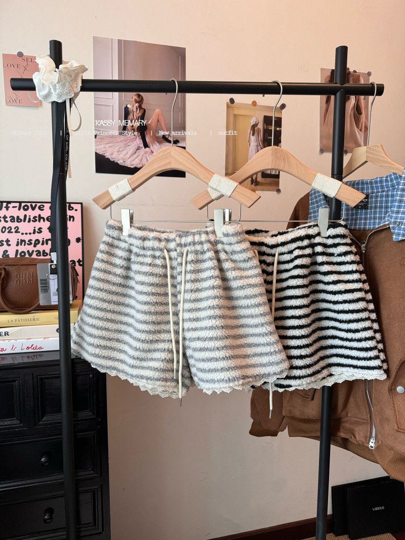 MY16806# 原版大码300斤条纹蕾丝拼接靴裤加厚羊羔绒宽松a字阔腿裤潮女裝貨源服裝批發