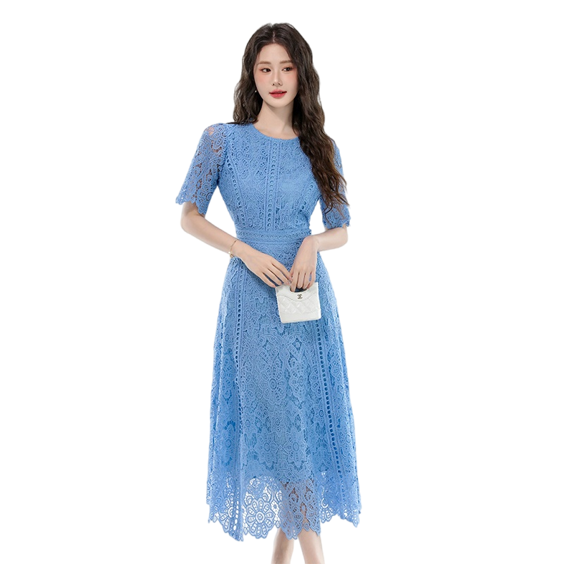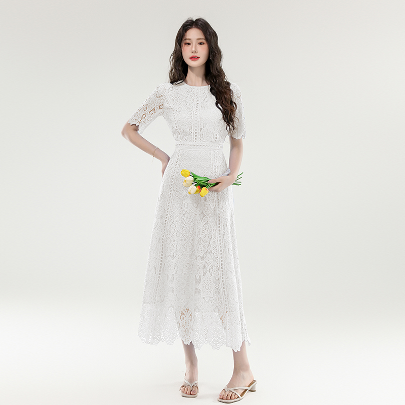 MY16861# 优雅气质小香风蕾丝连衣裙高级感法式长裙女女裝貨源服裝批發