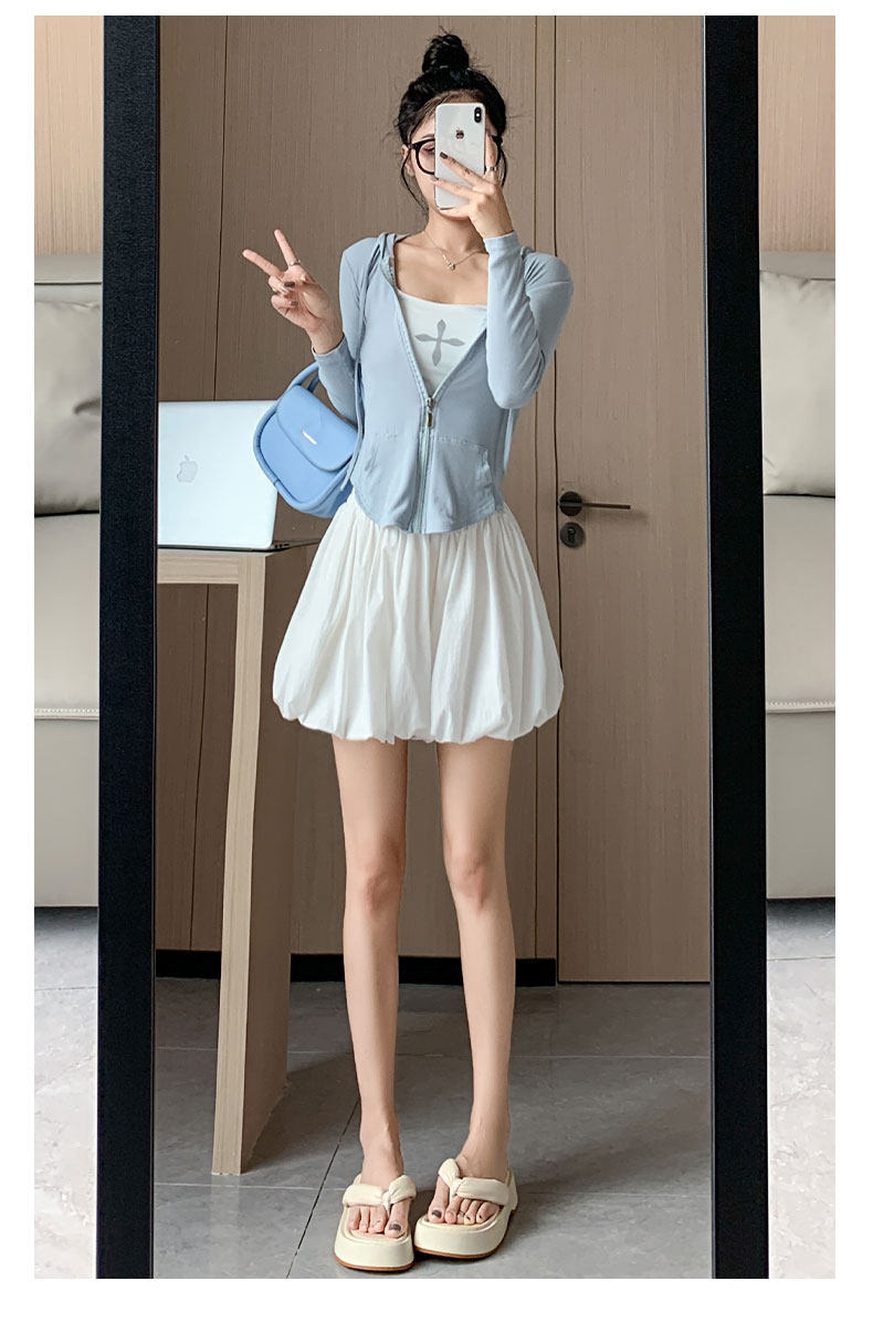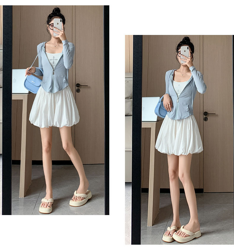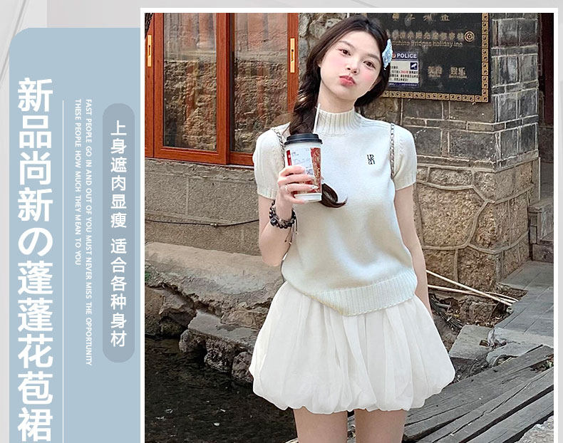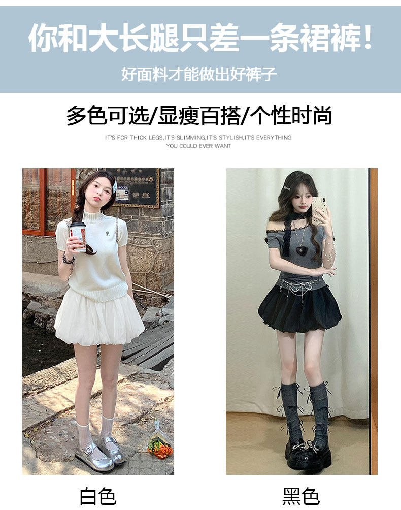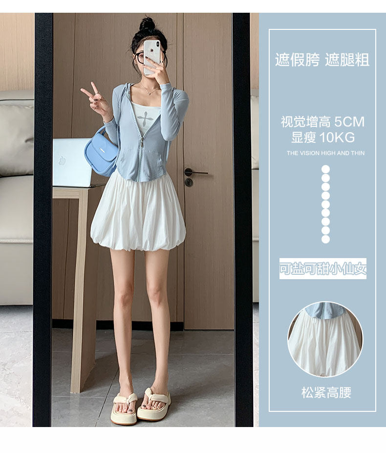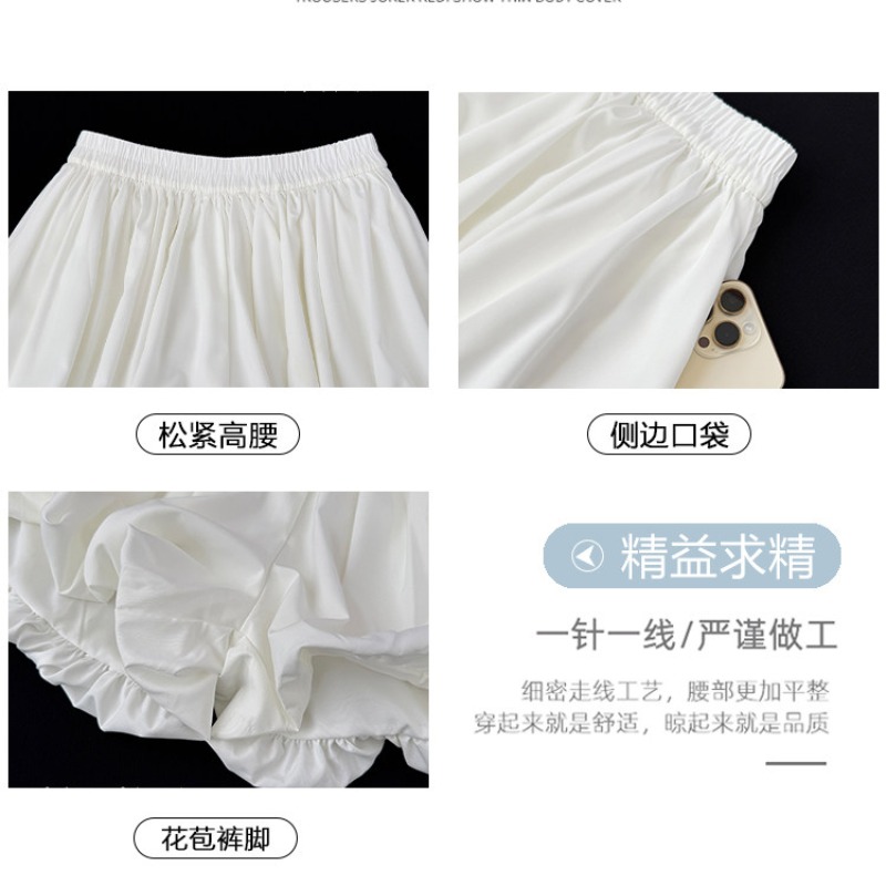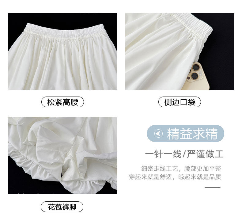 MY16882# 有口袋~白色花苞裤裙女新款高腰a字宽松休闲小个子外穿阔腿短裤女裝貨源服裝批發