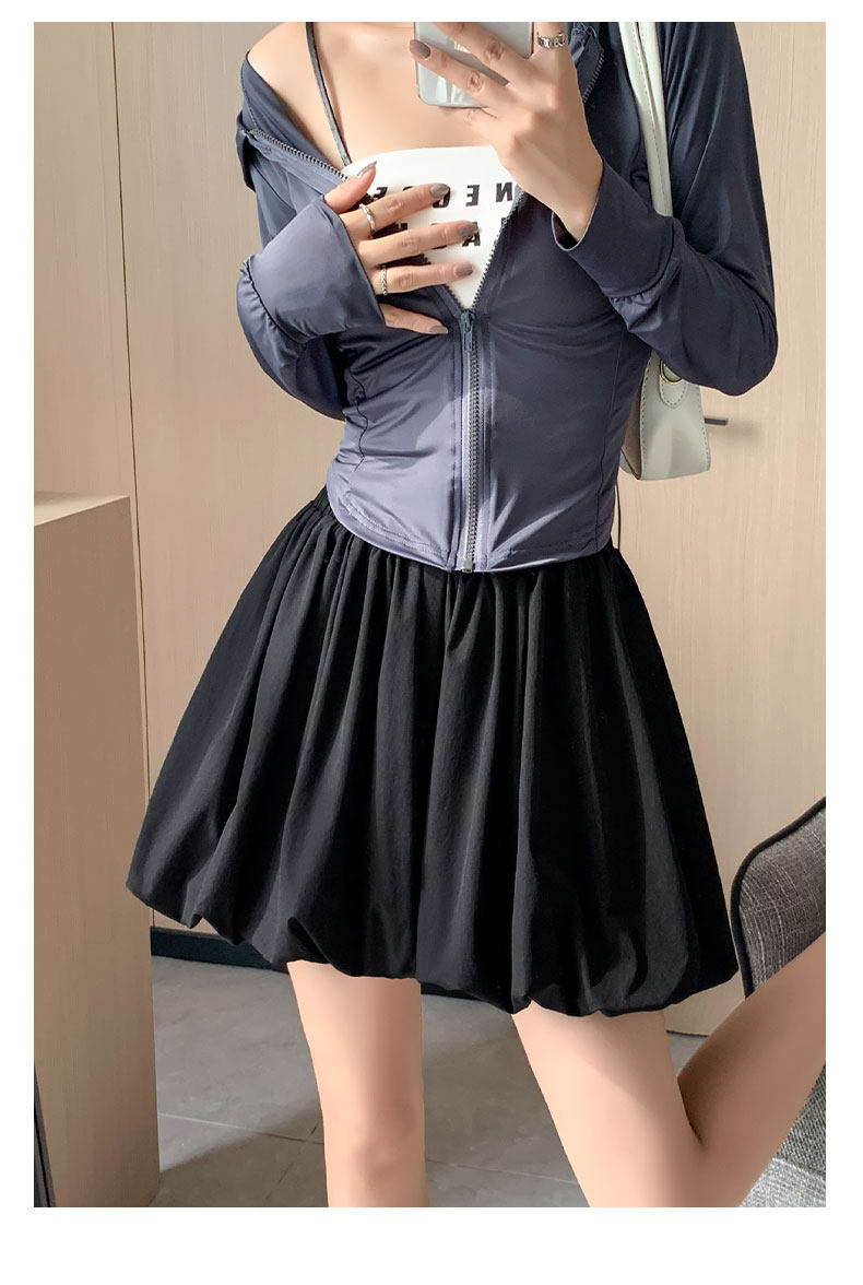 MY16916# 灰色雪纺拼接毛呢半身裙新款高腰显瘦小个子包臀短裙女裝貨源...
